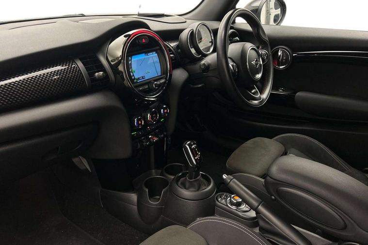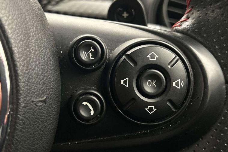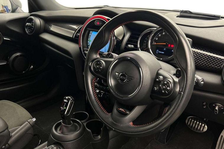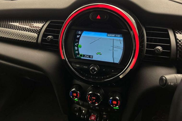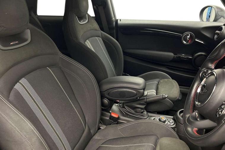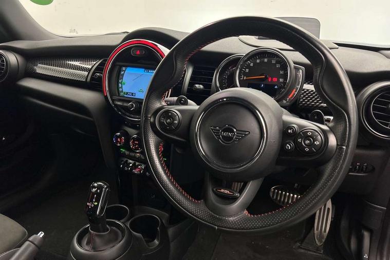 Compatible mobile phone bluetooth with audio streaming, Instrument cluster, Mini E-call, MINI TeleServices, On board computer, Service interval indicator, Performance Control, Steptronic sport transmission with double clutch and steering wheel paddles, 6.5" touchscreen with LED ring, FM tuner and DAB digital radio, Automatic headlight activation switch, Bonnet scoop, Chrome border honeycomb structure radiator grille with S badge, Chrome plated fuel cap, Dynamic brake lights, Electric front+rear windows, Heated rear window, Heated windscreen washer jets, John Cooper Works - aerodynamic kit (front and rear apron, spoiler), front and rear sport bumpers and part-painted side sills with door sill finishers, John Cooper Works rear spoiler, LED headlight with closed ring and daytime driving lights, Metal door sill strips with Cooper S imprint, Model logo Cooper S on right of tailgate, Rain sensor window wipers, Rear fog lights, Rear LED lights with union jack design, Rear window wiper, Side scuttle panel with integrated indicator, Sun/heat protection glass, Two central exhaust tailpipes with chrome finisher, White indicator lenses, 12V Accessory socket in centre console, 4 lashing eyes in luggage compartment, 60/40 split folding rear seat, Anthracite headlining, Chrome interior highlights, Cupholders, Front and rear isofix with front passenger airbag deactivation, Glove compartment, Height and length steering column adjustment, Interior lighting with 12 basic colours selectable via toggle switch in roof, John Cooper Works leather steering wheel with contrasting stitching in Chilli Red with John Cooper Works logo, John Cooper Works Logo in seat, Leather gearshift lever and handbrake gaiters, LED reading lights, vanity mirror lights, front foot well light and spotlight on front seats, Manual air conditioning, Mechanical seat adjustment, driver seat height adjust, forward/back and front seats backrest, Mini logo projection on floor from drivers exterior mirror, Multifunction steering wheel, Storage compartments in doors, Storage pocket on back of front seats, Sunvisors with vanity mirrors, 3 point seatbelts on all four seats, 6 Airbags - front, side, head and seat belt tensioners, Anti-lock braking system (ABS), DSC - Dynamic Stability Control, Front and rear disc brakes, Hill start assist, Two tone horn, Tyre pressure monitoring system, Alarm system with tilt sensor, monitoring doors, bonnet interior and tailgate, Electronic vehicle immobiliser, Start/stop toggle with keyless go, Tool kit,
