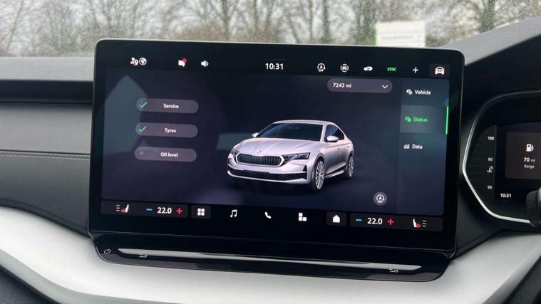 1x USB Typc C port in rear view mirror, 4x USB Type C ports - 2x in front centre console and 2x in rear (45W), Driver fatigue sensor, eCall emergency system, Electro-mechanical power steering, Front and rear parking sensors with manoeuvre assist, Front assist system, Traffic sign recognition, Turn Assist, Virtual Cockpit - 10.25" digital display, Voice control system, Wireless charging (15W) with cooling function, Wireless SmartLink for Apple CarPlay and Android Auto, 13" touchscreen display with navigation, 8 Speakers, DAB Digital radio, Aero front windscreen wipers with intermittent function, Auto dimming rear view mirror, Black window surrounds, Body colour bumpers, Body colour door mirrors and handles, Chrome grille surround, Chrome strip in lower front bumper, Electric front and rear windows, Heated rear windscreen, High level third brake light, Ice scraper in fuel cap, LED daytime running lights, LED Headlights, Manually operated boot, Rain and light sensors, Rear fog light on one side, Rear side wing doors, 12 volt socket in boot, 3 rear headrests, 3 seat bench in 2nd row, 4 foldable roof handles, Dual zone air conditioning, Front head restraints, Heated front seats, Illuminated glovebox, Interior door handles in dark chrome, Jumbo Box storage, Luggage compartment lighting x2 lights, Parcel shelf - folding, Single front passenger seat, Steering wheel in black leather with black stitching, Storage compartments in left and right of boot, Sun visors with mirror for driver, Sunglasses storage, Ticket holder, Umbrella in door panel, Unsplit rear bench seat, split folding backrest with centre armrest with cupholder, 3x3 point rear seat belts, Alarm with interior monitoring, tilt sensor and back up horn, Curtain airbags and front side airbags, Driver and front passenger airbags, Drivers knee airbag, Electronic parking brake, ESC including ABS, EBV, MSR, ASR, EDS, HBA, DSR, Front central airbag, Hill hold assist, ISOFIX on front passenger seat and outer rear seats, Manual rear child locks, Passenger airbag deactivate switch, Three point seat belts in front and rear, Two tone horn, Tyre pressure monitor, Visual and acoustic seat belt reminder, Warning reflectors in front door, Anti-theft wheel bolts, Keyless start/stop, Remote central locking,