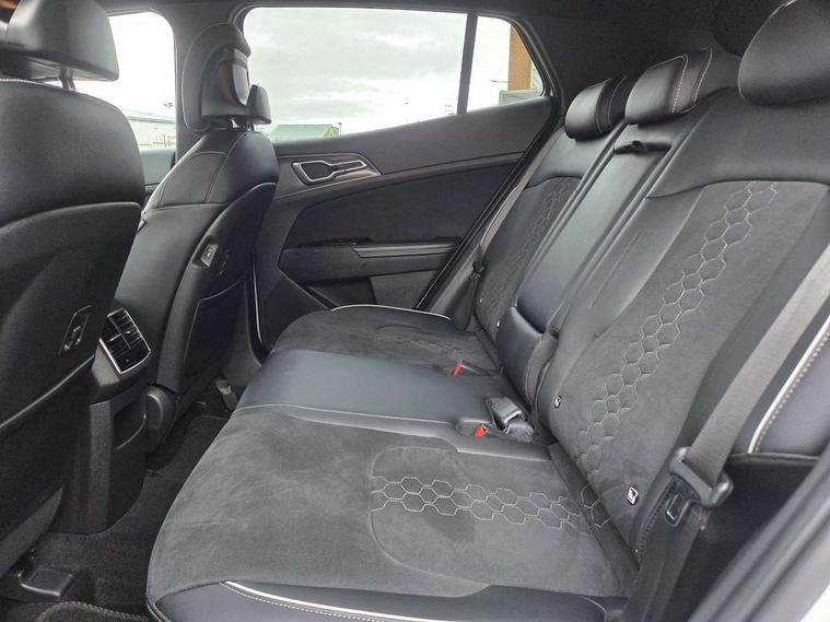 12.3" Touchscreen navigation system, 2 rear USB-C ports, 4.2" driver display screen, Apple car play/Android Auto, Drive mode selector, Driver attention warning, E-call, Emergency stop signalling system, Forward collision avoidance assist (FCA) - city/pedestrian/cyclist/junction covering, Front and rear parking sensors, Highway Driving Assist (HDA), Intelligent speed limit assist, Kia Connect (UVO), Lane Following Assist (LFA), Lane keep assist, Low washer fluid warning, Motor driven power steering, Rear view monitor, Reversing camera system integrated into centre fascia screen, Smart cruise control with stop and go functionality, Speed limiter, Tailgate, Trip computer, Windscreen washer level indicator, Terrain mode select (Mud, Snow, Sand), 1x USB-C port in front, 6 speaker audio system, Bluetooth audio streaming, DAB Radio with MP3, Steering wheel mounted audio controls, USB C type charging ports on centre console, USB port for connection of a media device, All round electric windows with drivers and front passenger auto up/down function, Auto dimming rear view mirror, Automatic headlight control system, Automatic window defogger, Black and body coloured bumpers, Body colour exterior door handles, Body colour radiator upper garnish and door garnish, Electrically adjustable/heated/folding door mirrors with LED indicators, Front and rear chrome skid plates, Gloss black door mirrors, Gloss black radiator grille, Gloss black side sill and wheel arch body mouldings, Glossy black roof rack, GT-Line exterior styling, Heated rear window, High beam assist, Interior electrochromic mirror, LED daytime running lights, LED front fog lamps, LED headlamps (low and high beam - MFR type), LED High mounted stop light, LED rear combination lamp, Rain sensing wipers with aero blades, Rear fog lamp, Rear privacy glass, Rear side wing doors, Rear spoiler, Rear wiper, Satin finished beltline, Silver window surround, Tinted rear glass, Trailer stability assist, 12V power socket in front centre fascia and luggage compartment, 2nd row personal lamps, 3 seat bench in 2nd row, 3 x passenger assist grips, 40/20/40 split folding rear seat, All-round height adjustable headrests, Alloy pedals, Automatic air conditioning, Black headlining, Centre console storage box, Cupholders in rear armrest, Door courtesy lamps, Drink holder at centre armrest, Driver and front passenger side sunvisors with illuminated vanity mirrors, Driver's seat manual height adjust, Drivers seat power lumbar support, Front and rear door storage, Front cabin, rear & luggage compartment lights, Front passenger's seat manual height adjustment, Front seat and rear pockets, Gear shift indicator, Glovebox illumination, GT-Line Interior Styling, Heated front seats, Heated steering wheel, ISOFIX Child seat top tethers and anchor fixings outer rear seats, Leather steering wheel, Luggage area load cover, Luggage area parcel shelf, Luggage board, Luggage compartment under floor storage, Luggage net with hooks, Manual adjust steering wheel, Metal paint interior door handles, Overhead console lamp, Paddle shift controls, Rear air conditioning, Rear cabin light, Rear coat hooks, Single front passenger seat, Suede leather upholstery, Ventilation ducts to rear compartment, Active front headrests, All round 3-point seatbelts, Anti-lock braking system (ABS), Dual front side airbags, Dual horn, Dynamic brake control, Electronic parking brake with auto hold function, Electronic stability control with downhill brake control, Front passenger airbag cut-off switch, Front seatbelt pretensioners + load limiters, Height adjustable front seatbelts, Hill start assist control (HAC), Impact sensing auto door unlocking, Multi collision brake assist, Rear airbags, Rear door child safety locks, Rear seat alert system, Seatbelt reminder warning, Traction control, Twin curtain airbags, Twin front airbags, Tyre pressure monitoring system, Vehicle stability management, Customisable automatic door locking, Customisable automatic door unlocking, Door deadlocks, Engine Start/Stop Button with Smart Entry System, Locking wheel nuts, Smart key with motion sensor, Speed sensitive auto door locking, Thatcham category 2 security alarm and immobiliser, Visible vehicle identification number, Aluminium pattern finish centre fascia and door garnish, 19" GT-Line alloy wheels, Tyre mobility kit,