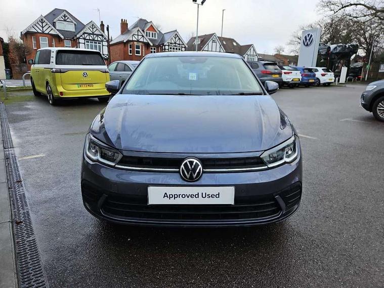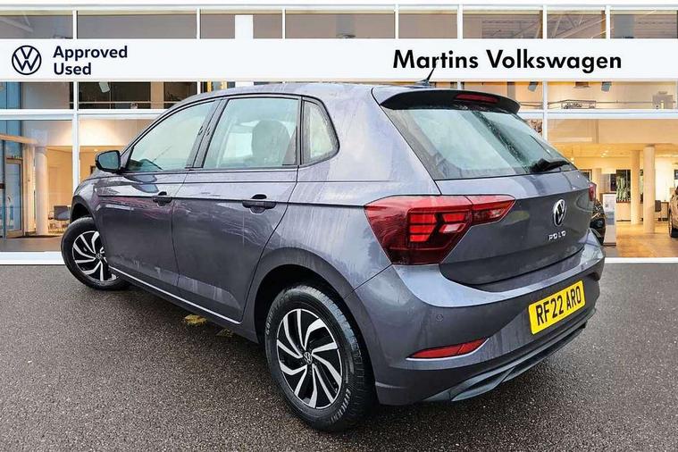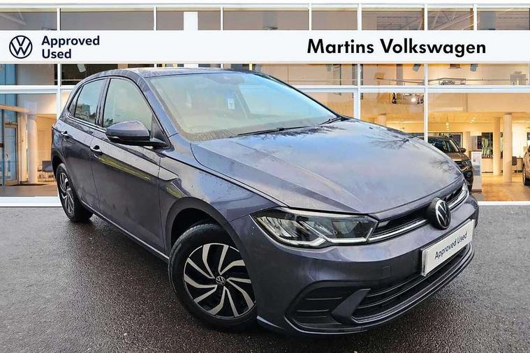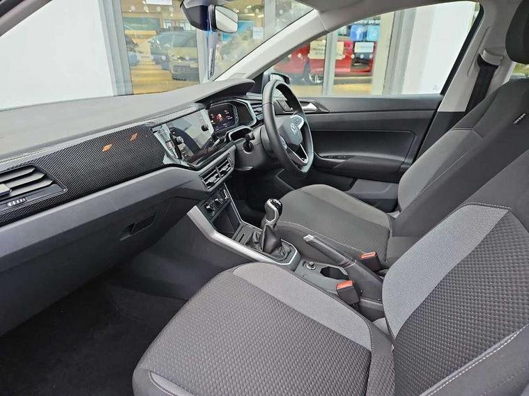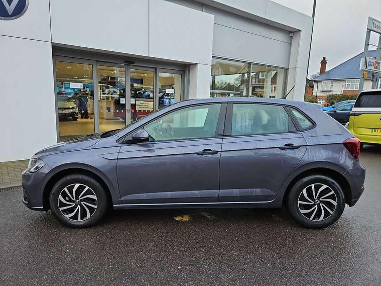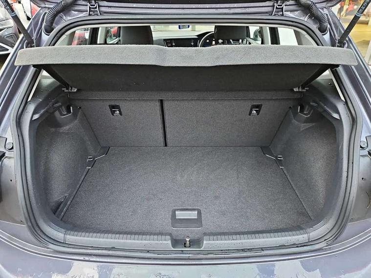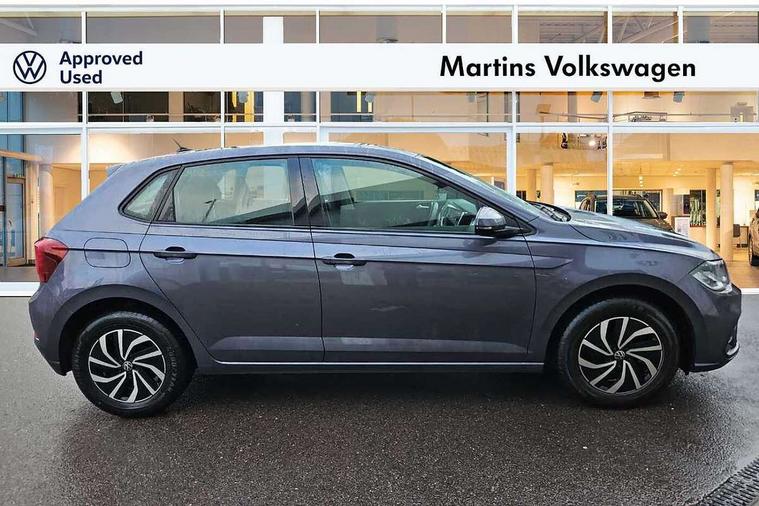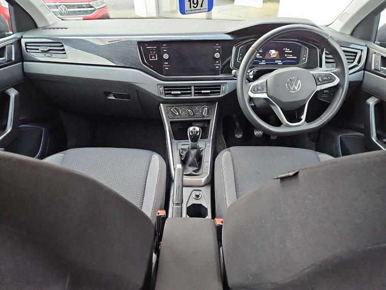 Adaptive cruise control without follow-to-stop and speed limiter, Bluetooth mobile phone interface, Driver alert system, Emergency call service, Front assist system, Power assisted speed sensitive steering, Preparation for We connect and We connect plus, Speedo and rev counter, electronic odometer, trip, service interval display and fuel gauge, Standard rear axle, Travel Assist - Lane keeping system and traffic jam assist, Travel assist including emergency assist, Trip computer, Warning signal and warning light for front and rear seatbelts not fastened, Washer fluid level indicator, Wireless app connect, Front wheel drive, Rear shock absorpion, Start-stop system with battery regeneration (recuperation - energy recovery during braking), DAB Digital radio, Diversity antenna for FM reception, Front and rear 6 speakers, Automatic dimming interior rear view mirror, Body colour bumpers, Body colour door handles, Body colour door mirrors, Electric front windows, Heat insulating darkened glass in side and rear windows, Heat insulating glass windscreen, Power folding adjustable/heated exterior mirrors and front passenger exterior mirror lowering function, Rain sensor, Rear electric windows, Rear fog light, Rear side wing doors, Rear windscreen washer and wiper with interval delay, Third brake light, 12V power socket in centre console, 2 front and 2 rear reading lights, 2 USB-C ports in the front, 2 USB-C charging sockets on the center console in the rear, 3 rear head restraints, 60/40 split folding rear seat and rear seat bench not split, Ceramique headliner, Chrome plated radiator grille inserts, air vent surrounds and light switch surrounds, Door and side trim panel, Driver and front passenger seat height adjustment, Driver/passenger sunvisors with illuminated vanity mirrors, Front centre armrest, Front seat backrest storage pockets, Front standard seats, Handbrake lever handle in leather, Hartley/Thomas cloth upholstery, Isofix child seat preparation easy-fit (for two outer rear seats, and front passenger seat) compatible with I-size, Leather trimmed gear knob, Luggage compartment cover, Luggage compartment floor, Luggage compartment lighting, Multifunction steering wheel, Single front passenger seat, Standard pedal cluster, Light and vision pack - Polo, 3 point height adj front seatbelts + pretensioners, 3x3 point rear seatbelts, ABS, Driver and front passenger airbag with front passenger airbag deactivation, Drivers and front passengers safety optimised head restraints, ESC (Electronic stability control) + EDL (Electronic Differntial lock) and ASR (Traction control), Extended and predictive pedestrian/ cyclist protection, Front curtain and side airbags with center airbag, Front disc brakes, Hill hold control, Manual child lock in rear doors, Rear drum brakes, Single tone horn, Tyre pressure loss indicator, Alarm with interior protection, Anti-theft alarm system with interior monitoring, backup horn, and towing protection, Anti-theft wheel bolts, Electronic engine immobiliser, Lava stone black gloss/matt decorative inserts in dash and front door panels, Low rolling resistance tyres,