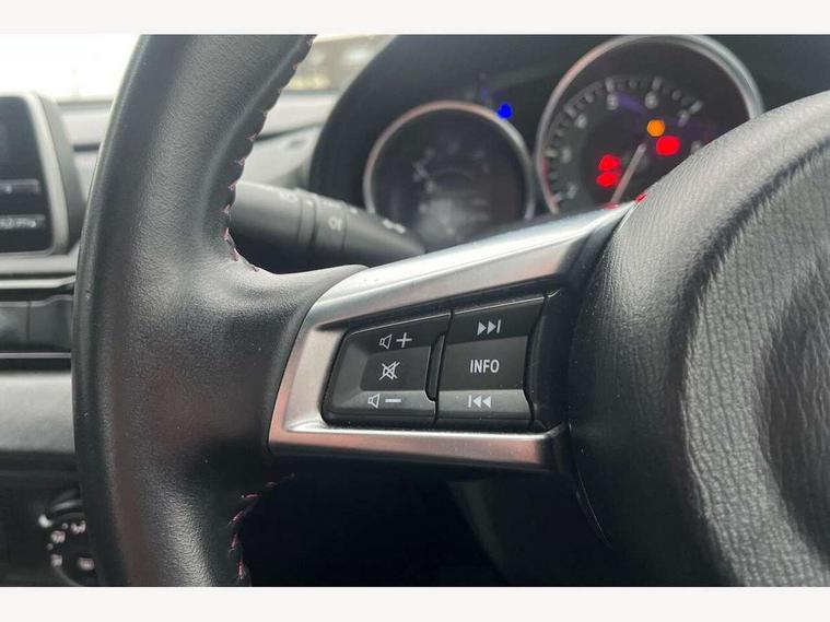 Engine start/stop button, PAS, Remote boot release, Trip computer, Water temperature gauge, 4 speakers, Auxiliary input socket, MP3 compatible radio/single CD player, Steering wheel audio controls, USB/iPod connection, Automatic headlamp levelling, Body colour bumpers, Body coloured door mirrors, Coming/leaving home lighting function, Dual exhaust pipes, Electric front windows/one touch facility, Electrically heated door mirrors, Front intermittent wipers, Premium cloth soft top with integrated heated glass window and soft top cover, 12V socket, Air conditioning, Centre console storage box, Cloth upholstery, Cupholders, Front centre armrest, Front head restraints, Height adjustable front seats, ISOFIX front passenger seat child seat compliance, Leather gear knob, Leather handbrake lever, Leather steering wheel, Lockable rear storage box, Sports seats, Tilt/slide reclining front seats, Windblocker, 3 point ELR front seatbelts with pretensioners, ABS+Electronic Brake force Distribution, DSTC-Dynamic Stability and Traction Control, Dual front airbags, Fasten seatbelt reminder, Manual passenger airbag deactivation function, Side airbags, Tyre pressure monitor, Alarm with interior movement sensor, Immobiliser, Remote central door locking, Superlocking, 16" Silver alloy wheels, Tyre puncture repair kit,