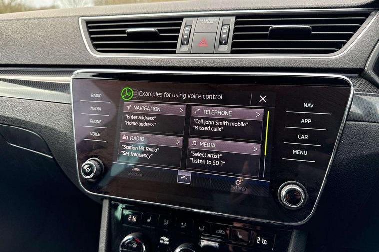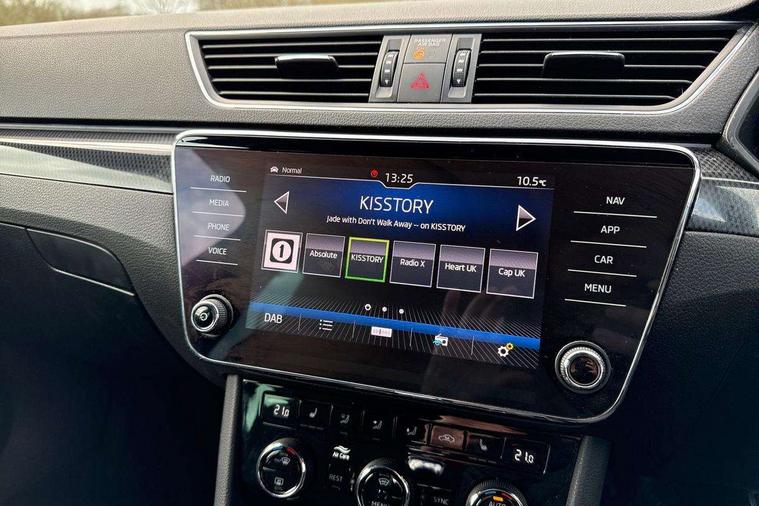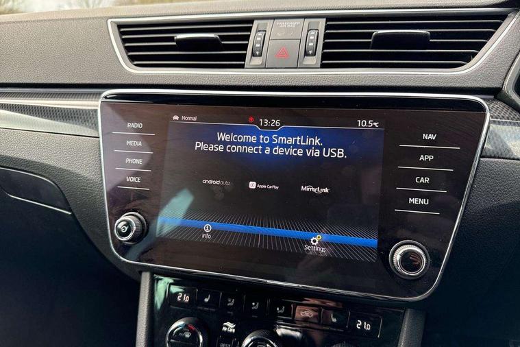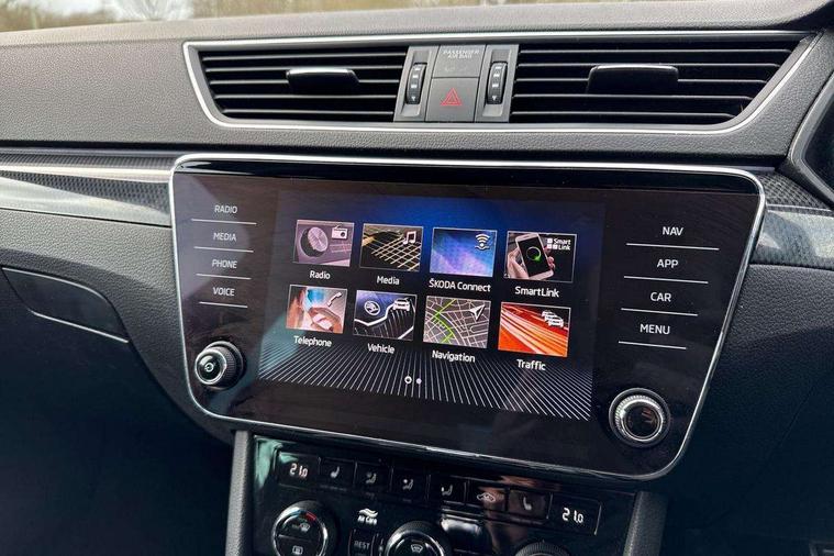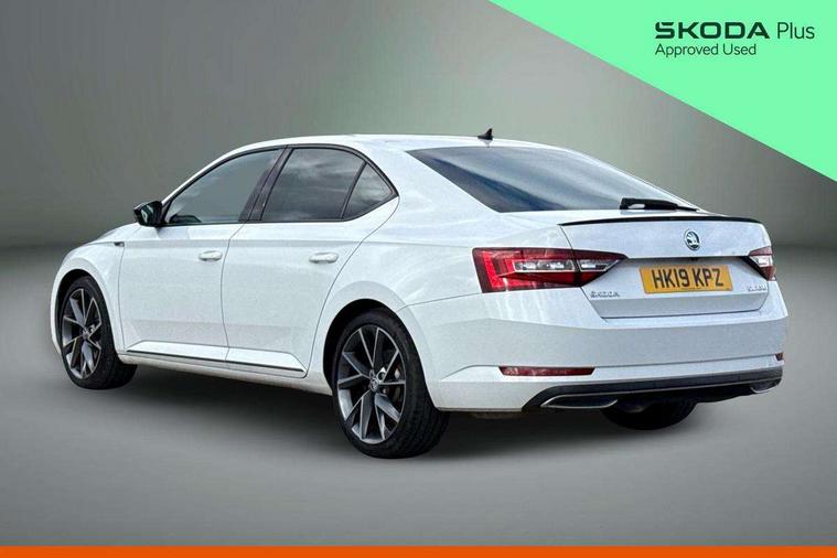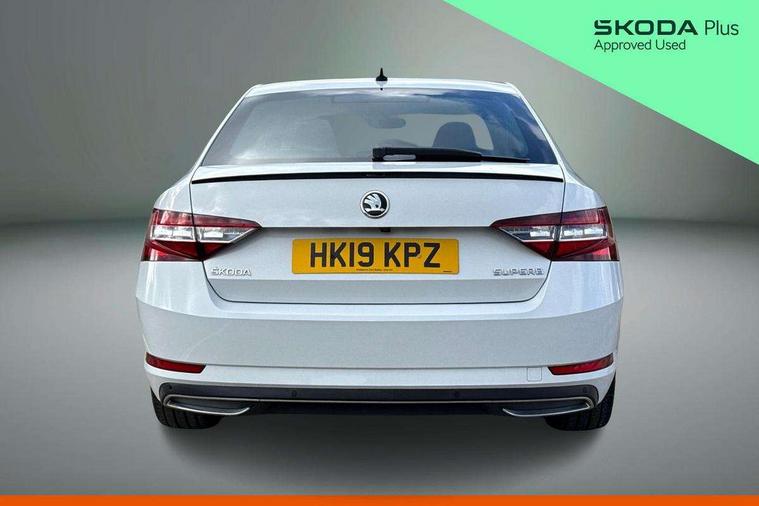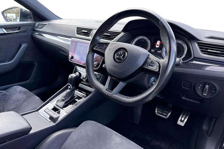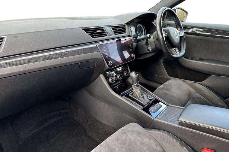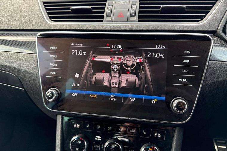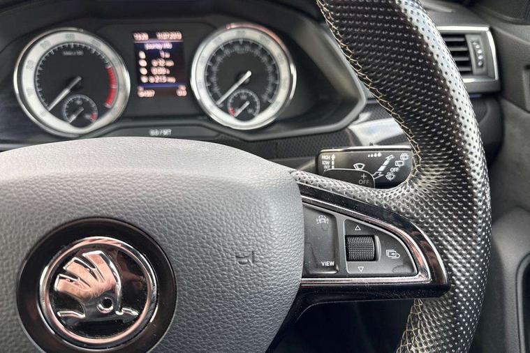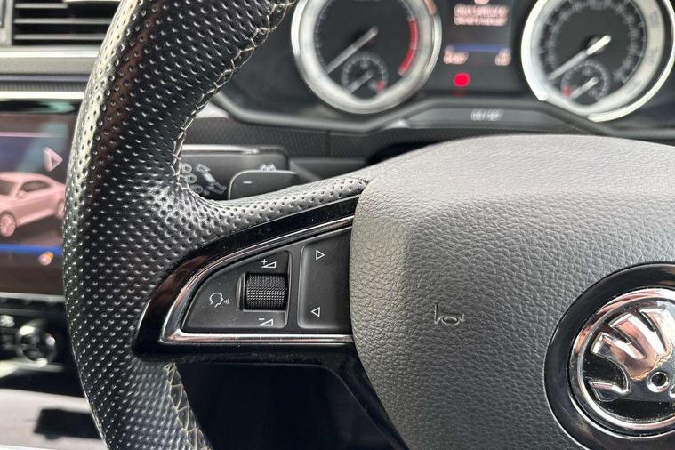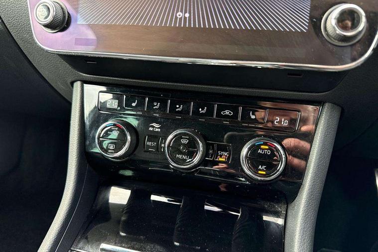 Adaptive cruise control, Bluetooth system, CareConnect and Emergency Call, Drive mode selection including HMI sport, Driver fatigue sensor, Electromechanical power steering, External temperature gauge, Front assist including automatic braking function, Multifunction colour trip computer, Remote fuel cap release, Service interval indicator, Speed warning indicator, Stop/start engine system and energy recovery, Voice control system, XDS+, In-car voice enhancement, Aero wiper + intermittent function, Auto dimming rear view mirror, Bi-Xenon headlights with AFS + integrated headlight washers + LED daytime running lights, Black gloss door mirror housings, Body colour bumpers, Body colour door handles, Cornering front fog lights, Electrically adjustable/heated/folding door mirrors with puddle lights/Integrated indicators and memory function, Front and rear electric windows, Fuel filler cap, Gloss black exterior door mirrors with sports styling including front grill, side strip and window surrounds, Gloss black spoiler, LED brake lights, Privacy glass, Rain sensor, Rear exhaust diffuser styling elements, Sport Line badging, 12v power point in centre console, 12V power point in luggage area, 3 rear height adjustable headrests, Alcantara/leather upholstery sports seats, Auxiliary heater, Black door trim, Black roof headlining, Electrically adjustable driver's seat with memory and lumbar support, Front armrest with storage box, Front passenger seat electric height adjust, Height adjustable front and rear head restraints, Height/reach adjust steering wheel, Illuminated air conditioned glovebox, Illuminated luggage compartment, Interior lights with control switches, Isofix child seat fittings on outer rear seats, Leather gearknob and handbrake lever, Overhead glasses storage compartment, Rear centre armrest with cupholders, Removable LED light in boot, Removable rear parcel shelf, Split folding rear seats, Textile floor mat set, Ticket holder, Umbrella compartments in front doors with umbrellas, LED interior light pack - Superb, LED package plus - Superb, LED rear pack - superb, 3 point height adj front seatbelts + pretensioners, 3 rear 3 point seatbelts + pretensioners, 7 airbags - Front, front side, curtain, driver's knee airbag with front passenger deactivation switch, Door open warning, Driver and passenger seatbelts with warning light, Electronic parking brake, ESC including ABS, EBV, MSR, ASR, EDS, HBA, DSR, RBS, CBC, multi-collision brake (MKB) and Auto hold, Hill start assist, Rear door child safety locks, Tyre pressure monitor, Alarm with interior monitoring tilt sensor and back up horn, Electronic engine immobiliser, Keyless entry and start/stop, Remote central locking with SAFE system, Carbon interior trim, 19" Vega alloy wheels with anti theft wheel bolts,