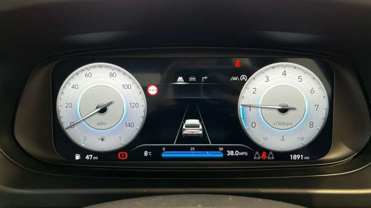 10.25" touchscreen + navigation, 2nd Gen eCall, 8" Touchscreen DAB Radio with android auto and apple carplay, Cruise control + speed limiter, Forward collision assist with car, pedestrian and cycle detection, Intelligent speed assist, Intelligent speed limit warning, Lane follow assist, Lane keep assist, PAS, Rear parking sensor, Rear view camera with dynamic guidelines, USB C port front, Automatic headlights with dusk sensor, Electric adjustable heated door mirrors, Front grille mesh pattern design, High beam assist, LED 3rd brake light, LED daytime running lights, LED Headlights, LED taillights, Rain sensor, Rear side wing doors, Rear wiper, Repositioned flat metal hyundai emblem, Trailer wiring, 3 seat bench in 2nd row, Adjustable head restraints, Air conditioning, Cloth upholstery, Floor mats, Leather steering wheel, Single front passenger seat, 3x3 point rear seatbelts, ABS with front and rear diagonally split, Autonomous emergency braking, Child locks on rear doors, Front ventilated disc brakes, Rear solid disc brakes, Tyre pressure monitoring system, 16" alloy wheels, Tyre repair kit,