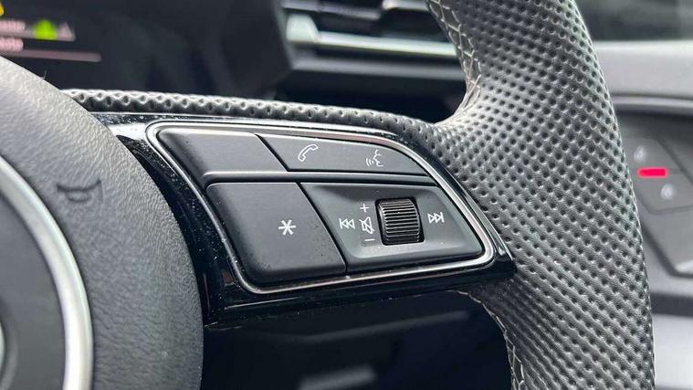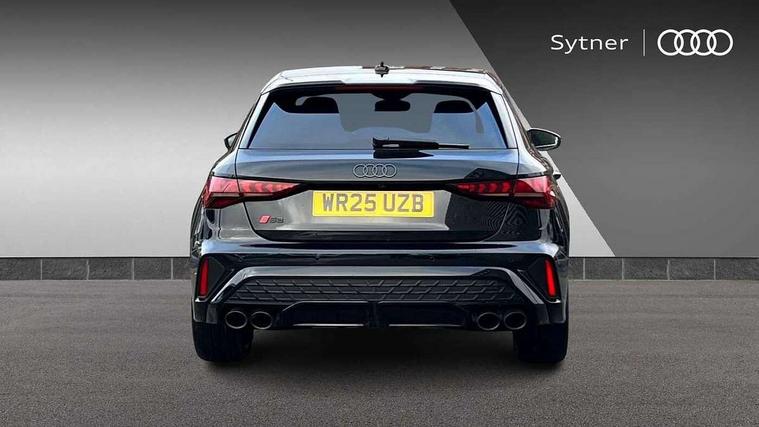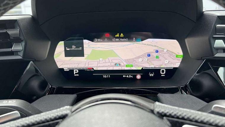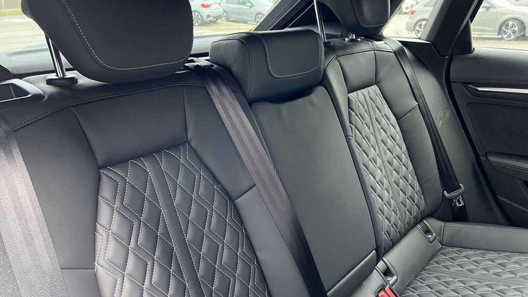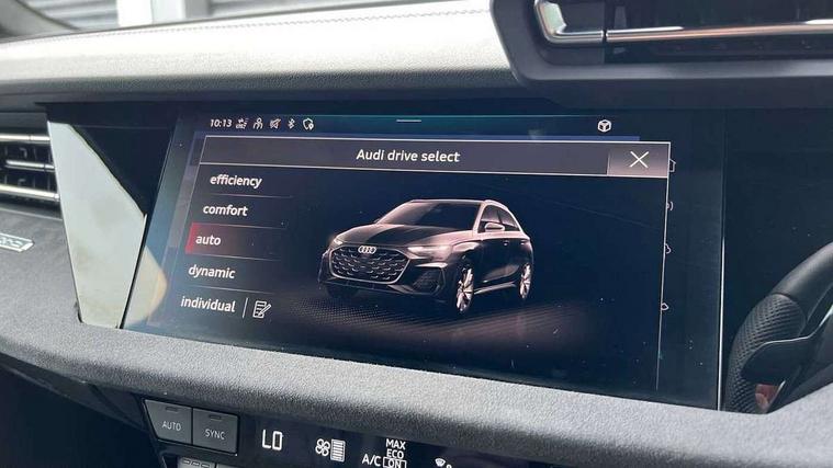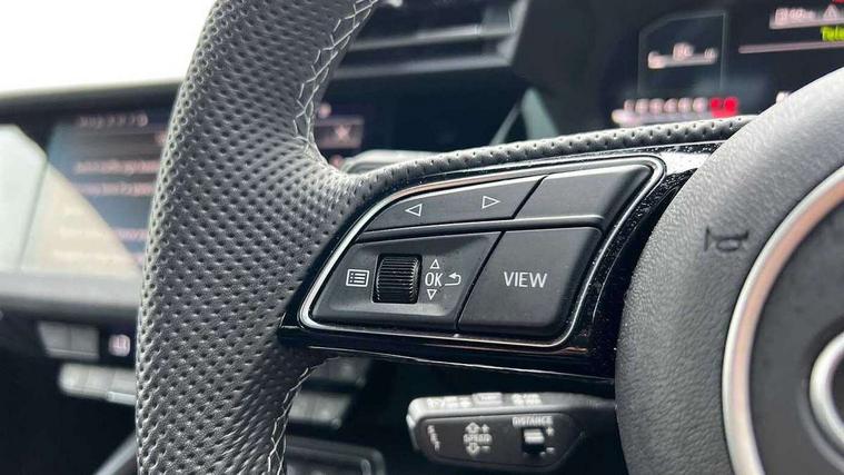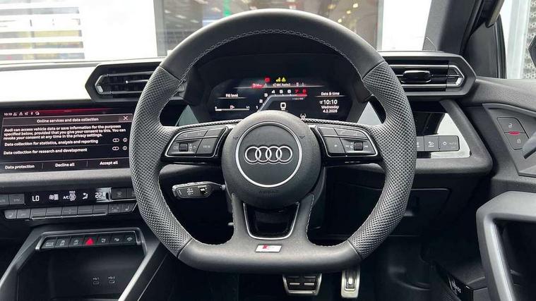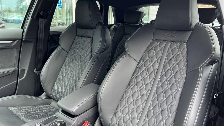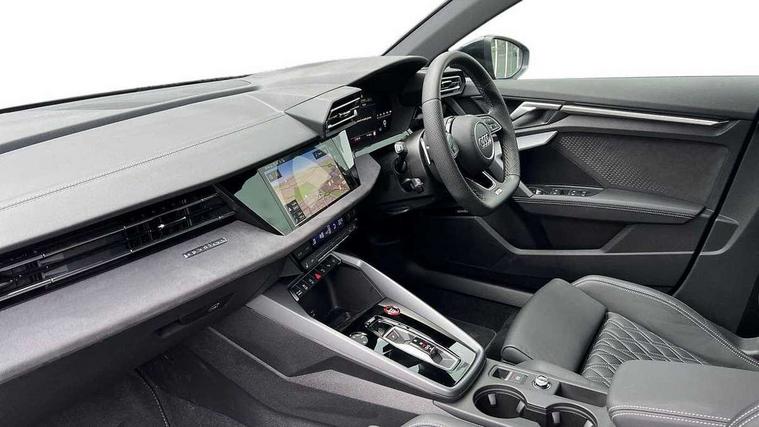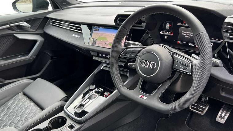 Adjustable speed limiter, Audi drive select, Audi smartphone interface with app store includes wireless Apple carplay, Android auto and Amazon alexa integration, Audi virtual cockpit plus - 12.3" full HD resolution dynamic digital instrument cluster, Automatic start/stop system with recuperation, Bluetooth interface, Camera based traffic sign recognition, Collision avoidance assistant, Distraction and Fatigue warning, e-Call (emergency call), Emergency assist, Lane departure warning system, MMI Navigation Plus with high resolution 10.1" colour touch screen display, Park Assist with parking system Plus, Progressive steering, Service indicator, Tailgate, Trip computer, Voice control system with natural language interaction, quattro permanent all-wheel drive with torque splitter, S sport suspension with spring damper adjustment and lowering by 15mm, Audi Phonebox light with wireless charging, DAB Digital radio, USB ports with charging function in the rear, All weather light, Anthracite grey Audi rings (front and rear), Audi Beam uses LEDs to project the rhombus S logo onto the ground as you exit your S3, Auto dimming frameless rear view mirror, Automatic dynamic range control, Black accents front and rear bumpers including air inlets, Black accents in front grille and frame, Black accents in window trims, Dipped beam, main beam, position light and turning light, Electrically adjustable/heated/folding/auto dimming door mirrors with integrated LED indications + kerb view function for passenger side, Exterior model badging, Front electric windows, Headlight washers, Heat insulating glass windscreen, Illuminated door sills with aluminium inserts at the front with S logo, Intersection light, LED 3rd brake light, LED brake lights, LED daytime running x3, LED headlights with LED rear lights and dynamic rear indicators, LED rear number plate lights, LED reverse light, LED tail lights, Light and rain sensors, Manoeuvring light, Motorway light, Privacy glass - dark tinted rear window, rear door and side windows, Rear diffuser and grill in grained matt black with inlay in dark liquid chrome, Rear electric windows, Rear side wing doors, Rear wiper, S grille, S3 front bumper with S specific air intake grilles, S3 roof spoiler, Static cornering light, 12V socket and storage compartment in front centre console, 3 seat bench in 2nd row, 3 spoke flat bottomed leather multifunction sport steering wheel with gear shift paddles, 3-zone deluxe automatic air conditioning, 4 way electrically adjustable lumbar support for driver and front passenger, 40/20/40 split folding rear seat bench, Black cloth headlining, Black front and rear floor mats, Fine Nappa leather upholstery with front sports seats S embossed logo, Front and rear centre armrest in artificial leather with contrasting stitching on armrests and instrument panel, Front and rear headrests, Heated front seats, Height and reach adjustable steering wheel, Manual boot compartment lid, Manually adjustable front seats, Rear centre armrest with cupholder, S badging on the steering wheel, Seat side bolsters, Single front passenger seat, Stainless steel pedals and front footrest in black, Aluminium interior elements pack - A3, Storage package - A3, Technology package - A3, 3x3 point rear seat belts, Driver and front passenger airbag with passenger airbag deactivation, Electronic Stabilisation Control (ESC) including ABS, ASR and EDL, First aid kit with warning triangle and 2 safety vests, Front side airbags with head airbags and interaction airbag, Hill hold assist, Pre-sense front with pedestrian and cyclist detection, Seatbelt monitoring, Tyre pressure loss indicator, Anti theft alarm, Anti-theft wheel bolts, Electronically operated child locks, Immobiliser, Remote central locking with safelock, Black dashboard, Tyre repair kit,