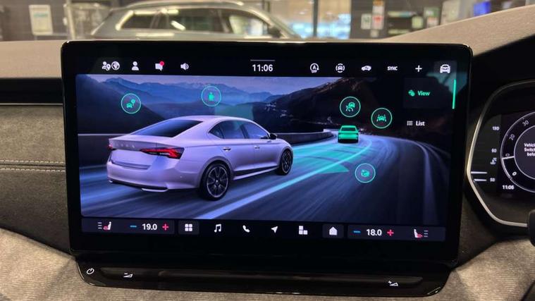 1x USB Typc C port in rear view mirror, 4x USB Type C ports - 2x in front centre console and 2x in rear (45W), Drive mode selection, Driver fatigue sensor, eCall emergency system, Electro-mechanical power steering, Front assist system, Traffic jam assist, Traffic sign recognition, Turn Assist, Virtual Cockpit - 10.25" digital display, Voice control system, Wireless charging (15W) with cooling function, Wireless SmartLink for Apple CarPlay and Android Auto, 13" touchscreen display with navigation, DAB Digital radio, Aero front windscreen wipers with intermittent function, Auto dimming rear view mirror, Body colour bumpers, Body colour door mirrors and handles, Chrome grille surround, Chrome strip in lower front bumper, Chrome window surrounds, Electric front and rear windows, Heated rear windscreen, High level third brake light, Ice scraper in fuel cap, LED daytime running lights, LED Headlights, Logo projection in front doors, Rain and light sensors, Rear fog light on one side, Rear privacy glass, Rear side wing doors, 12 volt socket in boot, 3 rear headrests, 3 seat bench in 2nd row, 4 foldable roof handles, Boot net programme, Front head restraints, Heated front seats, Illuminated glovebox, Interior door handles in dark chrome, Jumbo Box storage, Luggage compartment lighting x2 lights, Mechanical rear seat release from boot, Parcel shelf - folding, Single front passenger seat, Steering wheel in black leather with black stitching, Storage compartments in left and right of boot, Sun visors with mirrors, Sunglasses storage, Ticket holder, Umbrella in door panel, Unsplit rear bench seat, split folding backrest with centre armrest with cupholder, Comfort package - Octavia, 3x3 point rear seat belts, Alarm with interior monitoring, tilt sensor and back up horn, Curtain airbags and front side airbags, Driver and front passenger airbags, Drivers knee airbag, Electronic parking brake, ESC including ABS, EBV, MSR, ASR, EDS, HBA, DSR, Front central airbag, Hill hold assist, ISOFIX on front passenger seat and outer rear seats, Passenger airbag deactivate switch, Three point seat belts in front and rear, Two tone horn, Tyre pressure monitor, Visual and acoustic seat belt reminder, Warning reflectors in front door, Anti-theft wheel bolts, Keyless start/stop, Remote central locking, Chrome air vent surrounds,