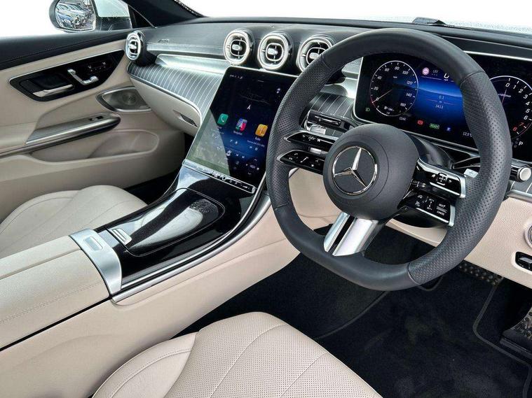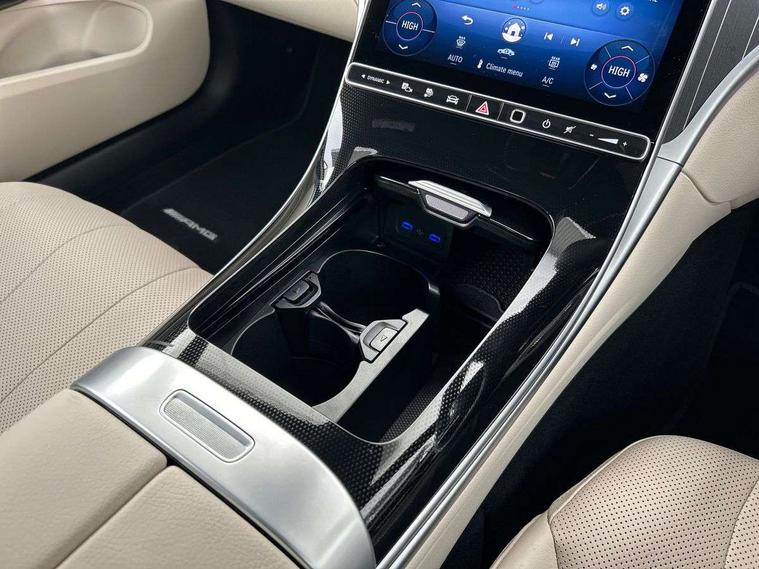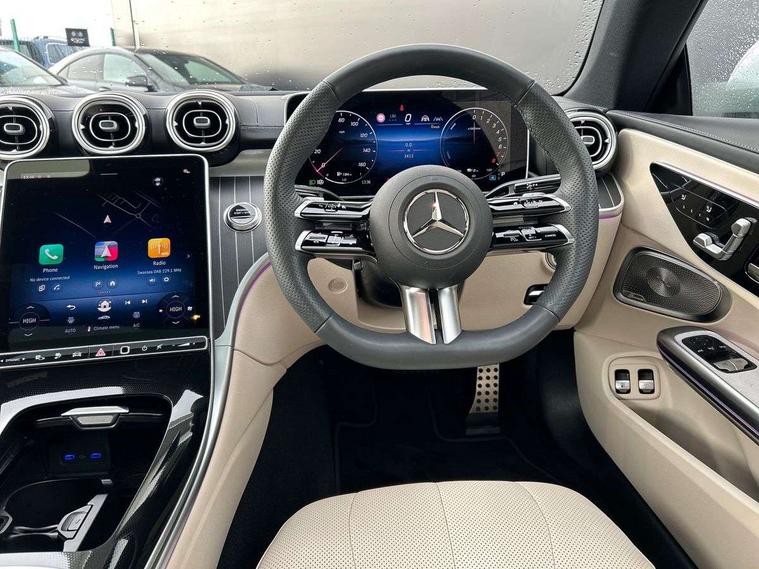 5G Communications module, Acoustic presence indicator, Active lane keeping assist, Bluetooth connection, Car wash mode, DYNAMIC SELECT with a choice of driving modes (ECO, Comfort, Sport, Sport+ and Individual), eCall emergency call system, Fingerprint scanner, Fluorescent jacket for driver, Fully digital 12.3" driver display screen, Hard-disk navigation, Head up Display, Hey Mercedes Voice activation, MBUX augmented reality for navigation, MBUX navigation premium, PAS, Passive person presence reminder, Portrait format 11.9" touchscreen central display with driver orientation, Smartphone integration with Apple CarPlay and Android auto, Traffic sign assist, Wireless charging system for mobile devices in the front, 50 litre fuel tank, 9G TRONIC plus automatic transmission, AC charging, Charging cable for domestic socket, 5 m, straight, Comfort suspension, Integrated starter generator Gen 2, Mode 3 charging cable for wallbox and public charging stations with 5m upto 11kW, Self levelling suspension, Sporty engine sound system, Burmester 3D surround sound system with sound personalisation, Digital radio, MBUX extended functions, MBUX multimedia system, AMG bodystyling, AMG Line exterior, Auto headlights, Electric windows, Heat insulating dark tinted glass, LED 3rd brake light, LED Day time running light, LED digital light with adaptive highbeam assist plus, Panoramic sliding sunroof, Rain sensor windscreen wipers, Rear boot, Variable front intermittent wipers, 2 individual rear seats, 2 rear head restraints, Ambient lighting premium, Ambient lighting with projection of brand logo, AMG floor mats, AMG line interior, Belt feeder, Black fabric roof liner, Climatised massage multicontour front seats, Folding rear seat backrests, Front headrests, Heated front seats, Heated steering wheel, Illuminated door sill panels with Mercedes Benz lettering, Instrument panel and beltlines in ARTICO manmade leather in nappa look, Leather upholstery, Multifunction sports steering wheel in nappa leather, Power height and reach adjustable steering column, Single front passenger seat, THERMATIC automatic climate control, Interior light pack - CLE, Keyless-Go comfort package - CLE, Memory seat pack - CLE, Mirror pack - CLE, Parking package with 360 degree camera - CLE, Stowage space package - CLE, USB package plus - CLE, Anti-lock braking system (ABS), Braking system with larger brake discs on the front axle, Centre airbag, Dual front airbags, Electric parking brake, Electronic Stability Programme (ESP), Front and rear seatbelt reminder, Hill start assist, Pedestrian protection, Rear side airbags, Tyre pressure monitoring system, Anti theft alarm system, Guard 360 degree vehicle protection plus, Increased anti-theft protection, Interior monitoring system, Black open pore aluminium lines wood trim with centre console in black fine structure, 19" AMG multi spoke light alloy wheels painted in black with high sheen finish, Tirefit,