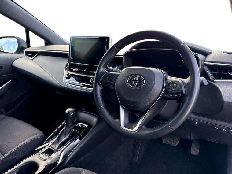 7" Multi information display screen, Bluetooth telephone connectivity, Connected car functionality upgrade, tracker, remote status and e-care, Dynamic radar cruise control (with RSA) including switch on steering wheel, E-call, Electrically assisted power steering, EV drive indicator, Intelligent park assist, Lane Departure Alert (LDA) switch on steering wheel, Memory on adjustable speed limiter, Push button start, Reversing camera, Smartphone integration with Apple CarPlay and Android auto, Gasoline particulate filter, Vehicle Stability Control (VSC), 6 speakers, 8" Touchscreen with MM19 Multimedia system and voice recognition, AM/FM radio, DAB Digital radio, Toyota touch 2 with go navigation system, USB and Aux in connectors + 12V front outlet, USB charging port in centre storage box, Aluminium roof rails, Anti-jam protection on power windows, Auto up and down function on all power windows, Automatic headlights with high beam assist, Black metallic surround on lower front grille, Black toyota logo in front, Body colour rear spoiler, Body coloured bumpers, Body coloured door mirrors, Body coloured outside door handles, Follow me home headlights, LED daytime running lights, LED front fog lights, LED Headlights, LED High mounted stop light, Manual day/night rear view mirror, Noise reduction layer on front windows, Power adjustable heated door mirrors, Power front windows, Power rear windows, Rain sensor, Rear side wing doors, Rear window defogger, Rear window wiper, Shark fin antenna, Time adjustment on intermittent wiper, Turning signal integrated indicators in door mirrors, Unique lower skirt, Unique side rocker with black insert, UV-filter on driver and passenger windows, 12v power outlet - luggage side, 3 rear headrests, 3 seat bench in 2nd row, 3 spoke leather steering wheel + gear knob, 60/40 split folding rear seat, Adjustable speed limiter switch on steering wheel, Audio, multimedia and telephone switches on steering wheel, Boot light, Boot underfloor storage, Clean air filter, Driver and front passenger personal light, Driver and passenger assist grip, Driver and passenger sun visor with mirror and light, Dual sided deck board in boot, Dual zone automatic air conditioning with ECO mode switch, Fabric armrests, Front and rear cup and bottle holders, Front and rear door pockets, Front head restraints, Front passenger seat, Heated driver and front passenger seats, Illuminated entry system in room lamp, ISOFIX seat fixing (2 fixings on rear outer seats), Leather gear shift with satin chrome on gear shift console, Manual height adjustable for driver and front passenger seat, Paddle shifts, Passenger seat back pocket, Pollen filter, Power adjustable lumbar support on driver seat, Power window switches with satin chrome inserts, Quilted fabric upholstery with grey stitches seats, Rear armrest with 2 cupholders, Rear passenger air vents, Rear passenger coat hooks (2), Rear passenger personal lights, Retractable tonneau cover with luggage partition net, Satin chrome inside door handles, Shopping bag hooks in luggage compartment, Sliding armrest on centre console box, Slow opening glovebox with lights, Tilt/telescopic steering column, Tonneau cover with under floor storage, Voice recognition switch on steering wheel, Whiplash Injury Lessening (WIL) feature (active headrest) for seats, Parking pack - Corolla, Toyota safety sense 2 pack - Corolla, 3x3 point rear seatbelts, Adjustable driver and front passenger seat belt extender to top anchor point, Anti lock braking system + Electronic brake force distribution, Brake assist function, Child locks on rear doors, Downhill Assist Control (DAC), Electronic parking brake, Emergency brake light signal (EBS), Front passenger airbag on/off switch, Front seatbelt reminder, HAC - Hill start assist control, Rear seat belt reminder, Seatbelt pretensioners and force limiters, Supplemental restraint system (SRS) 7 airbags - dual driver, dual side curtain, side impact and driver knee airbags, Traction control, Tyre pressure warning system, Acoustic vehicle alert system (AVAS), Alarm with motion sensor and immobilizer, Remote central locking + deadlocks, Smart entry, Satin chrome dash trim, Soft touch texture on upper dashboard, Stitching on lower dashboard, Space saver spare wheel, Unique wheel finish with red wheel cap,