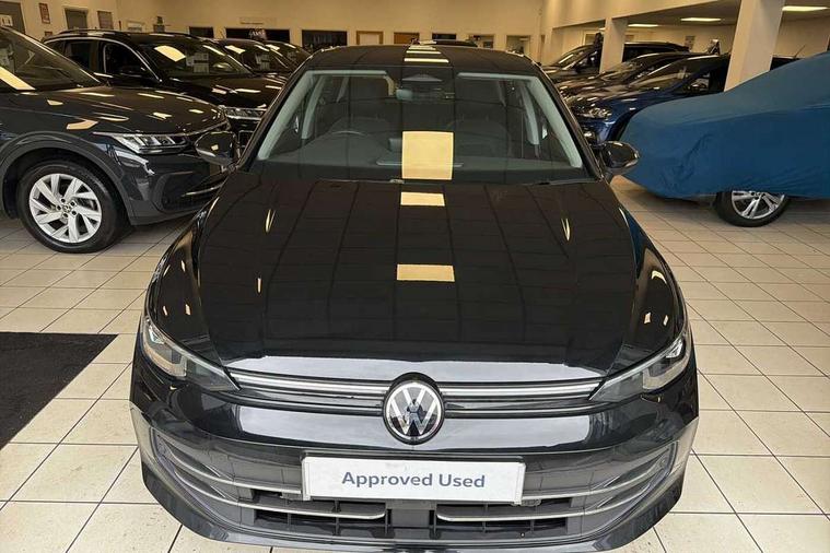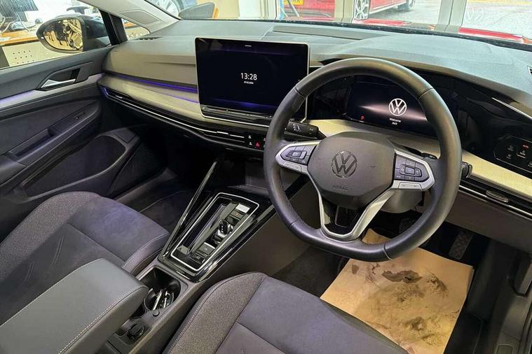 Activated carbon canister, Adaptive cruise control (ACC), Advanced driver attention and drowsiness monitor, Dynamic road sign display, E-Sim card for online connectivity, eCall emergency call system, Multi-color Digital cockpit pro, selection of different info profile possible, Multifunction front facing camera for distance control, Navigation system, Oncoming vehicle braking when turning including swerve support, Side assist blind spot lane change system, rear traffic alert and exit warning system, Speed limiter, Speedo, rev counter, electronic odometer, trip, service interval display, exterior temperature and fuel gauge, Traffic jam assist, Voice enhancer and voice control, Warning signal and warning light for front and rear seatbelts not fastened, We connect plus preparation, We connect preparation, Wireless app connect, Charging cable Mode 2 Type 2 (10A), Charging cable mode 3, type 2 32 A, Hybrid propulsion system, Start-stop system with battery regeneration (recuperation - energy recovery during braking), XDS electronic differential lock for improved traction and handling, 2 USB C ports in front, 2 USB charging sockets on the centre console in the rear charging capacity upto 45W, 6 Speakers - 4 in front and 2 in rear with central speaker, Digital radio reception (DAB), Diversity antenna for FM reception, Gaming platform via car app, Infotainment system with 12.9" display, Mobile phone interface with inductive charging feature, 3rd brake light, Automatic headlamp activation with Coming home and Leaving home feature, Body colour bumpers, Body colour door handles, Body colour door mirrors, Chrome trimmed front air intake surrounds, Chrome trims on the side window bottom, Exterior mirrors convex on the left and aspherical on the right, Front and rear electric windows, Heat insulating windshield made of laminated glass, LED separate daytime running light, Rear exhaust tailpipe, Rear fog light on one side and reversing lights on both sides, Rear side wing doors, Rear windscreen washer and wiper with interval delay, Remote electrically foldable door mirrors, puddle lights and reverse activated passenger's door mirror, Welcome light with surround lighting, 12V socket in front centre console, 12V socket in luggage compartment, 3 rear head restraints, 3 seat bench in 2nd row, Air care climatronic 3 Zone automatic climate control with rear air conditioning control panel, Ambient lighting with 30 colour including LED light unit in front footwell with selectable light colour, Chrome plated radiator grille inserts, air vent surrounds and light switch surrounds, Front + rear black carpet mats, Front centre armrest, ISOFIX anchors for child seats on outer rear bench seats and on front passanger seat compatible for i-Size, Luggage compartment lighting, Plastic gear knob, Rear cupholder and loadthough, Single front passenger seat, Soul black instrument panel, Split folding backrest with centre armrest and unsplit rear seat bench, Standard pedal cluster, Storm grey roof lining, Sun visors with illuminated vanity mirrors, Driver assistance pack - Golf Estate/Hatchback Auto, 3 point height adj front seatbelts + pretensioners, 3 rear three point seatbelts, ABS, Autonomous emergency braking front assist with pedestrian and cyclist monitoring, Child locks on rear doors, Driver and front passenger airbag with front passenger airbag deactivation, Electronic parking brake with auto hold, ESC (Electronic Stability Control), Extended pedestrian protection measures, Hill start assist, Rear disc brakes, Two tone horn, Tyre pressure loss indicator, Volkswagen roadside assistance, Anti theft wheel bolts, Preparation for alcohol interlock, New brushed dark metal decorative inserts for dashboard and front door panels, Tool kit for tyre mobility set, Tyre mobility kit Includes 12V compressor and tyre sealant,