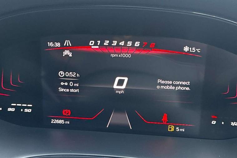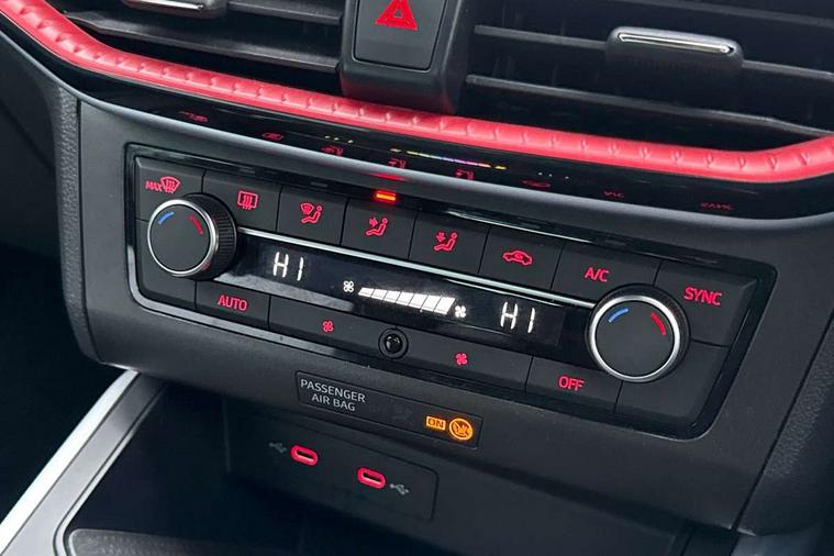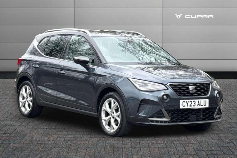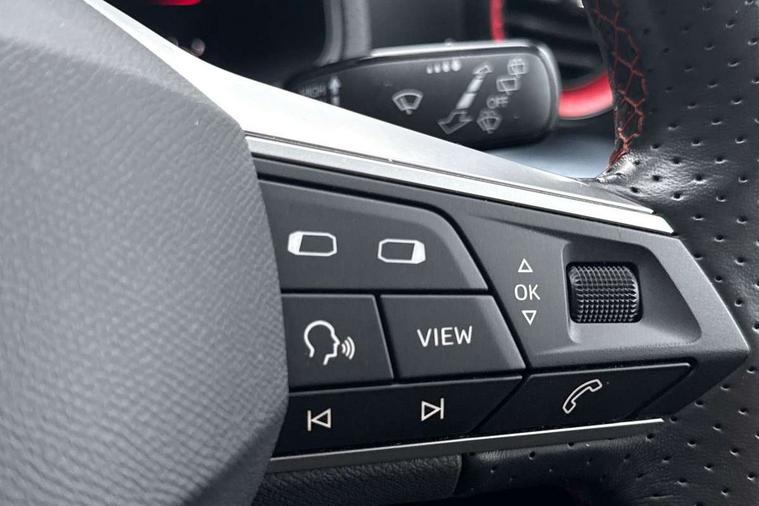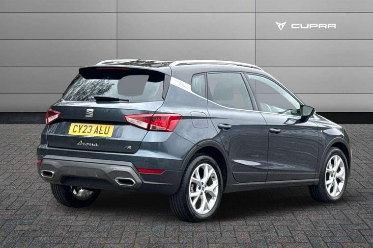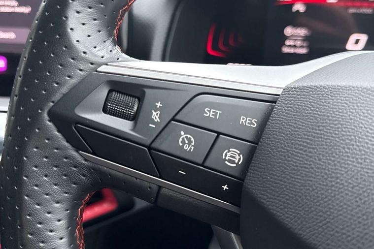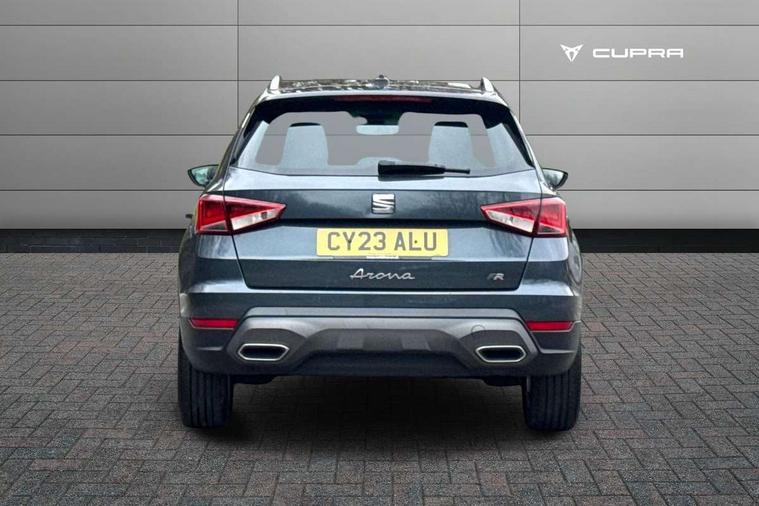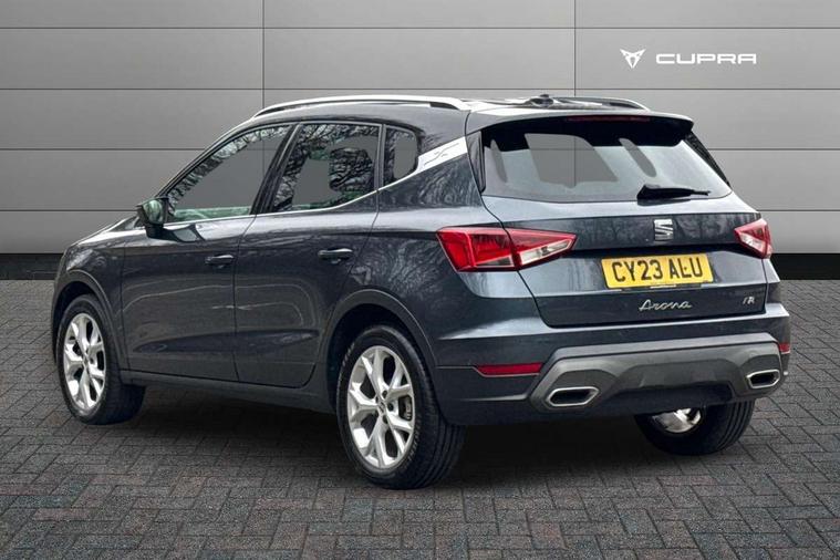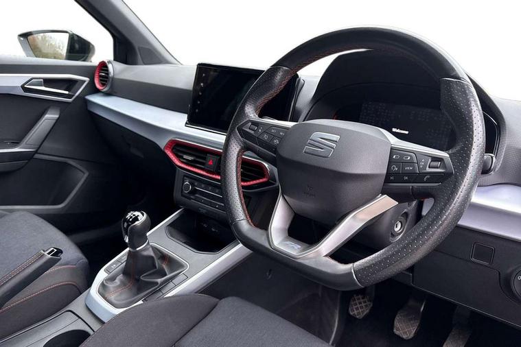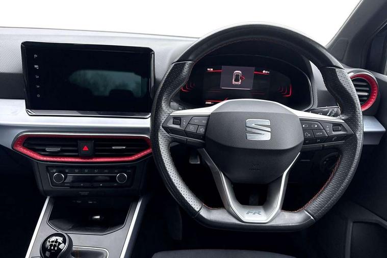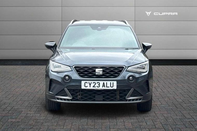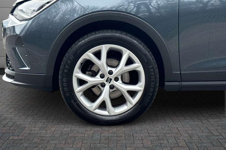 'Lights On' Reminder warning buzzer, 8" Digital cockpit, Digital clock, E-call, Electric speed sensitive power steering, Full Link Smartphone Integration with Mirror Link, Apple Car Play, Google Android Auto with USB Type C cable for Apple and Android compatibility, Lane keeping system, Low fuel warning light, Outside temperature display, Rear parking sensor, RPM counter, Seat connect with safety, service, remote and online, SEAT Drive profile - Four different models normal-sport-eco-individual, steering response, throttle response, Trip computer, Wireless phone charger, 9.2" colour touchscreen with navigation system, voice control and USB port (type c), Bluetooth interface for hands free and audio streaming, DAB digital radio and AM/FM radio, Steering wheel mounted audio controls, Anti theft roof antenna, Auto dimming interior rear view mirror, Automatic activation of hazard warning lights, Body coloured bumpers, Body coloured door handle inserts, Chrome roof rails and window surrounds, Dark tinted rear windows, Electric front/rear windows, Electrically adjustable, heated and folding door mirrors, Front fog lights with cornering function and rear fog light, FULL LED automatic headlights with dynamic headlight range control, coming and leaving home, LED daytime running lights, LED rear tail lights and licence plate lights, Protective side mouldings, Rain sensing wipers, Rear side wing doors, Rear spoiler, Rear window wash/wipe, Roof colour door mirrors, Third brake light, Twin exhaust pipe styling hidden exhaust pipe, Visible VIN plate, Windshield wiper with intermittent control and potentiometer, 2 cupholders, 3 seat bench in 2nd row, 60/40 split folding rear seat, Aircare filter, Black interior roof, Cloth upholstery, Double boot floor, Driver sunvisor with covered mirror + card holder, Dual zone climate control, Front courtesy light with 2x front and 2x rear reading lights, Front sport seats, Gear shift indicator, Height adjustable front seats, Height/reach adjustable steering column, Illuminated boot, Instrument lighting with brightness control, Interior ambient lighting, Interior light in footwell, central console and door panel, ISOFIX points in outer rear seats with top tether anchorage points, Passenger sunvisor with vanity mirror, Perforated flat bottomed leather steering wheel/gear knob/handbrake with red stitching and FR logo, Single front passenger seat, Two front and three rear height adjustable headrests, Interior chrome pack - Arona, 3 point seatbelts on all rear seats, ABS, Active front headrests, Child locks on rear doors, Driver and front passenger airbags with front passenger airbag de activation, front side and curtain airbags, Electronic stability control, Emergency Brake Assist (EBA) and front assist, Front and rear seatbelt reminder, Hill hold control, Multi-Collision braking, Tiredness recognition system, Traction control, Tyre pressure monitoring system, Alarm with back-up horn, Electronic engine immobiliser, Locking wheel bolts, Remote central locking + deadlocks, Tow away protection, Titan black dashboard, 17" Dynamic alloy wheels,