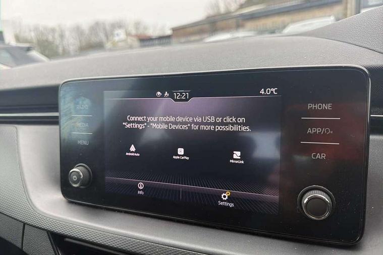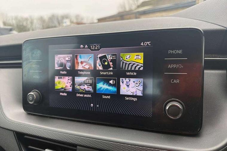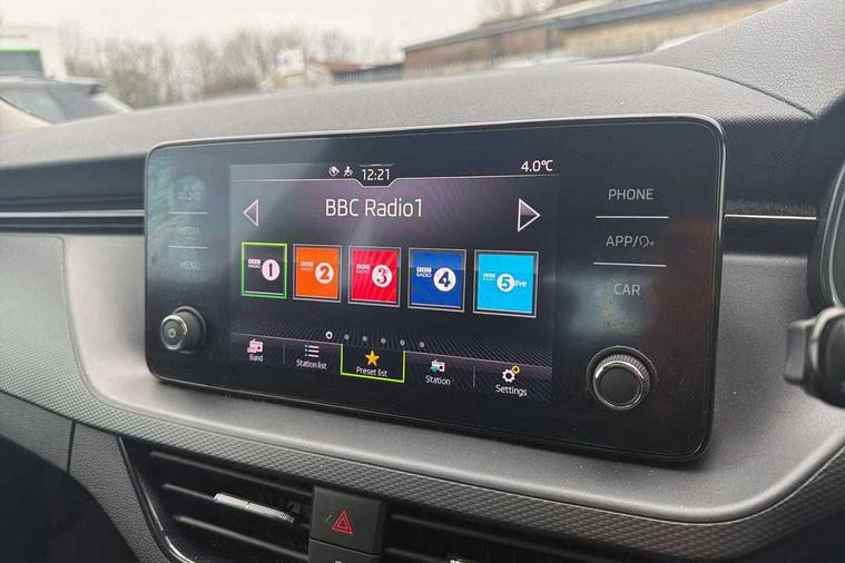 Bluetooth system, E-call, Front assist system, PAS, Service indicator, Speed limiter, Wireless Smartlink for Apple CarPlay (wired for Android Auto), 8 Speakers, Auxiliary input socket, DAB Digital radio, Body colour bumpers, Body colour door mirrors and handles, Chrome grille surround, Dimming rear view mirror with black surround, Electrically adjustable and heated door mirrors, Front and rear electric windows, Headlight range control, Heated rear window, LED rear lights - low functionality, LED third brake light, Light sensors, Rain sensor, Rear fog lights, Rear side wing doors, Rear wiper, 12V Accessory socket in centre console, 3 seat bench in 2nd row, Chrome inner door handles, Cloth upholstery, Front head restraints, Glove compartment with illumination, Ice scraper, Isofix child seat fittings on outer rear seats, ISOFIX on front passenger seat, Manual lumbar support for front seats, Rake/reach adjustable steering wheel, Reading lights, Single front passenger seat, Sun visors with illumination on front passenger, Textile floor mats, Third rear headrest, Top tether for front passenger seat, Umbrella in driver's door, 3x3 point rear seatbelts, Airbags - driver and front passenger, ESP, Front passenger airbag deactivation switch, Front side airbags with curtain airbags, Hill hold control, Manual parking brake, Manual rear child locks, One tone horn, Rear disc brakes, Seatbelt reminder for driver an co-driver, Traction control, Tyre pressure monitor, Anti-theft alarm system with interior monitoring, backup horn, towing protection and remote central locking with SAFE system, Anti-theft wheel bolts, Electronic engine immobilizer,
