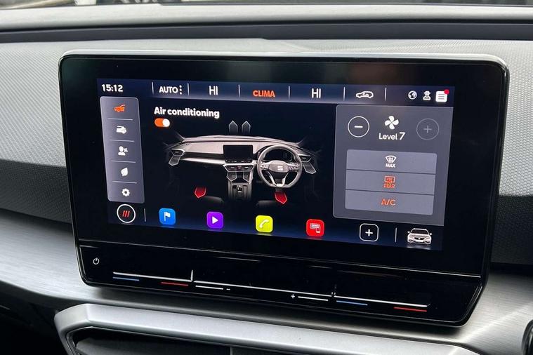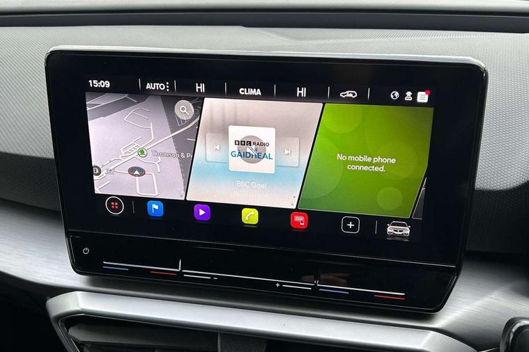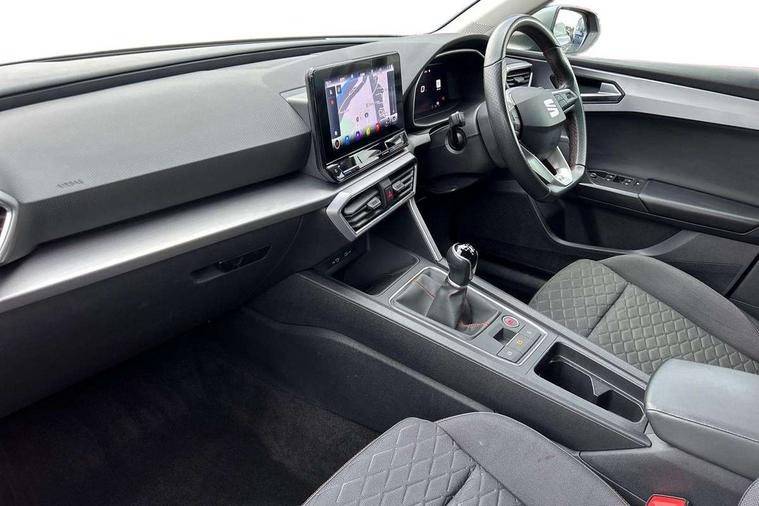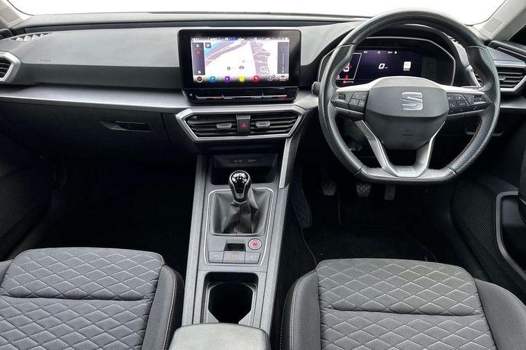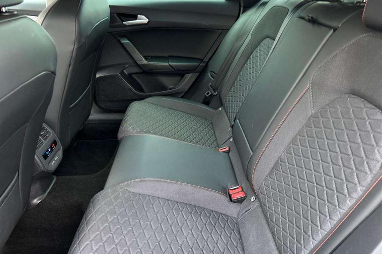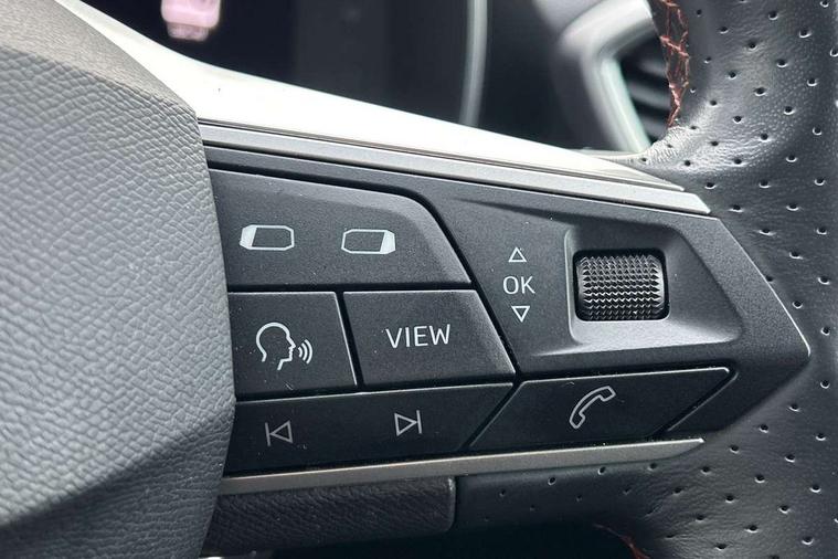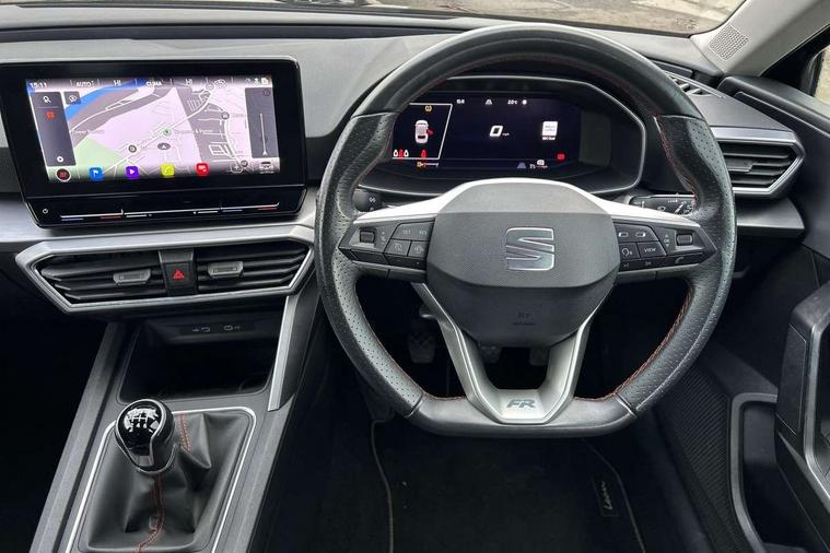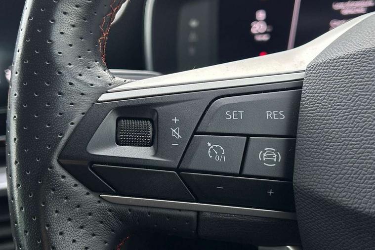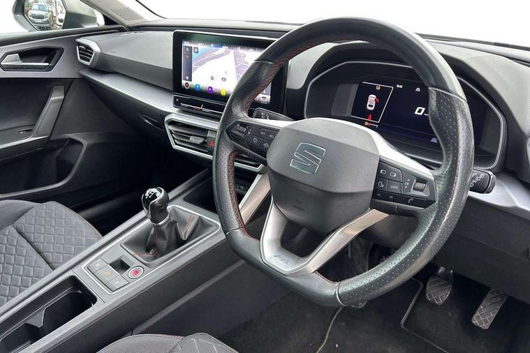 Digital cockpit, E-call, Four x USB Type C ports, Front assist with forward collision warning braking reaction to vehicles, pedestrians and cyclists, Full link smartphone integration with Mirror Link, wireless Apple CarPlay and wired Google Android Auto, Lane assist, Lockable tailgate, Park assist (inc front/rear parking sensors), Power assisted speed sensitive electro-mechanical steering, Rear view camera, RPM, trip computer, outside temp gauge, instrument light brightness, low fuel warning light, lights on reminder, gearshift indicator, SEAT drive profile with 4 modes (Eco/Normal/Sport/Individual), throttle response, Service interval indicator, Start/stop system with regenerative braking, Sports suspension, XDS electronic differential lock and dynamic traction support, 7 speakers, Auxiliary input socket, Auto dimming rear view mirror, Body colour door handles, Body coloured bumpers, Cosmo grey exterior mirrors with integrated LED indicators, Dark tinted rear windows, Dynamic headlight range control, Electric front/rear windows, Electrically adjustable, heated and folding door mirrors, FR sports bumper, Illuminated front door sill, LED front fog lamps, LED Headlights with dynamic turn signals, LED tail lights and rear fog lights with rear coast to coast lighting, Matt black roof rails, Rear side wing doors, Rear wash/wipe, Separate daytime running light with automatic headlight control and coming home feature, Third brake light, Welcome light silhouette from exterior mirrors, Windshield wiper intermittent control with light/rain sensor, 12v power point in centre console, 3 seat bench in 2nd row, 60/40 split rear bench seat with armrest, Ambient lighting with glovebox, footwell and single monocolour, Driver/passenger manual seat height adjustment, Dust/pollen filter, Flat bottomed perforated leather steering wheel with red stitching and FR logo and leather gear stick, Front and rear height adjustable headrests, Front and rear reading lights X 4, Front centre armrest, Front seatback storage pockets, Height/reach adjust steering wheel, ISOFIX points in outer rear seats with top tether anchorage points, Luggage tie-down hooks, Lumbar adjustment for front seats, Single front passenger seat, Sliding boot cover, Sunvisors with covered illuminated mirror, Three zone climate control, Two tone cloth upholstery, Media system plus with navigation - Leon, 3 point seatbelts on all rear seats, ABS, Brake control system - ESC and brake booster, Child proof door locks, Driver and front passenger airbags with front passenger airbag de-activation, front side and curtain airbags, Electronic parking brake, Extended safety system - seat belt tensioner, window closure and hazard lights, Hill hold control, Rear disc brakes, Seat belt reminder for front and rear seats, Tiredness recognition system, driver alert system, Tyre pressure monitoring system, Anti theft alarm system with interior monitoring in cab, backup horn and towing protection, KESSY Go (Keyless start), Locking wheel bolts, Wireless phone charging, Chrome interior detailing, 17" Dynamic Bi-spoke alloy wheels with 91W tyres, Tool kit,