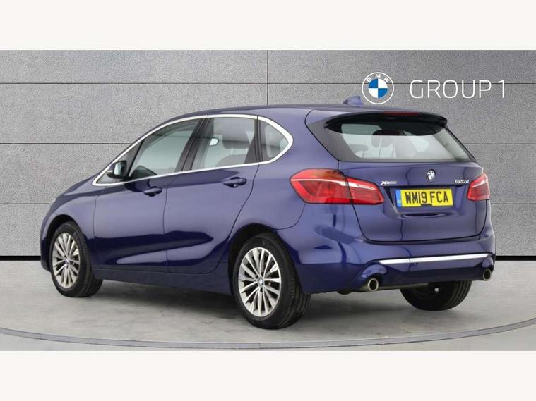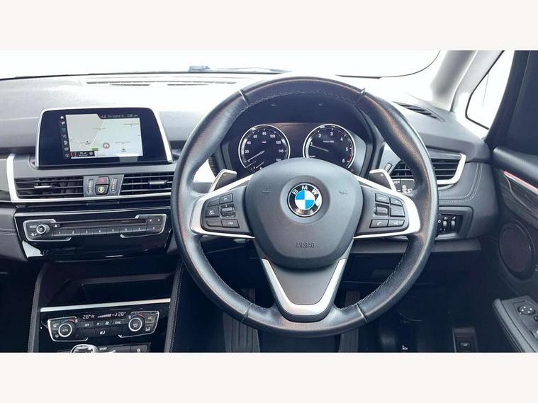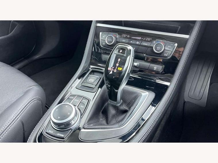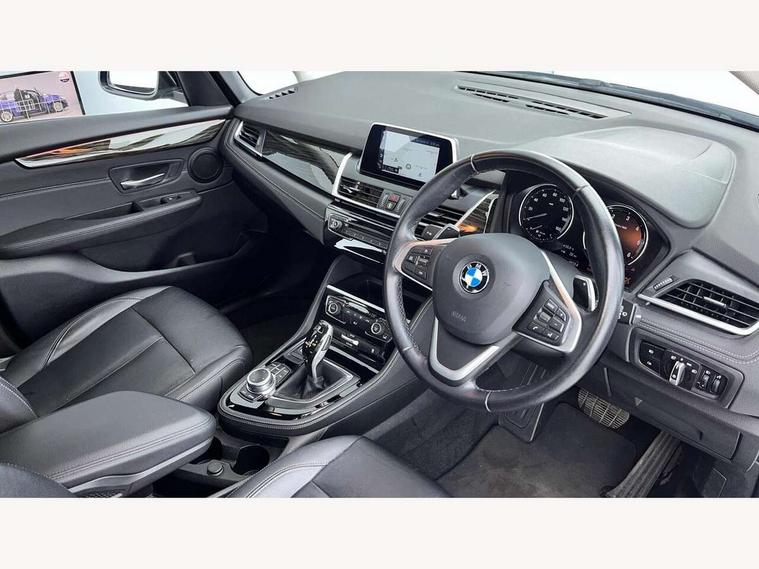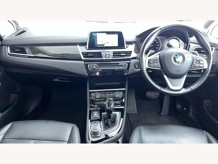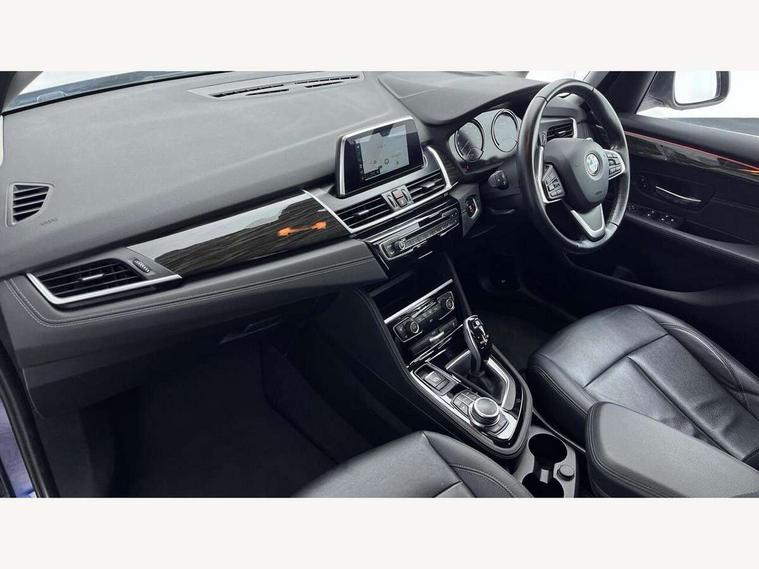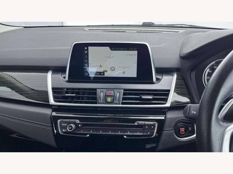 Active Guard incl speed limiting and lane departure functions with auto steering, and front collision warning with brake intervention, Attentiveness assist, Automatic tailgate operation, BMW Online services, BMW remote services, BMW Teleservices, Brake pad wear indicator in front and rear, Check Control warning system for monitoring of lights and door/luggage compartment open warning, Instrument cluster with speedometer with miles per hour read out, tachometer and fuel gauge, Lights on warning by audio warning signal when ignition is switched off, On board computer - average speed+fuel consumption, service interval, clock/date, odometer/trip meter, outside temperature display and ice warning, Optimum shift indicator, Personal Profile - automatic lock when driving away selectable, Real time traffic information, Service interval indicator, Speed limiter, Diesel particulate filter, Drive performance control with ECO PRO comfort + sport mode, Electronic differential lock, Incorrect fuelling protection, Intervention on the front axle when DSC deactivated, Sport automatic transmission, 2 USB sockets in rear, BMW professional radio/CD/MP3, DAB Digital radio, Body colour - front and rear bumpers, door handles, mirror caps, roof mouldings, Clear lenses direction indicator lights, Direction indicator side lights integrated exterior mirrors, Dynamic brake lights, Electric windows - front and rear, with open/close fingertip control, anti-trap facility and comfort closing, Electrically adjustable door mirrors with aspheric on driver side, convex on passenger side with integrated indicators, Exclusive front door sill finishers with BMW designation, Follow me home headlights, Front air inlet with chrome finish, Green tinted heat protection glazing, Halogen headlights, Headlight beam throw control, Heated windscreen washer jets, High level third brake light, Kidney grille with 12 Chrome fronted vertical slats, LED daytime running lights, LED front fog lights, Lightweight engineering, Rain sensor including auto headlights activation, Rear bumper with chrome finisher, Rear fog lights, Rear window aerial, Rear window wiper integrated under roof spoiler, Reversing light in rear light cluster, Shark fin antenna, Twin chrome exhaust tailpipes, Visible VIN plate, Welcome lighting, 12V power socket in centre console + front with blanking plug, Automatic two zone climate control air conditioning, Central locking switches for door, fuel filler cap and luggage compartment, Child seat ISOFIX attachment for two outer rear seats and front passenger seat with anchorage points, Dakota leather upholstery with perforation and contrast stitching, Four grab handles integrated in roof lining, Front and rear side armrest integrated into door trim, Front armrest, Front head restraints, Glovebox with light, Interior lighting, front centre over interior mirror and rear centre automatic interior light activation when door is opened, LED ambient lighting in door trim, Luggage compartment access via BMW roundel, Luggage compartment lighting, Multi-function controls for steering wheel, Rear centre armrest, Sliding rear seat bench, Steering wheel column manual adjustment, Sunvisors with vanity mirrors and ticket pocket, Three rear headrests, Three spoke sport leather steering wheel, Two cupholders, Velour floor mats, Extended storage pack - 2 Series Active/Gran Tourer, 3 point seatbelts on all seats, front pyrotechnic belt tensioners, stopper and belt force limiters, rear coded belt buckles, Airbag - Front driver and passenger, front and rear head, front side, curtain head protection, manual deactivation of front passenger airbag possible, Anti lock braking system (ABS) with brake assist, Battery safety cut-off, BMW emergency call, Brake drying, Brake energy regeneration, Braking lock, Braking readiness, Child proof locking system in rear door, Crash Sensor - activates hazard/interior lighting + unlocks doors, Dynamic stability control + (DSC+), Dynamic Traction Control - DTC, Electrically operated hand brake, Front ventilated disc brakes, Hill start assist, Rear disc brakes, Seat belt security check for driver and front passenger, Seatbelt warning, Side impact protection, Twin horns, Tyre pressure monitoring system, Warning triangle and first aid kit, Locking wheel bolts, Remote control with integrated key with silver highlight, Thatcham 1 alarm system with remote control and engine immobiliser, Contrast stitching on instrument panel, Reduced rolling resistance tyres,