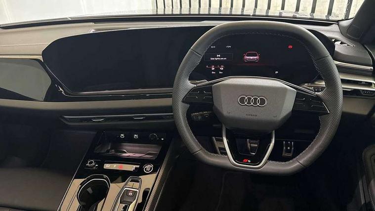 Adaptive cruise control, Attention and drowsiness detection with driver observation, Audi application store, Audi assistant, Audi connect emergency call and service, Audi drive select, Audi virtual cockpit plus with 11.9" OLED colour display, Automatic start/stop system with coasting functionality, Camera based traffic sign recognition, Convenience key, Intersection assist, Lane departure warning, MMI navigation plus with high resolution 14.5" OLED touchscreen colour display, Park assist plus, Parking system plus with 360 display, Progressive steering with servotronic, Rear view camera, Side assist and exit warning, rear cross-traffic assist and rear turn assist, Smartphone interface, Swerve assist and turn assist, Traffic sign based speed limiter, Household plug type G, Hybrid propulsion system, Industrial connector CEE 32A, 230V, long and straight for the e-tron charging system, Mode 3 type 2 AC charging cable 22kW, Sports suspension lowered by 20mm, Audi sound system impressive sound with 8 loudspeakers including centre speaker and subwoofer, 6-channel amplifier with a total output of 180 watts, DAB digital radio reception, Smartphone compartment with wireless charging, Aluminium window trims, Auto dimming rear view mirror, Body colour door handles, Body colour door mirrors, Door mirrors - electrically adjustable, heated, folding and auto dimming on both sides, Front and rear electric windows, Front door sill trims with aluminium inlays, illuminated with 'S' logo, High beam assist, LED headlights Plus incl. digital daytime running lights, turning light, all-weather light, motorway light, manouevring light and intersection light, LED rear lights pro incl. dynamic rear indicators and illuminated light strip with animated coming and leaving home function, LED third brake light, Privacy glass, Rear and side windows with heat insulating glass, Rear boot, Rear side wing doors, S Line badges on the front wings, S line bumpers, radiator grille and diffuser in phantom black and diffuser insert in matt anthracite, White rhombus logo projection light in exterior mirrors, Windscreen with acoustic glazing, 3 rear headrests, 3 seat rear bench, 3 spoke leather steering wheel with multi-function buttons with touch control, flattened on top and bottom, with S badging and contrast stitching, 3-zone automatic climate control, 40:20:40 split folding rear seat bench with centre armrest and cup holders, Auxiliary air conditioning, Comfort front centre armrest, Front and rear floor mats, Front sport seats with integrated headrest and S embossed logo, Headlining in black cloth, i-Size child seat mounting on the front passenger side and outer rear seats, i-Size and top tether on the outer rear seats, Increased charging capacity for USB ports 2X100 Watts in rear, 2X60 Watts in front, Luggage compartment lid, electrically opening and closing, Manual steering column height and depth adjustment, Single front passenger seat, Stainless steel pedals and footrest, Steering wheel grips in perforated leather and shift paddles, Ambient lighting package plus - A5, 3x3 point rear seat belts, Acoustic vehicle alerting system, Driver airbag, Electric child safety locks, First aid kit with warning triangle and vests, Front emergency brake assist, Front passenger airbag, Front passenger airbag deactivation, Front side airbags with head airbag system and front interaction airbag, Hill hold assist, Seat belt monitoring with rear seat occupant reminder, Tyre pressure loss indicator, Anti theft alarm, Anti-theft wheel bolts, Digital key, Keyless Go, Accent surfaces and control buttons in gloss black, Black dashboard with contrast stitching, Inlays in matt brushed aluminium with linear embossing, anthracite, Softwrap in leatherette with contrast stitching, Upper and lower interior elements in leatherette, Tyre repair kit,