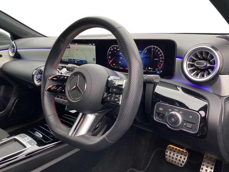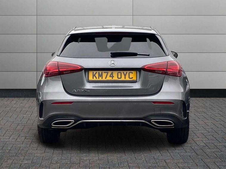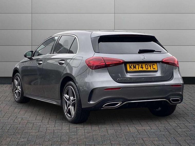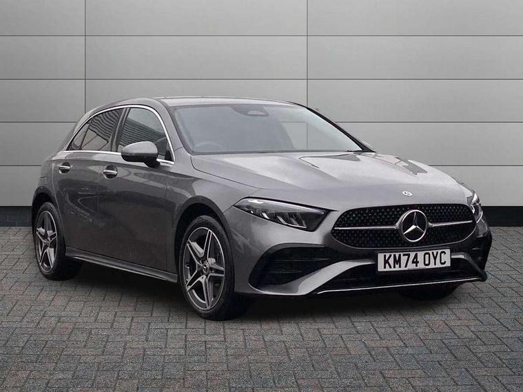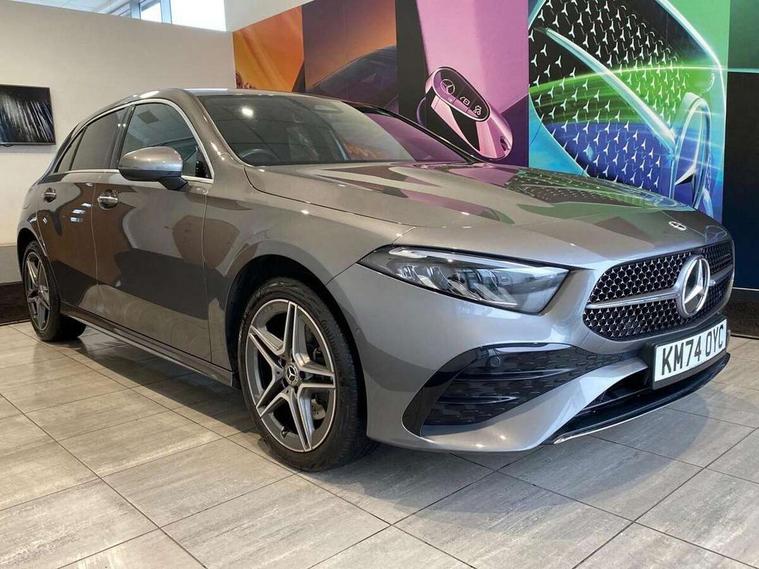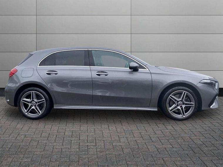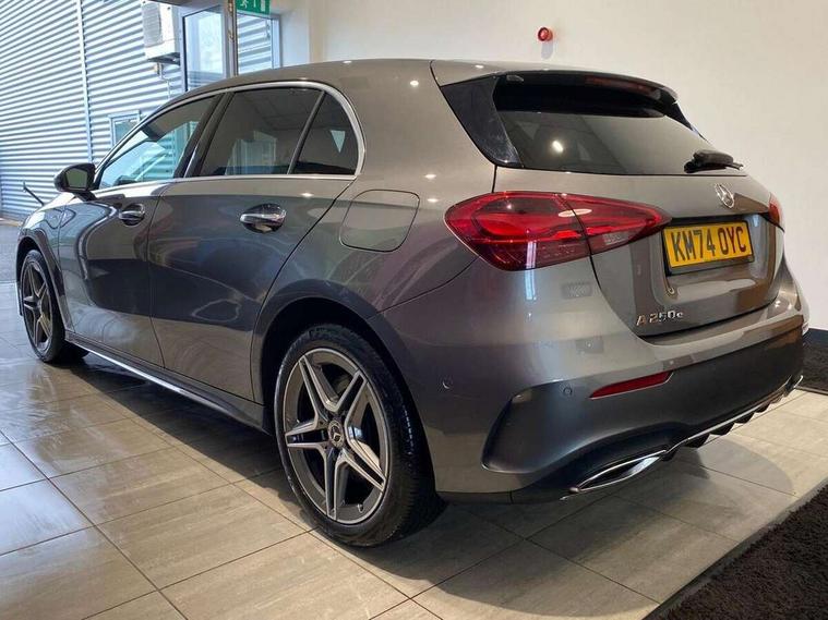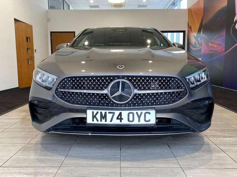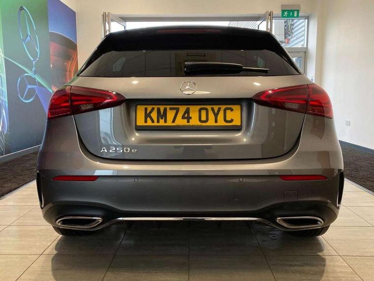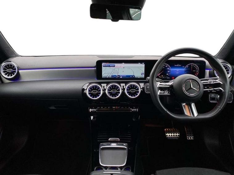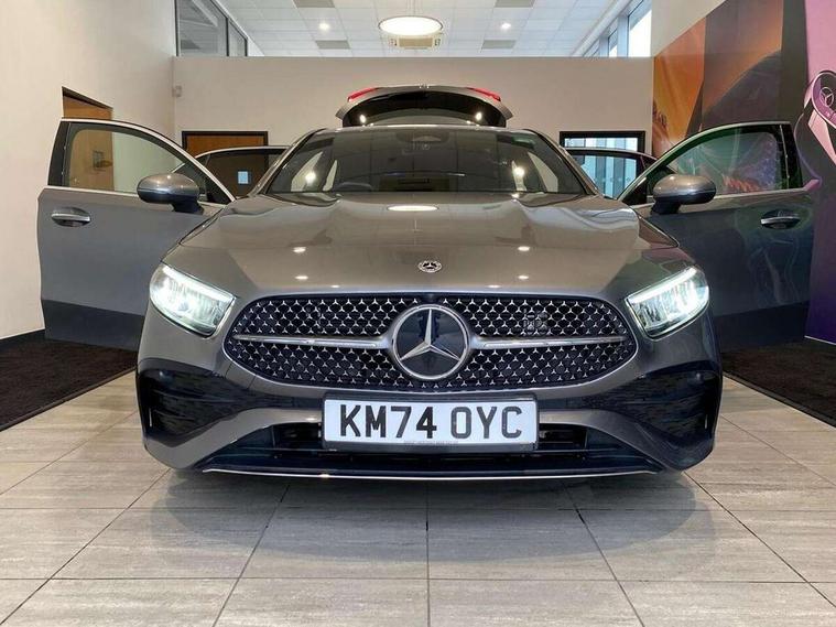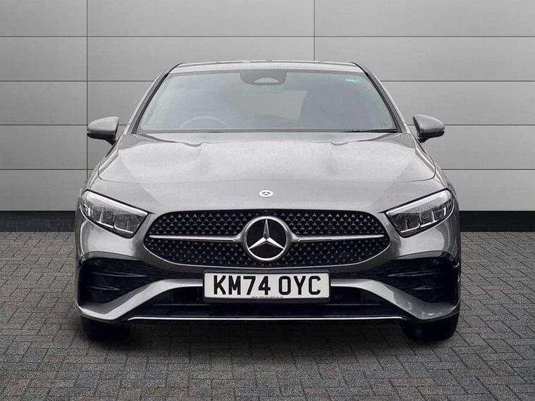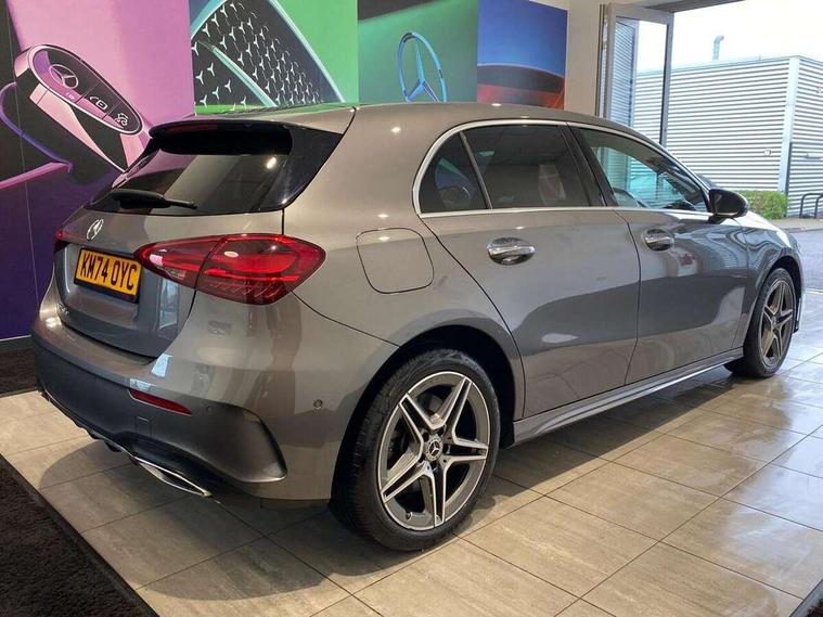 10.25 inch touchscreen central media display, 10.25" Digital instrument cluster display screen, Acoustic ambient protection, Attention assist, Blind spot assist, Brake pad wear indicator warning light, Car wash mode, Cruise control + speed limiter, Direct steering, Direction indicators with lane change function, Dual bluetooth interfaces, DYNAMIC SELECT with a choice of driving modes (ECO, Comfort, Sport and Individual), Easy pack tailgate hands-free access, ECO start/stop function, Engine start/stop button, Fingerprint scanner, Fluid level warning indicator for fuel, oil, coolant and washer fluid, Fluorescent jacket for driver, Hard-disk navigation, Hey Mercedes Voice activation, Lamp failure indicator, Lane keeping system, Mercedes me connect including emergency call system, accident recovery, breakdown and maintenance management, Mercedes me remote services, Outside temperature gauge, Owners manual in English, Pre-installation of private car share, Preinstallation for Mercedes Benz link, Remote and charging services plus, Remote boot closing, Service indicator (ASSYST), Smartphone integration with Apple CarPlay and Android auto, Speed limit assist, Speed sensitive power steering, Tailgate, Trip computer in multifunction display with current consumption indicator, Wireless charging, Charging system - AC charging system rated at 11kW, Charging system - DC charging system rated at 22 kW, Comfort suspension, Mode 2 charging cable for domestic socket with 5m up to 1.8kW, Mode 3 charging cable for wallbox and public charging stations with 4m upto 22 kW, DAB Digital radio, MBUX multimedia system, Mercedes Benz sound system (100 W) with 6 speakers, 4 Electric Front and Rear windows, Adaptive brake lights, AMG body styling - AMG front apron with front splitter and AMG rear apron and visible exhaust tailpipe trim elements, Body colour bumpers, Body colour door handles with chrome inserts, Body colour side skirt, Body coloured door mirrors, Chrome beltline strips, Diamond radiator grille with pins in fine star pattern, Electric adjustable and heated door mirrors with integrated LED side indicators, Exhaust system with 2 visible tailpipe trim elements and rear apron, Headlamp assist automatic headlamp activation, Heat insulating dark tinted rear and rear side windows, Heated glass rear windscreen + timer control, LED High level third brake light, LED High Performance headlamps including integral LED daytime running lamps and adaptive highbeam assist, LED tail lamp, Privacy glass, Radio aerial, Rain sensing windscreen wipers with two sensitivity settings, Rear fog lights, Rear side wing doors, Rear windscreen wiper, Window line trim strip in chrome, 3 seat bench in 2nd row, 3 Spoke flat bottom leather multi function steering wheel with perforated leather in grip area, 4 way lumbar support, 40:20:40 split folding rear seats, Air conditioning - One zone THERMATIC automatic climate control with automatically controlled air distribution, AMG floor mats, Automatic child seat recognition sensor, Black air vents with surround in silver chrome, Black roof lining, Brushed stainless steel sports pedals with rubber studs, Charging socket, Front centre armrest with stowage, Front door sills with Mercedes Benz lettering, Front seat backs luggage nets, Galvanished gear shift paddles on steering wheel, Heated front seats, Height/reach adjustable steering column, Interior lighting - 64 colour Ambient lighting, Interior mirror with reading lamps in black and frameless, Pre-entry climate control, Rear armrest with 2 cupholders, Seat occupancy sensor for front passenger seat, Single front passenger seat, Sports seats with integrated headrests, Stowage compartment in centre console with retractable cover, Sunvisors with illuminated vanity mirrors, Twin front cupholders, Light and sight package - A Class, Mirror package - A Class, Parking pack with 180 degree view - A Class, Seat comfort pack - A Class, USB pack plus - A Class, 3 rear 3 point seatbelts, ABS with Brake Assist, Active bonnet, Active brake assist includes forward collision warning system with autonomous braking, Adaptive brake assist with hold function and hill start assist, Black seatbelts, Bonnet with power domes, Childproof locks manually operated for rear doors and electrically operated for rear power windows, Crash responsive emergency lighting, Driver and passenger head and side airbags, Drivers knee airbag, Dual stage driver/passenger airbags, Electronic parking brake, ESP curve dynamic assist, ESP with ASR, Front and rear seatbelt reminder, ISOFIX and top tether child seat fixing points in two outer rear seats, Perforated front brake discs, Radar based regeneration, Tyre pressure monitoring system, Warning triangle and first aid kit, Window airbags, Alarm system/interior protection/immobiliser, Guard 360 degree vehicle protection, Keyless entry lock/unlock, Keyless Go, Remote central locking and crash sensor with emergency opening function, Light longitudinal grain aluminium trim, 18" AMG 5 twin spoke light alloy wheels, aerodynamically optimised, painted in black with high sheen finish, Summer tyres, Tirefit sealant kit,