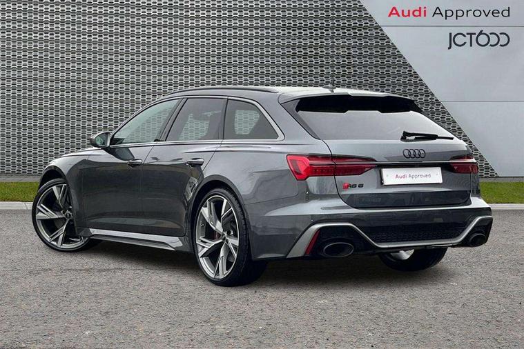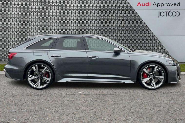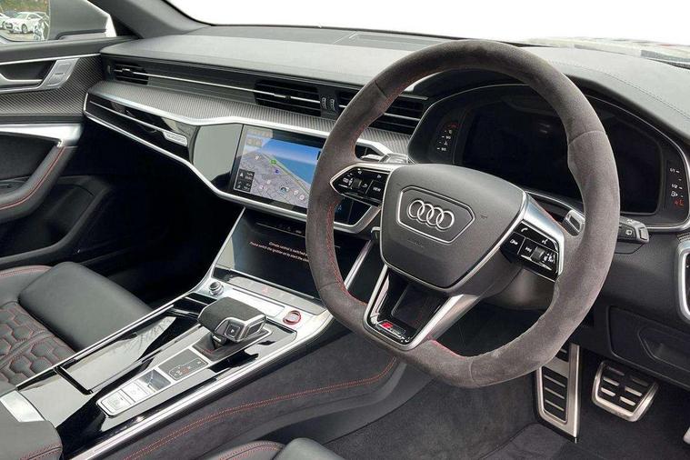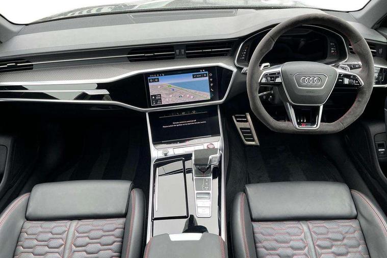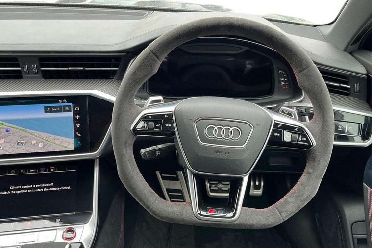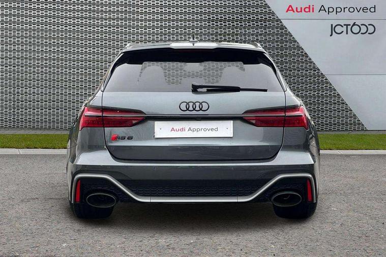 Audi connect safety and service (e-call), Audi connect with Amazon Alexa Integration, Audi drive select with 2 configurable RS modes, Audi smartphone interface with app store includes wireless Apple carplay, Android auto and Amazon alexa integration, Audi virtual cockpit plus with RS specific design and 12.3" display with additional graphic display options, Automatic start/stop system, Bluetooth interface, Convenience key, Dynamic all wheel steering, Head up Display, Lane departure warning system, MMI navigation with MMI touch + twin touch screens 10.1" and 8.6" with haptic and acoustic feedback, Operating buttons in black, glass look with haptic feedback including extended aluminium look, Power operated tailgate, Service interval indicator, Surround view camera system, Voice control system, 48V Mild hybrid technology, 73 litre fuel tank, Increased top speed to 174mph, Quattro sports differential, Audi music interface, Bang & Olufsen 3D Premium Sound System, DAB Digital radio, 3rd brake light, Adaptive windscreen wipers with integrated washer jets, Black audi rings and black RS badges, Electric front/rear windows, Electrically adjustable, heated and folding door mirrors with integrated LED indicators and kerb view function for passenger side, Frameless auto dimming interior rear view mirror, HD Matrix LED headlights with Audi laser light with dynamic light design and dynamic turn signal, Headlight washers, Heat insulating darkened glass in side and rear windows, LED daytime running lights, LED rear combination lamps with dynamic light design and dynamic turn signal, Matt grey mirror housing, Privacy glass with rear/side windows and acoustic glazing side windows, Radiator grille in honeycomb structure, large front air inlets and rear diffuser in gloss black, Rain and light sensors, Rear side wing doors, Rear wiper, RS front bumper with air inlets on both side, RS rear spoiler in body colour, RS sports exhaust system with high gloss black oval tailpipe trims, Towbar preparation, 3 seat bench in 2nd row, 3 spoke RS flat bottom alcantara leather multifunction steering wheel with shift paddles, heated funtion, contrast stitching, RS mode button/RS emblem, 4 way electric lumbar support for driver and front passenger, 4 zone deluxe automatic climate control, Audi phone box light, Electric steering wheel adjustment, Electrically adjustable front seats with driver memory, Entry LED with RS Performance projection (Audi Beam) in front and rear, Front and rear headrests, Front centre armrest, Front seat ventilation, Heated front seats, Illuminated front and rear door sill trims with aluminium inlays and RS6 logo, ISOFIX and Top Tether child seat mounting for the outer rear seats, ISOFIX child seat mounting and Top Tether with front passenger airbag deactivation, RS sports seat plus, Single passenger seat, Stainless steel pedals and foot rest, Air quality pack - RS6, Ambient lighting pack plus - RS6, Matt grey exterior styling pack - RS6, Park assist pack with park assist plus - RS6, Storage pack - RS6, 3 point rear seatbelts, Audi pre sense basic, Audi pre-sense front, Curtain Airbag System, Direct tyre pressure monitoring system, EBD - Electronic brakeforce distribution, Electromechanical parking brake, Electronic Stability Control (ESC) including ABS, ASR and EDL, Extended pedestrian protection measures, Manual child lock in rear doors, Warning triangle and first aid kit, Anti theft alarm with tow away protection, Immobiliser, Keyless Go, Remote central locking, Tyre repair kit,