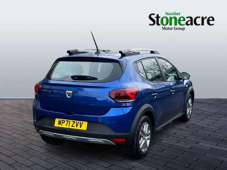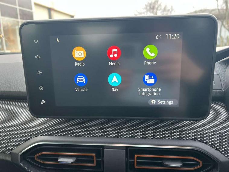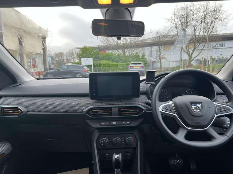 3.5" TFT instrument panel with on-board computer, Cruise control with speed limiter, eCall emergency call system, Eco mode, Electric power assisted steering, Rear parking sensors, Rev counter, Reversing camera, Stop/start system, 8" Media display - DAB radio, smartphone replication, bluetooth, 4 speakers, Apple CarPlay and Android Auto, USB connection for data transfer and charging, USB socket, 3 speed windscreen wipers, Auto lighting, Automatic wipers, Body colour door handles, Body colour door mirrors, Body coloured bumpers, Chrome longitudinal roof bars, Chrome radiator grille, Electrically adjustable and heated door mirrors, Front fog lights, Heated rear window, High level third brake light, LED automatic daytime running lights, LED Y-shape Dacia signature lighting, Modular roof bars, One touch electric front windows, Rear electric windows, Rear wash/wipe, Stepway inscription on radiator grille and roof bars, Tinted windows, 1/3 to 2/3 split folding rear seats, 12 volt front socket, 12 volt rear socket, 3 height adjustable rear headrests, Driver + passenger vanity mirrors, Fabric upholstery, Fixed smartphone holder on dashboard, Front armrest, Height adjustable driver seat, Height adjustable front headrests, Height/depth adjustable steering wheel, Isofix points for child seats in both outer rear seats, Manual air conditioning, Satin chrome interior door handles, Satin Chrome/Copper orange air vents, Soft feel steering wheel, Steering wheel controls, 3x3 point rear seatbelts, ABS and Emergency brake assist, Automatic emergency braking system, Child locks on rear doors, Door open warning, Driver airbag, ESC (Electronic Stability Control), ESP + Hill Start Assist, Front curtain airbags, Front seatbelt pretensioners, Front side airbags, Height adjustable front seatbelts, Passenger airbag, Seatbelt reminder for driver and front passenger, Tyre pressure monitor, Automatic central locking, Immobiliser, Keyless entry, Remote central locking, Decopart on instrument panel and door with textile, 16" Flex wheels with full wheel cap,