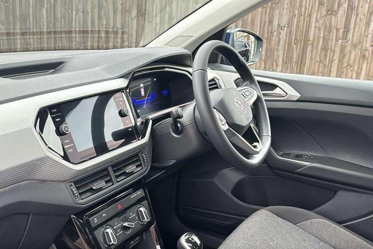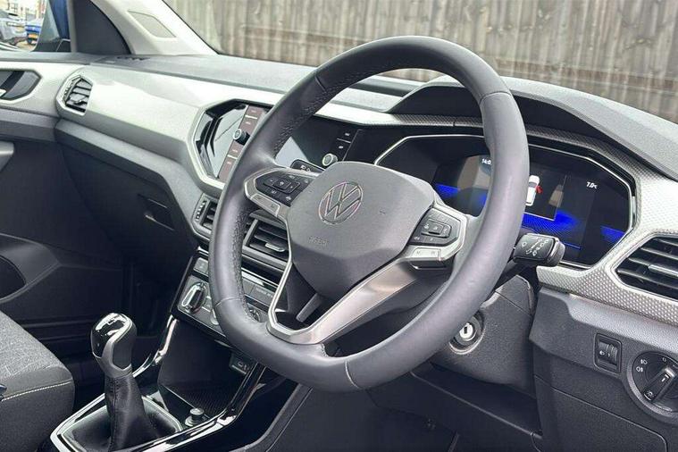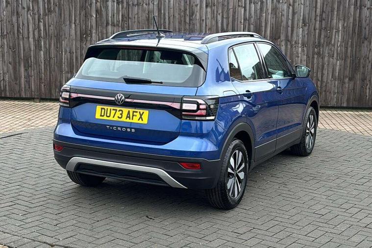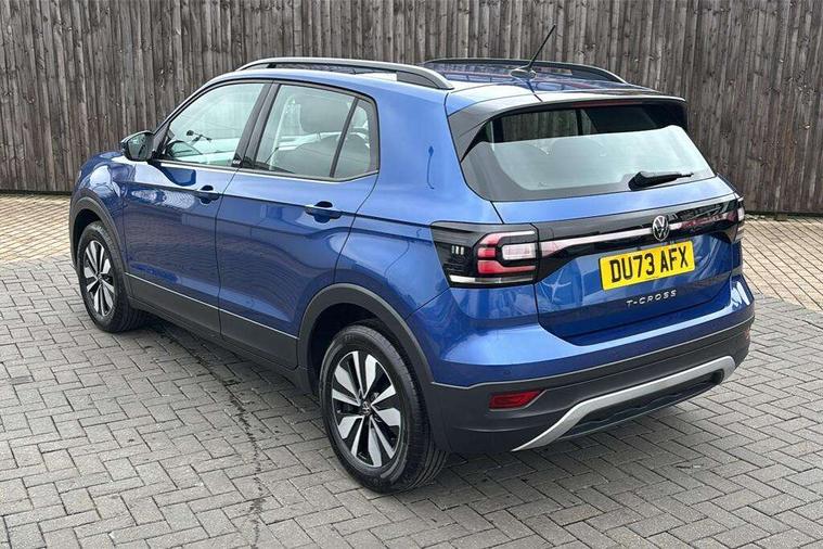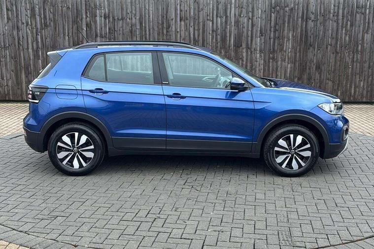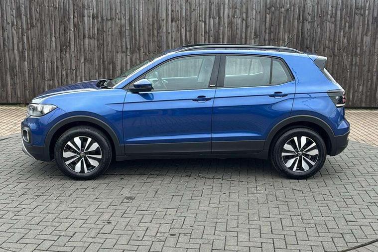 'Lights On' Reminder warning buzzer, Adaptive cruise control including front assist, forward collision warning, autonomous emergency braking, speed limiter, Blind spot monitoring, Bluetooth telephone and audio connection for compatible devices, Car information display, Driver alert system, E-Sim card for online connectivity, eCall emergency call system, Front and rear parking sensors, Lane assist, Low washer fluid warning light, Multifunction computer with visual gear change recommendation for fuel consumption, Operating permit alteration, Power assisted speed sensitive steering, Speedo, rev counter, electronic odometer, trip, service interval display, exterior temperature and fuel gauge, Tailgate, Warning sound and light for doors and tailgate open, Warning sound and light for front seatbelts unfastened, We Connect Go Dongle, Wireless Car net app connect with Apple CarPlay, combined functionality of Apple CarPlay/Android Auto and MirrorLink, Battery regeneration during braking, Misfuel prevention device, Start-stop system with battery regeneration (recuperation - energy recovery during braking), 2 USB C ports in front, 2 USB charging sockets on the centre console in the rear charging capacity upto 45W, DAB Digital radio receiver, Diversity antenna for FM reception, Multi device interface (MDI) with USB connection, Music playback - MP3, WMA and AAC files, Premium USB cable for Apple or Android smartphone compatibility, Radio, Simultaneous pairing of 2 compatible mobile devices, Title and cover art display, Automatic hazard lights activation under emergency braking, Black roof rails, Body colour door handles, Body colour door mirrors with integrated indicators, Body coloured bumpers, Dusk sensor + automatic driving lights, Electrically foldable, adjustable and heated door mirrors with reverse activated kerb view adjustment on passenger's side, Front and rear electric windows, Front fog lights with static cornering function, Galvanised body, Heat insulating darkened glass in side and rear windows, LED third brake light, Lower door sills and door pillars in black, Radiator grille with chrome trim and chrome bezel front fog lamp, Rear fog light on one side, reversing light on both sides, Rear lights incorporating LED technology, Rear side wing doors, Rear window aerial, Rear windscreen washer and wiper with interval delay, Reflectors in all doors, Scuff plates, Tailgate with integrated roof spoiler, Windscreen wipers/ intermittent wipe + 4 position delay, Without dynamic road sign display, 12V Accessory socket in centre console, 2 Front and rear reading lights incorporating LED technology, 3 rear head restraints and 3 rear three point seat belts with ECE label, 3 seat bench in 2nd row, 60/40 split folding rear seat backrest, Ambient lighting and sourround lighting, Brushed stainless steel pedals, Child seat anchor for child seat system i-Size, 2x top tether and child seat anchor in front on front passenger side, Decorative strips doors in tomension silver leaf, Door and side trim panel, Drawer under drivers seat, Dust and pollen filter, Fabric upholstery, Front + rear carpet mats, Front centre armrest with storage compartment, Front seat back storage pockets, Front seats with adjustable lumbar support, Glovebox, Heating and fresh air system with 4 stage blower, Height/reach adjust steering wheel, Instrument lighting white adjustable panel illumination, LED interior light with switch off delay and dimmer, Luggage compartment cover, Luggage compartment lighting, Manual air conditioning, Manual front seats with height adjustment, MOVE badging on B-Pillar and door sill, Single front passenger seat, Storage compartment in drivers and front passengers door, Sun visors without mirror with ticket pocket on driver side, on front passenger side with airbag label on sun visor a.B-pillar, Three spoke multi-function leather trimmed steering wheel and gearknob, Unsplit sliding rear seat bench, Chrome pack - T-cross, 3-point seat belts in front with electric tensioner + height adjustment, Anti-lock Braking System (ABS) with Hydraulic Brake Assist (HBA), Automatic post collision braking system, Disc brakes in front, Driver and front passenger safety-optimised head restraints, Drivers and Front Passengers airbags with front passengers airbag deactivation switch, Drum brakes in rear, ESC with EDL, ASR, EDTC and trailer stabilisation function, Extended and predictive pedestrian/cyclist protection, Front and rear curtain airbags, Front seat side impact airbags, Hill start assist, Pre crash preventive occupant protection, Proactive passenger protection system in combination with front assist, Rear door child safety locks, Rigid safety cell with front and rear crumple zones, Single torn horn, Tyre pressure loss indicator, Volkswagen roadside assistance, Alarm with interior protection and deactivation via infotainment system, Electronic engine immobiliser, Remote tailgate unlocking using key fob, 16" Zurich alloy wheels + anti theft wheel bolts, Breakdown kit,