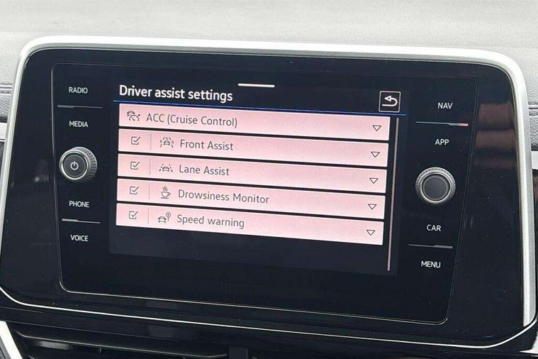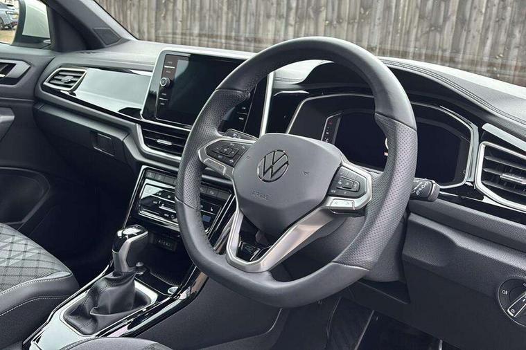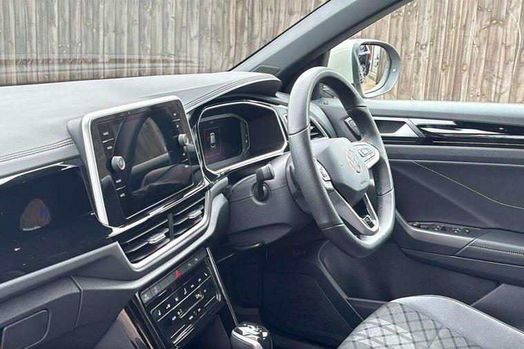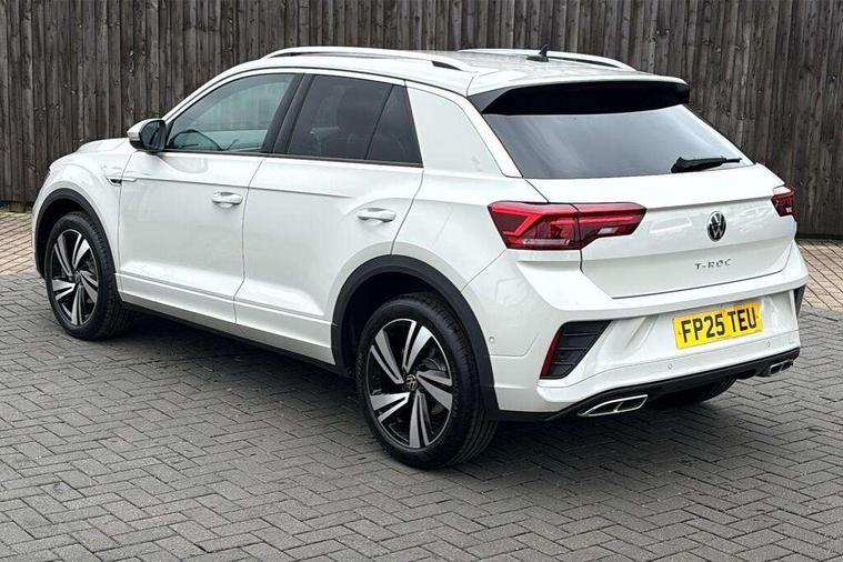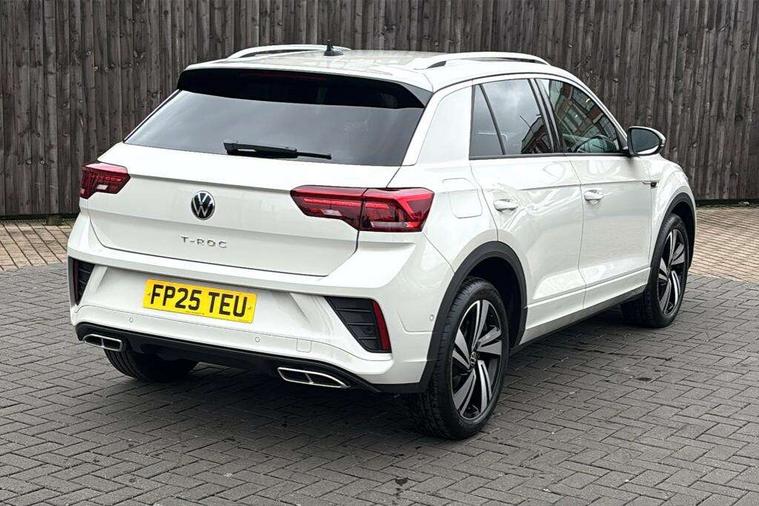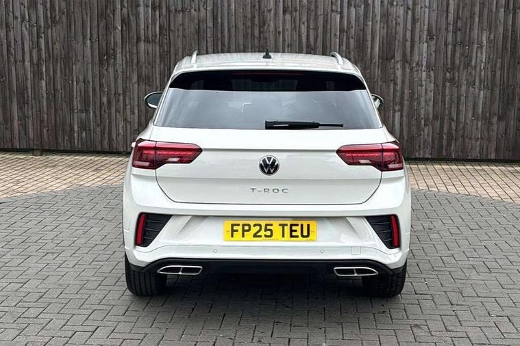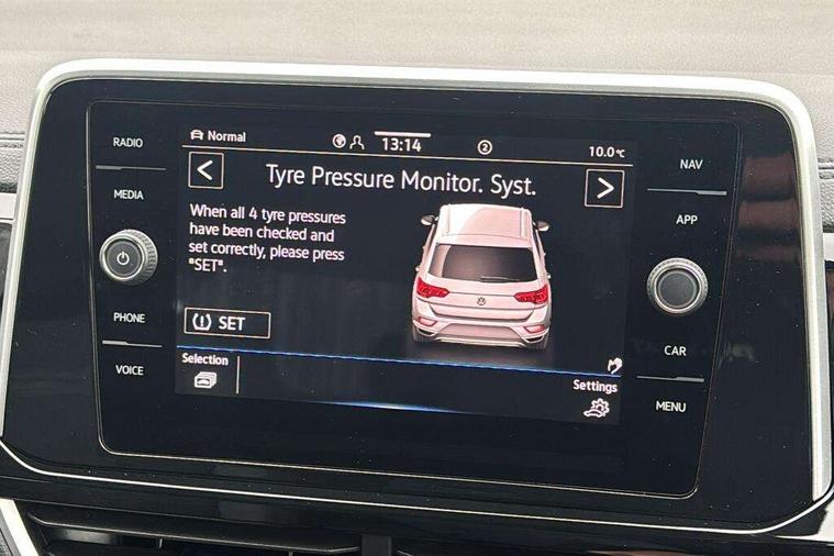 10.25" Digital cockpit pro, Advanced driver attention and drowsiness monitor, Emergency call service, Lane keeping system Lane Assist, Mobile phone interface, Modified key software - reduce switch off time for key status change to Long no motion, Online services, Park assist including front and rear parking sensors, Service interval indicator, Tailgate/trunk lid release from outside, Think blue trainer driver tips and journey analysis, Warning sound and light for front seatbelts unfastened, Wireless app connect, Battery regeneration during braking, Start/stop function with battery regeneration, DAB Digital radio, Diversity antenna for FM reception, Front and rear 6 speakers, Music playback - MP3, WMA and AAC files, Premium USB cable in choice of either Apple or Android smartphone compatibility, SD card slot, Simultaneous pairing of 2 compatible mobile devices, Title and cover art display, We Connect and We Connect Plus functionality, Auto dimming interior rear view mirror, Automatic hazard lights activation under emergency braking, Automatic headlight control with LED separate daytime running lights with coming/leaving home function, Body coloured exterior mirror housings and door handles, Electrically adjustable and heated door mirrors, Extended roof spoiler, Exterior mirrors aspherical on driver side, convex on front passenger side, External USB type C socket and charging sockets, Front windscreen wiper with intermittent wipe and 4 position delay, Heated rear window, LED 3rd brake light, LED rear combination lamps, LED rear number plate lights, Power windows with comfort operation and circuit breaker, Privacy glass for rear side windows and rear window, R-Line design body coloured bumpers, Rain sensor, Rear exhaust tailpipe, Rear fog light on one side and reversing lights on both sides, Rear side wing doors, Rear wash/wipe with intermittent wipe setting, Remote electrically foldable door mirrors, puddle lights and reverse activated passenger's door mirror, 12V power socket in centre console, 3 rear head restraints, 3 seat bench in 2nd row, 4 load lashing points in luggage compartment, Air care climatronic air conditoning system with active combination filter and 2-zone temperature control, Black roof lining, Chrome plated decorative trims, Chrome plated radiator grille inserts, air vent surrounds and light switch surrounds, Door and side trim panel with leatherette insert, Front + rear carpet mats, Front centre armrest, Front cupholders x 2, Front footwell illumination, Front reading light, Front scuff plates with R Line logo, Front seat back storage pockets, Glove compartment door with light, Instrument lighting, white adjustable panel illumination, Interior ambient lighting and surround lighting, Interior light delay, Isofix child seat preparation, Leather gearshift handle, Load-through provision with cup holder when folded down ('Unsplit rear seat bench, split folding backrest, with centre armrest), Luggage compartment lighting, Single front passenger seat, Stainless steel pedals, Storage compartment in left and right luggage area, Storage compartment in rear doors, Storage compartments in driver and front passenger doors, Sunvisors with illuminated vanity mirrors, Variable boot floor, height adjustable and removable, Driver assistance pack without proactive passenger protection - T-Roc, 3 point height adj front seatbelts + pretensioners, 3 point seatbelts in outer rear with ECE label, ABS, Child locks on rear doors, City emergency braking and pedestrian monitoring, Driver and front passenger airbag with front passenger airbag deactivation, Driver and front passenger safety-optimised head restraints, Drivers seatbelt reminder, Electronic parking brake, Electronic Stability Control (ESC) inc EDL (Electronic Differential Lock) and ASR (Traction Control), Front and rear passengers curtain airbag system including front side airbags, Hill start assist, Predictive pedestrian protection, Rear disc brakes, Two tone horn, Tyre pressure loss indicator, Volkswagen roadside assistance, Piano black decorative inserts in dashboard and front door trim panels, Trims for alloy wheels,