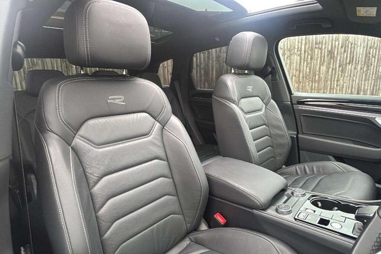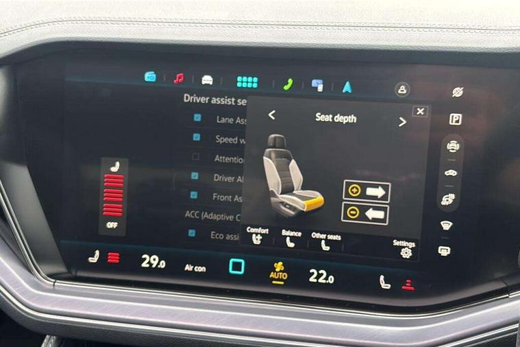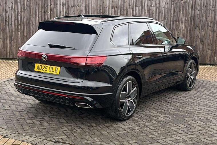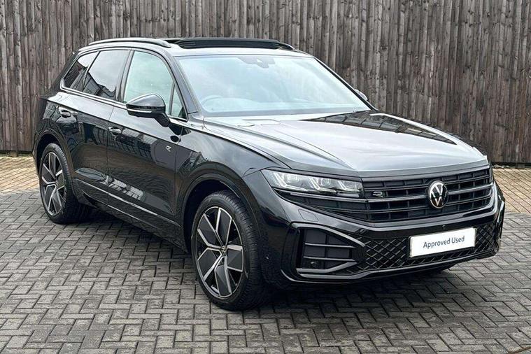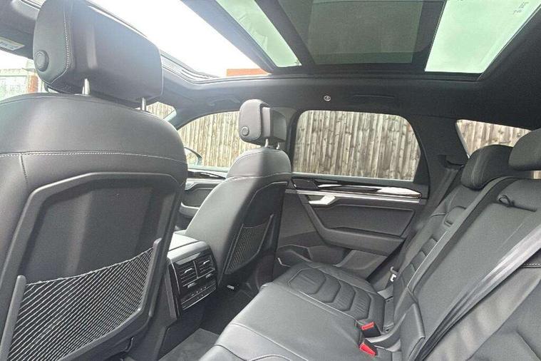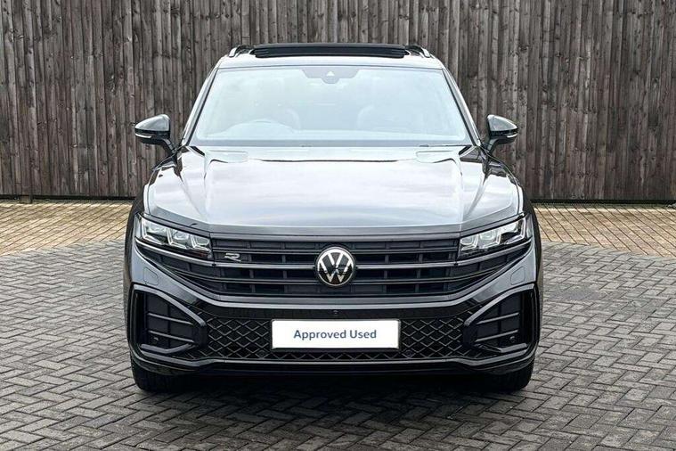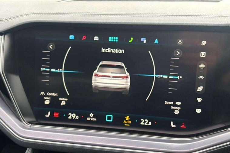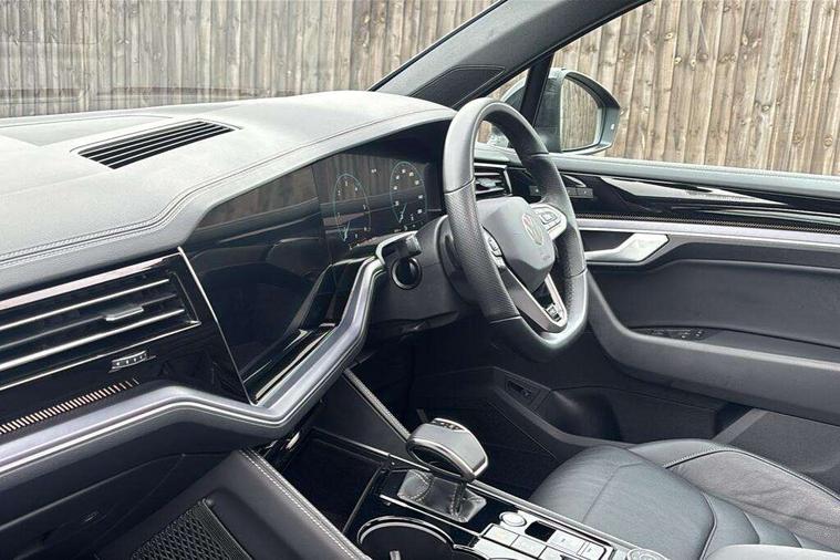 15" Screen Top infotainment system Premium (MIB3), Adaptive cruise control, Advanced driver attention and drowsiness monitor, Driver profile selection, Dynamic road sign display, E-Sim card for online connectivity, eCall emergency system, Innovision cockpit, Intelligent park assist, Mobile phone interface with inductive charging, Multi-colour Active Info display, Park Assist - Sensor controlled steering aid to assist parallel or bay parking, PAS, Warning signal and warning light for front and rear seatbelts not fastened, Wireless app connect, Adaptive chassis control, DAB Digital radio, Diversity antenna for AM/ FM reception, We Connect and We Connect Plus functionality, Automatic coming/leaving home lighting function, Automatic headlights, Black door mirrors, Black style comfort bumpers, Dynamic headlight range control with dynamic cornering light, Electric front tilt/slide panoramic sunroof and fixed rear sunroof, Electrically power adjustable, heated, folding, auto dimming, front passenger exterior door mirror lowering function, External USB type C socket and charging sockets, Gloss black roof rails, HD LED Matrix beam plus digital headlight projection with variable light distribution, Headlight washers, Highway light, LED 3rd brake light, LED daytime running lights, LED rear combination lamp with variable lighting functions and special styling, Poor weather light, Rain sensor, Rear exhaust tailpipe, Rear fog light with back up light on both sides, Rear light bar and illuminated logo, Rear side wing doors, Rear wiper, Stainless steel door sill protection, 12V socket in centre console, 3 rear headrests, 3 seat bench in 2nd row, 4 zone climate control, Airbag label on sun visor and B-pillar, Brushed stainless steel pedals, Double sun visors with illuminated vanity mirrors, Front + rear carpet mats, Front centre armrest, Leather wrapped multifunction sports steering wheel, heated, with touch control and shift paddles, Mechanical rear seat release, Power adjustable lumbar support in front, Power seats in front, right side with memory features and seat cushion depth adjustment, Rear seat backrest and split folding with center armrest, Single front passenger seat, Memory pack plus - Touareg, 3 point seatbelts, outer rear with ECE lable, ABS, Child locks on rear doors, Curtain airbags, Driver and front passenger safety-optimised head restraints, Driver/Front Passenger airbags, Extended pedestrian protection measures, Front assist, Front seat side impact airbags, Generative braking with start and stop system, Height adjustable 3 point front seatbelts with pre tensioners, Passenger airbag deactivate switch, Three 3 point rear seatbelts, Two tone horn, Tyre pressure loss indicator, Warning triangle and first aid kit, Alarm system with interior protection, Easy open and close sensor controlled luggage compartment opening and closing with remote unlocking, Keyless Access Keyless locking and starting system with SAFELOCK, Aluminium decorative inserts, Black decorative trims, Gloss black decorative inserts in centre console, Tool kit,