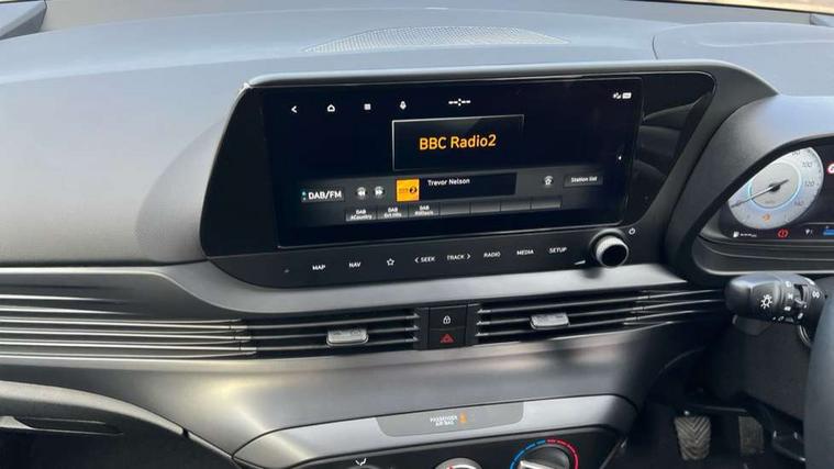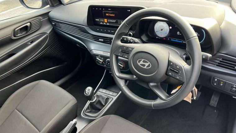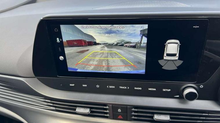10.25" touchscreen + navigation, 2nd Gen eCall, 8" Touchscreen DAB Radio with android auto and apple carplay, Cruise control + speed limiter, Forward collision assist with car, pedestrian and cycle detection, Intelligent speed assist, Intelligent speed limit warning, Lane follow assist, Lane keep assist, PAS, Rear parking sensor, Rear view camera with dynamic guidelines, USB C port front, Automatic headlights with dusk sensor, Electric adjustable heated door mirrors, Front grille mesh pattern design, High beam assist, LED 3rd brake light, LED daytime running lights, LED Headlights, LED taillights, Rain sensor, Rear side wing doors, Rear wiper, Repositioned flat metal hyundai emblem, Trailer wiring, 3 seat bench in 2nd row, Adjustable head restraints, Air conditioning, Cloth upholstery, Floor mats, Leather steering wheel, Single front passenger seat, 3x3 point rear seatbelts, ABS with front and rear diagonally split, Autonomous emergency braking, Child locks on rear doors, Front ventilated disc brakes, Rear solid disc brakes, Tyre pressure monitoring system, 16" alloy wheels, Tyre repair kit,