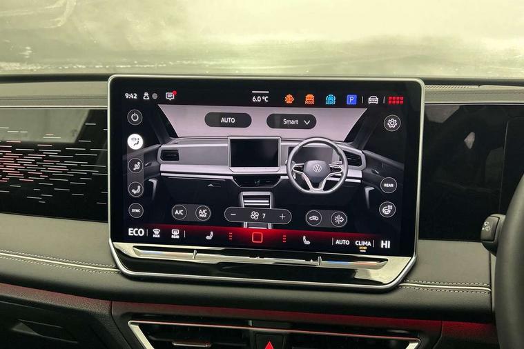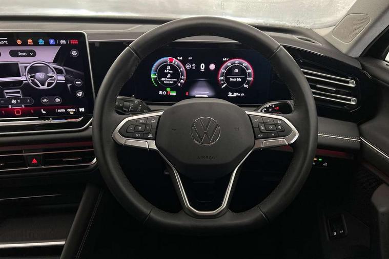Adaptive cruise control (ACC), Advanced driver attention and drowsiness monitor, Bluetooth mobile phone interface, Car2X technology, Comfort drive travel assist, lane keeping system, lane assist and emergency assist, Digital Cockpit Pro - 10.25" high resolution dash display screen with customisable menus and information, Dynamic road sign display, E-Sim card for online connectivity, eCall emergency call service, Front Assist - Autonomous emergency braking with pedestrian and cyclist monitoring, Lane change system, Side assist, Rear traffic alert and Exit warning system, Multifunction front facing camera, Oncoming vehicle braking when turning including swerve support, Park assist pro with park distance control (Remote park assist), Power assisted steering with speed sensitive, Start/stop system with regenerative braking, Warning signal and warning light for front and rear seatbelts not fastened, Wireless App-Connect, Adaptive chassis control DCC pro includes driving mode selection, Charging cable Mode 3 Type 2 / 3 (16A), Front wheel drive, Rear shock absorption, Digital radio reception (DAB), Diversity antenna for FM reception, Ambient lighting with logo projection, Auto dimming interior rear view mirror, Automatic headlight control system, Body colored bumpers in R-Line style, Body coloured door handles, Body-coloured exterior mirror housings, Chrome moldings on the side windows, Coming/leaving home lighting function, Heat insulating glass in side and rear windows, Heated rear window, High level 3rd brake light, Illuminated door handle recesses, Illuminated lightline between headlamps, Laminated safety glass from B-pillar backwards 90% tinted, Laminated safety glass winshield, Rain sensor windscreen wipers, Rear fog light on one side, reversing light on both sides, Rear side wing doors, Rear wiper, Silver roof rails, 12V outlet in center console rear and in luggage compartment, 12V socket in centre console, 3 bench rear seats in 2nd row, Air care climatronic 3 zone air conditioning system with rear air conditioning control panel, Carpet mats, front and rear, Centre console with illuminated storage compartment with sliding cover and two drinks holders, Ceramique headlining, Chrome elements on the mirror switch and power window switches and door pulls, Door and side trim panel with leatherette insert, Door sill protectors, Front centre armrest, Interior ambient lighting with 30 colour options, ISOFIX anchors for child seats on outer rear seats and front passenger seat. Compatible with i-Size, Mechanical rear seat release, Power adjustable lumbar support in front, Rear bench seat, split folding, longitudinally movable and folding with load-through hatch and centre armrest, Safety optimised front head restraints, Single front passenger seat, Sports comfort seats in front, Sun visors with illuminated vanity mirrors, Three rear head restraints, Variable luggage compartment floor, Comfort package with park assist plus and Safelock - Tiguan, Driver assistance package - Tiguan, 3 point seat belt for centre rear seats, 3 Point seat belts in front with pretensioners, 3 point seatbelts in outer rear with ECE label, Driver and front passenger airbag with front passenger airbag deactivation, Electronic parking brake with auto hold, Front and rear curtain airbags, Front and rear side airbags, Front centre airbag, Front disc brakes, Manual child proof rear door locks, Rear disc brakes, Two tone horn, Warning triangle, Anti theft wheel bolts, Decorative inserts Cross in dash and front door panels, Interior door handle in matte chrome, Soul instrument panel, Airstop tyres, Tool kit for tyre mobility set, Tyre mobility kit including compressor and sealing foam,