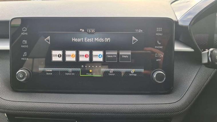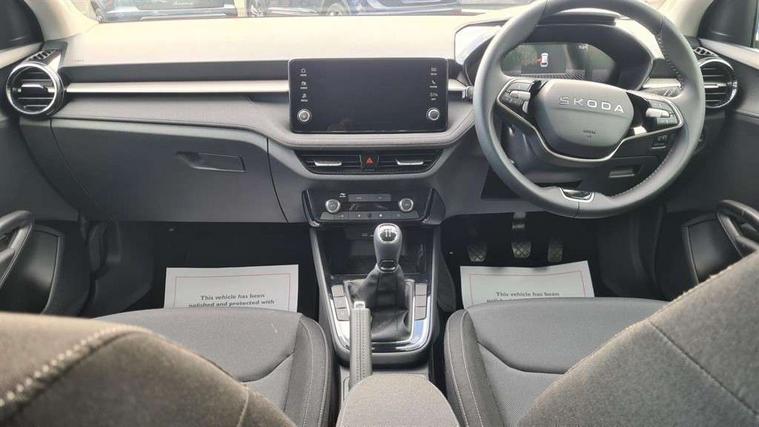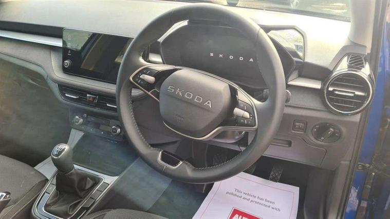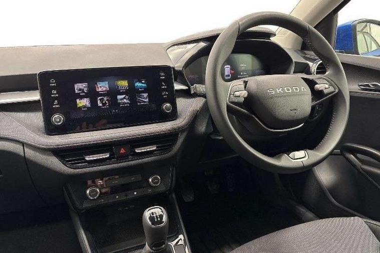 8" Digital instrument display, Advanced driver attention and drowsiness monitor, Bluetooth connection, Electromechanical power steering, Exterior temperature gauge, Service interval indicator, Traffic sign recognition, Wireless SmartLink for Apple CarPlay and Android Auto, 6 Speakers (4 in front and 2 in rear), 8.25" Skoda infotainment touchscreen display, Auxiliary socket for external MP3 player, DAB digital radio reception, Auto dimming rear view mirror, Body colour door mirrors, Body coloured bumpers, Door mirror integrated indicators, Front and rear electric windows, Front window wiper intermittent control, Headlight range control - Automatic, Ice scraper in fuel cap, LED 3rd brake light, LED daytime running lights with coming and leaving home feature, LED rear lights, Rear LED fog light, Rear side wing doors, Rear window wiper with washing nozzles, Roof mounted spoiler, SKODA tailgate lettering in chrome, Unique dark chrome design logo on alloy wheels, 2 reading lights in front and 2 reading lights in rear, 3 rear headrests, Backrest split and folding, Central console with removable cup holder and storage box, Chrome handbrake release button, Dual zone air conditioning with climatronic electronic control, Fabric upholstery, Front centre armrest, Gearshift knob/handle in leather, Grain satin black interior door handles, Hand brake lever handle in leather, Height adjustable front headrests, Height adjustable front seats, Height adjustable steering wheel, ISOFIX and TopTether anchorage points to the outer rear seats, ISOFIX and TopTether on the front passenger seat, Luggage compartment lighting, Manually adjustable lumbar support in front seats, Pollen filter, Rear seat bench unsplit, Single front passenger seat, Skoda lettering on steering wheel, Storm grey headlining, Sun visors with mirror and airbag label on passenger side, Textile floor mats, Ticket holder, Umbrella in drivers door, 3-point height adjustable front seats belts with pretensioner and force limiter, Automatic warning lights in case of crash, Driver and passengers airbag with switch off function, e-Call+, ESC including ABS, MSR, ASR, EDS, HBA and XDS, Front and rear seat belt warning, FRONT ASSIST (AEB City and AEB Inter Urban), Front side airbags, Head airbags, One tone horn, Pedestrian protection, Three rear 3-points safety seat belts with pretensioner and force limiter including stop function for outer rear seat belts, Tyre pressure monitoring system, Anti-theft alarm system including immobiliser, interior monitoring, backup horn, and towing protection, Central locking with radio remote control, interior controls, SAFE function and 2 foldable keys, Black painted air vents, Grain satin black central console cover, Metallic grey upper decorative trim, Satin black door and side trim panel in front, Textile Kota grey lower decorative inserts, Anti-theft wheel bolts protection, Super-low rolling resistance tyres,