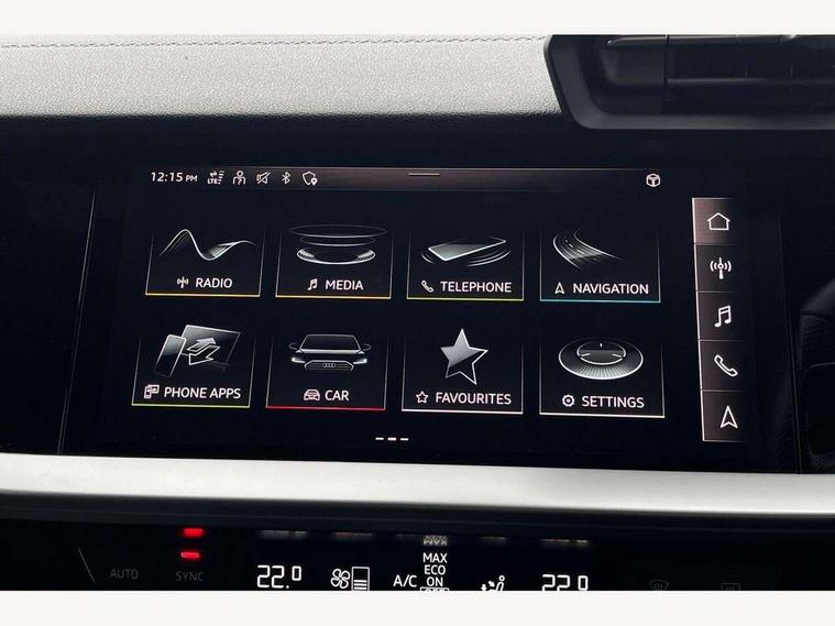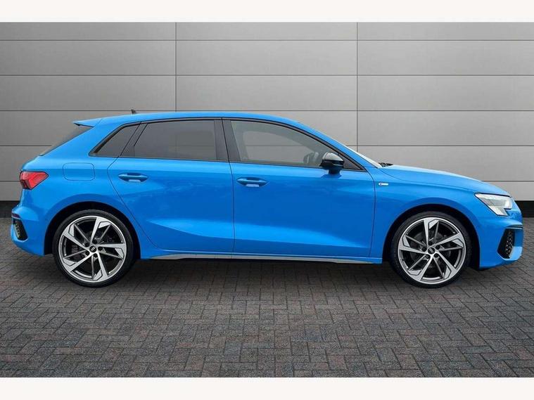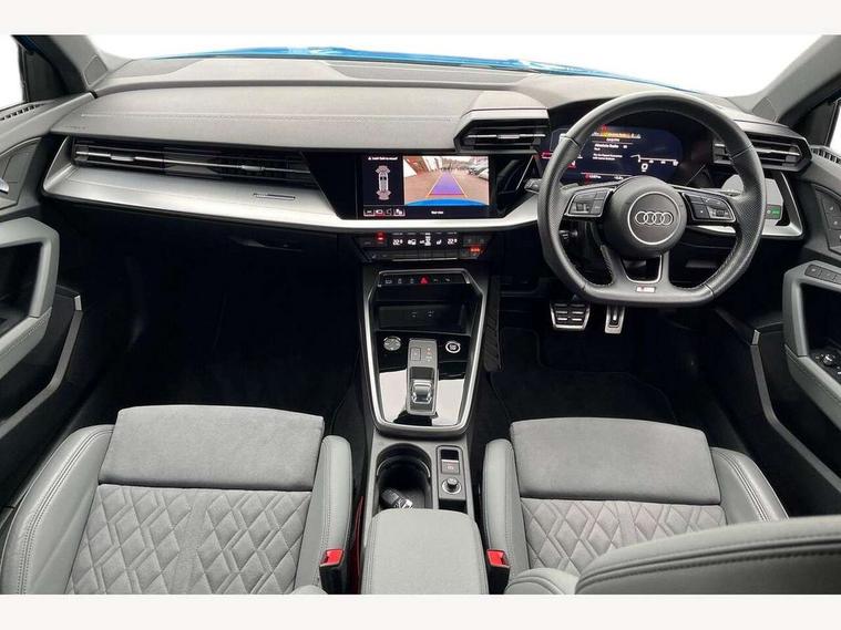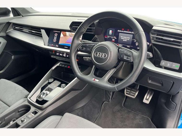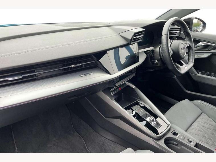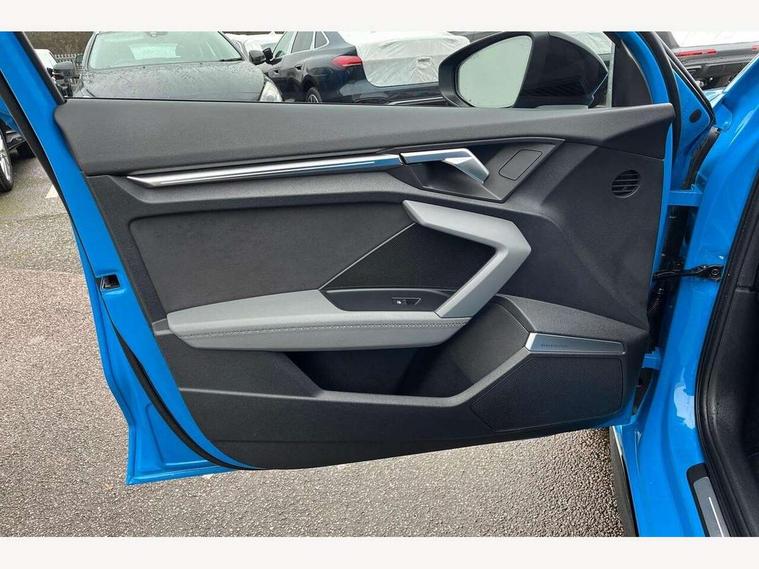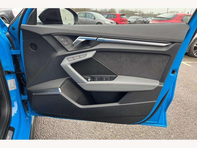 Audi connect emergency call and service, Audi drive select (Auto, Comfort, Dynamic, Efficiency and Individual), Audi smartphone interface, Audi virtual cockpit plus - 12.3" full HD resolution dynamic digital instrument cluster, Automatic start/stop system with recuperation, Bluetooth interface, Collision avoidance assistant, Electromechanical power speed sensitive steering, Lane departure warning system, MMI Navigation Plus with high resolution 10.1" colour touch screen display, Service indicator, Trip computer, Voice control system with natural language interaction, Sports suspension, 2xUSB-C connection with data and charging functions, 6 passive loudspeakers, DAB Digital radio, 3rd brake light, Acoustic glass windscreen, Audi matrix LED headlights with LED rear lights + dynamic front and rear indicators, Auto dimming frameless rear view mirror, Body colour front spoiler blade, Electrically adj heated/folding + automatically dimming exterior mirrors + automatic kerb side function for passenger side exterior mirror, Front electric windows, Headlight washers, Illuminated aluminium inserts front door sills with S logo, Integrated LED indicators in door mirrors, LED daytime running lights, Light and rain sensors, Privacy glass - dark tinted rear window, rear door and side windows, Rear diffuser in grained matt black, Rear electric windows, Rear side air outlets in grained matt black, Rear wiper, S roof spoiler, 12V socket and storage compartment in front centre console, 4 way electrically adjustable lumbar support for driver and front passenger, 40/20/40 split folding rear seat bench with cupholder, Black cloth headlining, Dual zone electronic climate control, Electrically adjustable front seats for driver's side, Front and rear centre armrest in leather, Front and rear headrests, Front/rear floor mats, Heated front seats, Height and reach adjustable steering wheel, Interior lighting - glove compartment light and right hand side, Luggage compartment floor covering, Seat side bolsters, Stainless steel pedals and front footrest in black, Aluminium interior elements pack - A3 Sportback, Black styling pack - A3 Sportback, Dinamica microfibre/mono.pur 550 artificial leather pack - A3 Sportback, Extended ambient lighting pack - A3 Sportback, LED interior lighting pack - A3 Sportback Edition 1/Vorsprung, 3x3 point rear seat belts, Driver and front passenger airbag with passenger airbag deactivation, Electronic Stabilisation Control (ESC) including ABS, ASR and EDL, First aid kit with warning triangle and 2 safety vests, Front side airbags with head airbags and interaction airbag, Hill hold assist, Pre-sense front with pedestrian and cyclist detection, Seatbelt monitoring, Tyre pressure loss indicator, Anti theft alarm, Anti-theft wheel bolts, Electronically operated child lock, Immobiliser, Remote control central locking, Accent surfaces in the dashboard and centre console in platinum grey silk effect paint finish, Dark spectrum aluminium inlays, 19" 5 arm trapezoid design alloy wheels in titanium matt grey with diamond cut finish,