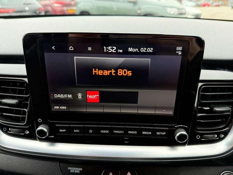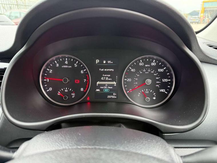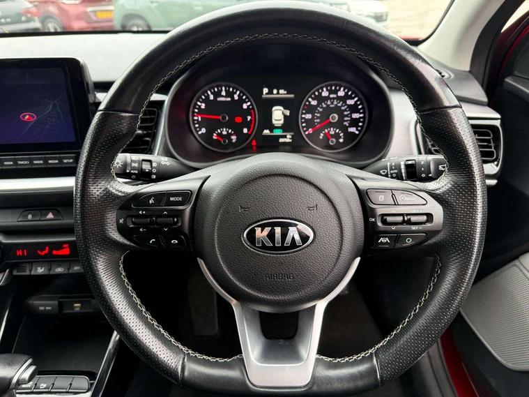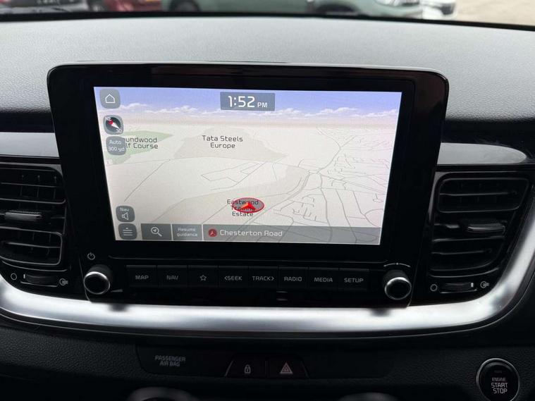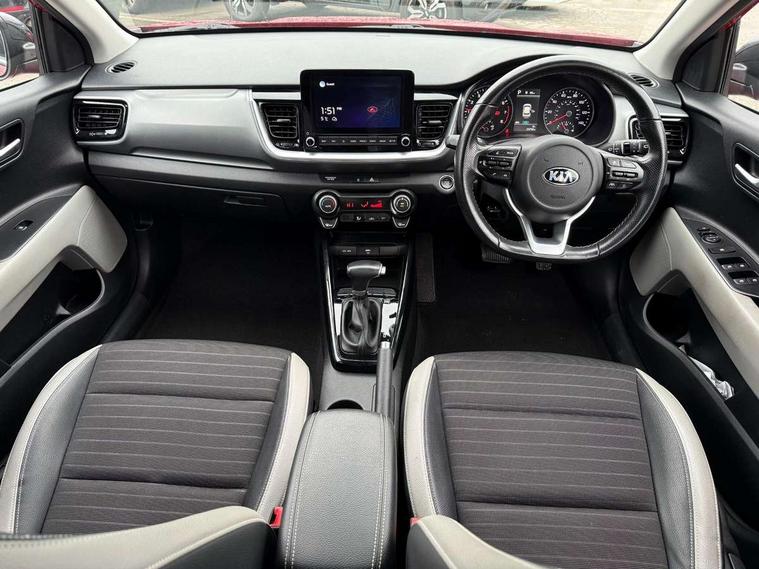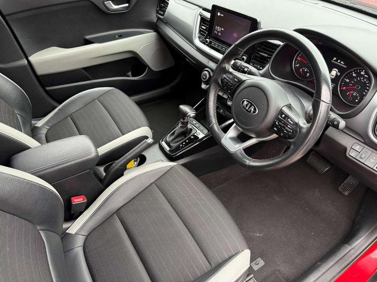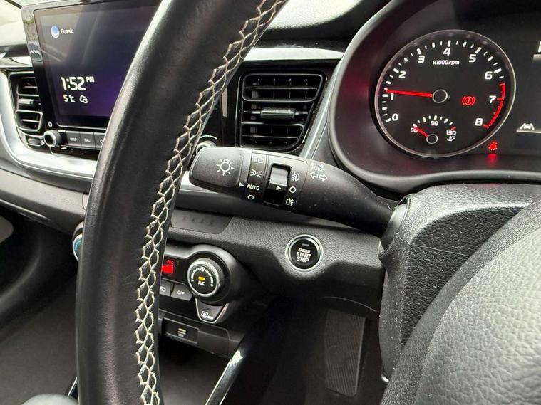 4.2" supervision colour cluster display, 8" Touchscreen navigation with telematics, Android auto with voice control, Apple car play with voice control, Cruise control + speed limiter, Drive mode selector, Electric power steering, Emergency stop signalling system, External temperature display, Forward Collision-Avoidance Assist (FCA) - City/Pedestrian/Cyclist, Intelligent speed limit assist, Kia connected services featuring TomTom live, Lane keeping assist system (LKAS), Driver attention warning (DAW) and High beam assist (HBA), Rear parking sensor, Reversing camera system, Trip computer, Intelligent Stop and Go, Audio system with 6 speakers, Bluetooth with music streaming, Front USB port, Rear USB port, Steering wheel mounted controls, Aero blade type windshield wipers, All round electric windows with drivers auto up/down function, Auto dimming rear view mirror, Automatic defog system, Automatic headlights control, Bi-function projection headlights with static bending, Black side sill, door garnish and wheel arch trims, Black/body colour bumpers, Body coloured exterior door handles, Chrome side window trim, Electrically adjustable/heated/folding door mirrors with LED indicators, Front and rear silver skid plates, Front fog lights, Headlight levelling device, Heated rear window, High gloss black and satin radiator grille, LED daytime running lights, LED position light, LED rear combination lights, Privacy glass - Rear windows and tailgate, Rain sensing front wipers, Rear fog lights, Rear wash/wipe, Roof coloured door mirrors with matt black lower housing, Roof coloured rear spoiler with high mounted braking light, Roof rails, Shark fin antenna, Speed variable front wipers, Two tone paint, Welcome and follow-me home light functionality, Windscreen Washer Level Warning, 12V power point front, 60/40 split folding rear seat, Air filter, All-round height adjustable headrests, Automatic air conditioning, Centre armrest storage box, Centre console with cupholders, Cloth/faux leather upholstery with grey accents, D-Cut perforated leather trimmed steering wheel, Dash illumination dimmer switch, Driver's seat height adjuster, Dual Height Luggage Area Floor, Front and centre cabin lights, Front and rear door map pockets with bottle holder, Gear shift indicator, Glovebox illumination, ISOFIX Child seat top tethers and anchor fixings outer rear seats, Leather trimmed gearshift, Luggage area light, Luggage area parcel shelf, Luggage net hooks, Overhead console lamp, Overhead console with sunglasses cases, Passenger front seatback pockets, Satin chrome interior door handles, Sunvisors with vanity mirror illumination (Driver and front passenger), Tilt/telescopic adjustable steering wheel, ABS with Electronic Brakeforce Distribution (EBD) and Brake Assist System (BAS), All round 3-point seatbelts, Electronic stability control (ESC) and vehicle stability management (VSM), Front passenger airbag cut-off switch, Front seatbelt pretensioners + load limiters, Height adjustable front seatbelts, Hill start assist control (HAC), Impact sensing auto door unlocking, Rear seat Occupancy alert, Seatbelt reminder warning, Twin curtain airbags, Twin front airbags, Twin front side airbags, Tyre pressure monitoring system, Alarm system, Door deadlocks, Engine immobiliser, Locking wheel nuts, Smart key with engine start/stop button, Speed sensitive auto door locking, Visible vehicle identification number, High gloss black centre fascia, 17" alloy wheels, Tyre mobility kit,