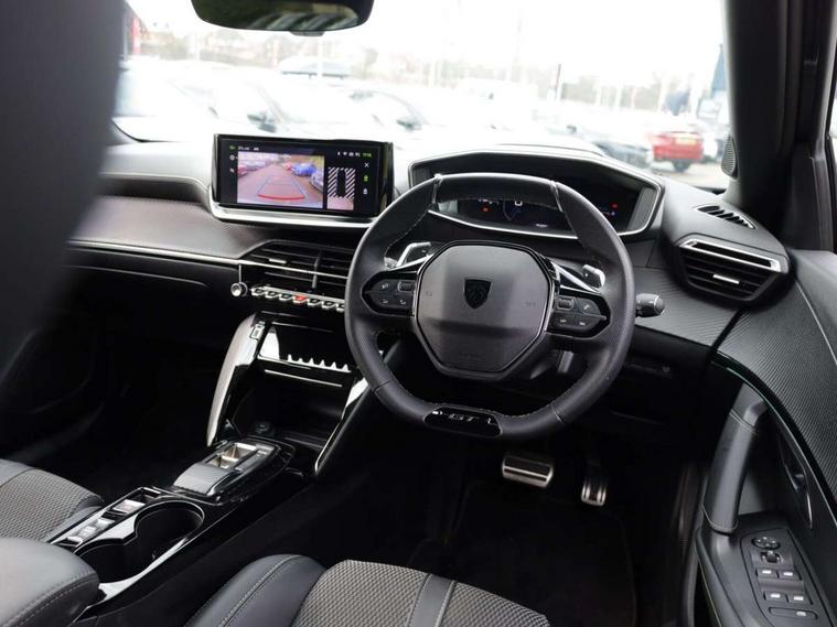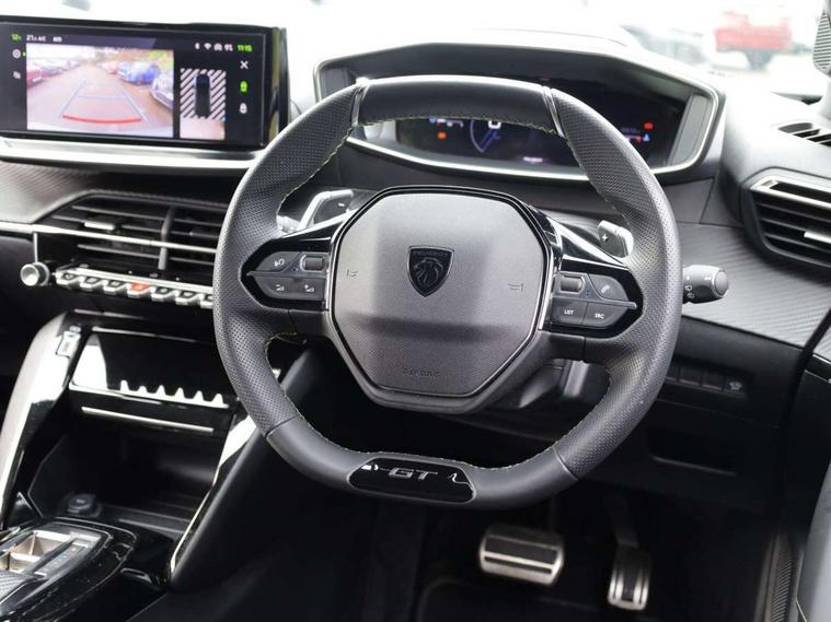 Bluetooth telephone facility, Driver attention warning, E-call, Exterior temperature indicator with ice warning, Multi function trip computer, PEUGEOT i-Cockpit with compact steering wheel, PEUGEOT i-Cockpit with configurable 3D headup instrument panel, PEUGEOT SOS and assistance, Smartphone charging plate, Speed limit recognition and recommendation, Wireless mirror screen with mirror link, apple carplay and android auto, Petrol Particulate Filter, 1x USB-C socket in rear and 1x USB-A socket in rear, 2 USB-C ports in the front, 6 speakers radio with mp3 compatible, DAB Radio (Digital Audio Broadcasting), Voice recognition for radio, navigation and telephony features, 2 X Rear number plate lights, Aluminium door sill scuff plates with peugeot lettering, Automatic hazard light activation upon heavy brake application, Black diamond roof, Black front wing trim with gloss black detail and GT badging, Body coloured exterior door handles, Dark tinted rear side and tailgate windows, Diamond black mirror shells, Diamond black rear roof spoiler, Electric, heated, and power folding door mirrors, Frameless electrochrome interior rear view mirror, Front bumper - Meteor grey lower trim, Full LED headlights with smartbeam assist with auto height adjustment, Gloss black finish on B pillar, Gloss black rear cluster connecting strip, Gloss black roof bars, Gloss black window surround, GT model designation badging on tailgate, Headlights left on audible warning, LED daytime running lights with distinctive 3 claw signature, LED side indicator lights integrated into door mirrors, LED third brake light, Model designation badges front and rear, One touch electric front/rear windows with pinch protection, Radiator grille - body coloured vertical chequered grille, Radiator grille - gloss black top edge trim, Rear full LED 3D peugeot signature claw effect lights with daylight function, Rear reversing lights, Rear side wing doors, Rear windscreen wiper triggered automatically in reverse gear, Tailgate with heated rear windscreen and wiper blade, Twin chromed exhaust pipes, Wheel arch extensions, 1/3 to 2/3 split folding rear seats, 12V socket, 3 seat bench in 2nd row, 8 Colour personalisable ambient lighting, Automatic air conditioning with pollen and active carbon filter, Central front armrest with storage compartment, Driver and front passenger sport seats, Electric power steering with reach and rake adjustable steering column, Front and rear carpet mats in black, Front LED interior light with 2 reading spotlights and rear interior light with timer, Front passenger seat manual adjustment - height, longitudinal and back rest angle, High centre console, ISOFIX child seat mounting points on passenger seat, Mistral full-grain perforated leather steering wheel with Lime Green stitch detail and satin chrome 'GT' emblem, Multifunction steering wheel, Piano keys: Gloss black and chrome toggle switches to access main functions of the vehicle and touchscreen functions, Roof lining - Mistral black, Seatbelt unfastened on the move audible and visual alert for front and rear seats, Single front passenger seat, Two position modular boot floor, Visibility pack - 2008, 2x 2nd row ISOFIX child seat mountings, ABS (Anti-lock Braking System) with EBD (Electronic Brakeforce Distribution) and EBA (Emergency Braking Assistance), Active safety brake with night function/cyclists/pedestrians, Adaptive driver and front passenger airbags with passenger airbag deactivation function, Child locking functionality on rear doors, Driver/front passenger side airbags, Electric parking brake, ESP (Electronic Stability Program) + Hill Start Assist, Front and rear curtain airbags, Front and rear disc brakes, Front and rear three-point retractable seatbelts, with force limiters, Front optimised safety headrests and rear retractable headrests (x3), height adjustable, Tyre pressure sensor, Automatic door locking when moving off, Deadlocks, Electronic code immobiliser, Peugeot Open and Go (keyless entry and push button start), Thatcham category 1 alarm, Carbon effect Dashboard, front and rear door panel finish,
