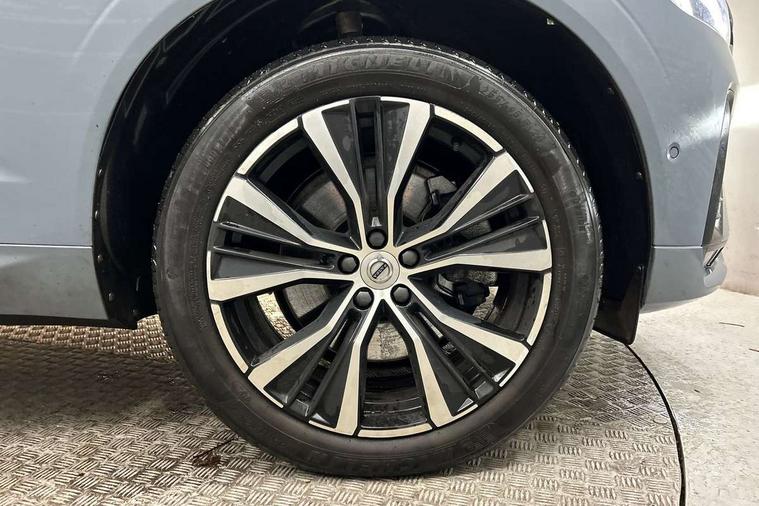 12.3" Progressive Driver Display, 360 degree surround view parking camera with side proximity sensors, 9" centre console touch screen, Adjustable steering wheel force, Bluetooth handsfree system, Driver alert control with lane keeping aid, Driver assistance (pilot assist and adaptive cruise control), Driver awareness - Blind spot information system with steer assist, cross traffic alert with autobrake and rear collision warning and mitigation, Emergency services call system, Front and rear park assist, Google Automotive Services, Oncoming Lane Mitigation, Service interval indicator, Speed limiter, Speed sensitive steering, Trip computer, Volvo on call with App, Wireless/Inductive Mobile Phone Charging, 8 speed automatic transmission with start/stop + manual change functions, Dynamic chassis, DAB Digital radio, Premium Sound by Harman Kardon, dirac unison, dolby pro logic II surround sound, 13 speakers/600W output and fresh air subwoofer, Steering wheel remote infotainment controls, Adaptive brake lights with high level LED brake lights, Auto dimming interior + exterior mirrors, Automatic headlight levelling system, Automatic LED Headlights + Active high beam incorporating daytime running lights, Electric adjustable/heated/auto power folding door mirrors, Electric front+rear windows, Front aluminium tread plates, Heated front windscreen, High gloss black door mirrors and window surround, High gloss black front and rear bumper decoratives, High gloss black mesh front grille with high gloss black surround, Home safe and approach lighting, Integrated roof rails in high gloss black, LED front fog lights, Puddle lights, Rain sensor with automatic windscreen wiper activation, Rear side wing doors, Rear wiper, Roof antenna, Roof spoiler, Tinted windscreen, Visible VIN plate, 12V socket in front tunnel console and cargo compartment, 3 seat bench in 2nd row, 4 Zone electronic climate control, A-pillar parking ticket holder, Air purifier particulate matter (PM) filter, B Pillar ventilation, Bright metal luggage threshold, Centre console cupholders and storage, Charcoal floor mats, Front and rear courtesy lights, Front and rear door pocket illumination, Front cupholder illumination, Front footwell illumination, Front reading lights, Front seat cushion extensions, Glovebox compartment with illumination, Head restraints for all seats, Heated front seats, Heated steering wheel, Height/reach adjustable steering column, Illuminated luggage compartment, Illuminated vanity mirrors + ticket holder, ISOFIX attachment on outer rear seats, Load cover, Load protection net, Multi directional lumbar support, Power driver seat with memory + exterior mirrors memory, Power height adjustable passenger seat, Rear armrest with cupholder, Rear footwell and front and rear side step illumination, Rear seat concealed storage, Single front passenger seat, Tailgate illumination and ambient door lighting, Underfloor stowage compartment, Versatile split folding rear seat - 60/40, 5 three point seatbelts, City safety with steering support with Pedestrian + cyclist + large animal detection + front collision warning with full auto brake, Drivers knee airbag, Dual stage driver/passenger airbags, Electronic parking brake with auto hold, First aid kit, Front seats SIPS airbags, Hill descent control - Off-road drive mode, Hill start assist, IC (Inflatable Curtains) - Full Length, Passenger airbag cut-off device, Power child locks on rear doors, Road sign information display, Run off Road Mitigation, Run off Road Protection, Seatbelt reminder and pretensioners, SIPS (Side Impact Protection System), Slippery road and hazard light alert, Stability and Traction Control with Spin control, Engine Drag Control and Corner Traction Control, Tyre pressure monitoring system, Vehicle deceleration control with Anti-lock Brake System, Electronic Brake Distribution and Emergency Brake Assist, Warning triangle, WHIPS whiplash protection system - front, Anti-theft alarm including immobiliser/volume sensor + level sensor, Care key with user defined top speed, Key integrated remote control central locking + fuel flap with deadlocking system and auto open/close power windows, Keyless Drive (includes Keyless Entry and Keyless Start) with Handsfree Tailgate Opening/Closing, Locking wheel nuts, Private locking for tailgate,