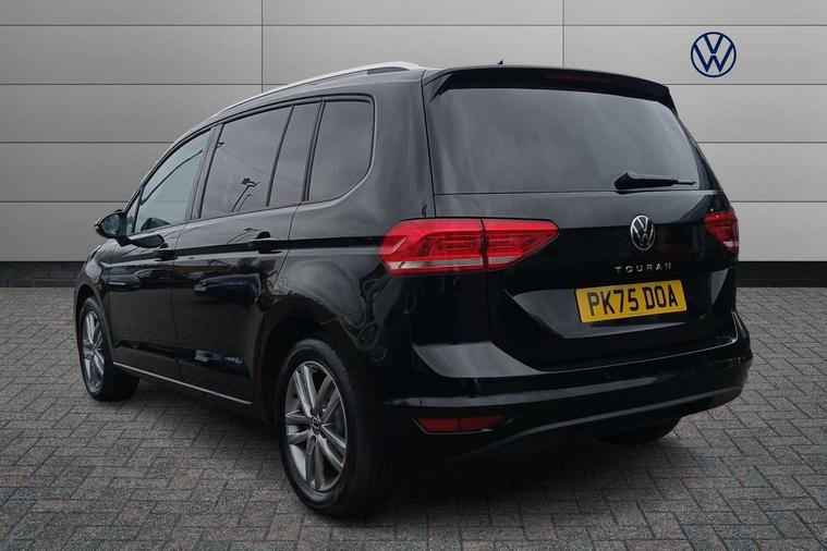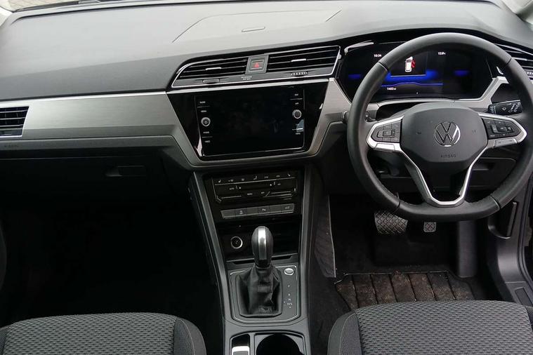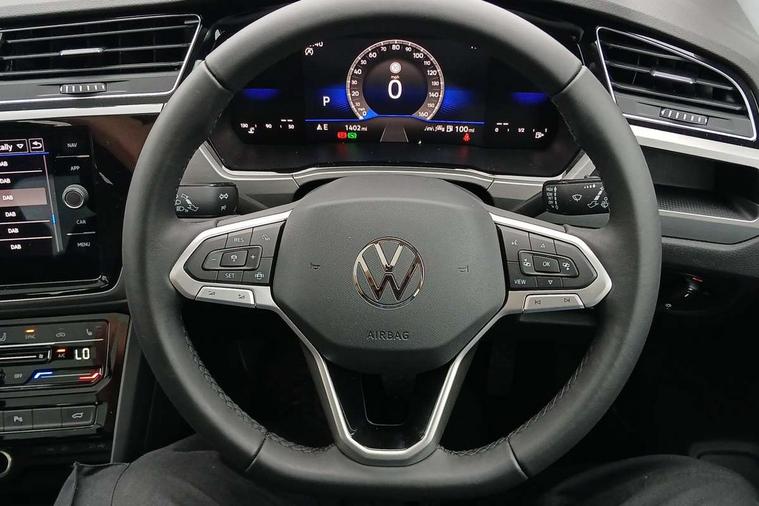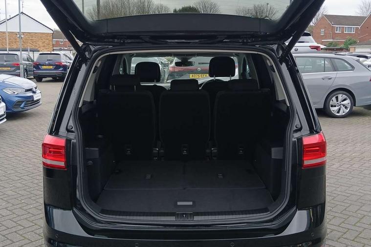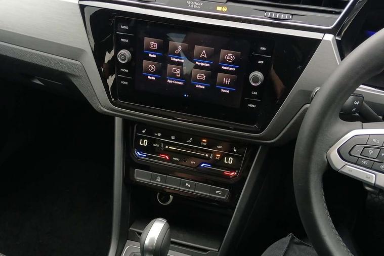 Adaptive cruise control, Audible lights on warning, Discover media navigation touchscreen navigation/radio system with streaming and internet, Driver alert system, Driver profile selection, Dynamic road sign display, Electric tailgate, Electronic odometer, Emergency services call system, Extended, crash-active and proactive Pedestrian and cyclist monitoring, External temperature gauge, Front parking sensors, Lane change system side assist and rear traffic alert, Lane keep assist, Misfuelling protection device, Mobile pairing with SMS function, Mobile phone interface with inductive charging, Rear view camera displayed via vehicles audio system display, Rev counter with fuel gauge, Side scan, Speed limiter, Speed sensitive power steering, Stop/start system, Think blue trainer driver tips and journey analysis, Trip and service interval display, We connect' and 'We connect plus' functionality, Petrol Particulate Filter, Rear stabiliser bar, XDS electronic differential lock, 4x20 watt output, 8 Speakers, Audio Connectivity System, DAB Digital radio, External USB-C data socket with increased charging performance - 2 USB sockets 45W, MP3/WMA compatability, SD card slot, Title and cover art display, USB connection, Aerial integrated into side window, Auto dimming door mirrors, on driver side, surround lighting and front passenger side mirror lowering function, Auto dimming rear view mirror, Automatic coming/leaving home lighting function, Body colour bumpers, Body colour door handles, Body colour door mirrors with integral indicators, Door mirrors with memory function, Dusk sensor + auto driving lights, Electric folding door mirrors, Electric heated + adjustable door mirrors, Electric, glass sliding/tilting panoramic sunroof including integrated roller blind and LED lighting around aperture, Front and rear electric windows, Fully galvanised body, Gloss black finish B pillar, Green tinted heat insulating glass, High level third brake light, Rain sensor, Rear fog lights, Rear side wing doors, Rear tinted glass from B-pillar backwards approx 65% tinted, Rear wash/wipe with intermittent wipe setting, Removable engine badge, Silver roof rails, Tailgate wiper- reverse gear activation, Twin chrome exhaust tailpipes, Volkswagen roundel, Windscreen wipers intermittent wipe, 12V power point for Row 2, 12V socket in luggage compartment, 2 individual fold flat 3rd row seats, 2 three point seatbelts in 3rd row, 2nd row centre armrest, 2nd row centre seat converts into table, 3 single slide/fold/removable 2nd row seats, 3 spoke steering wheel, 3x3 point seatbelts on 2nd row with height adjust on outer seats, 4 boot load lashing points, 4 way adjustable front head restraints, 5 headrests, Activated charcoal canister for intensified evaporation system, Air care climatronic 3 zone air conditioning system with rear air conditioning control panel, Chrome plated radiator grille inserts, air vent surrounds and light switch surrounds, Driver and front passenger under seat drawer, Dust/pollen filters, Foldable front passenger seat backrest with load through function, Front and rear reading lights X 2, Front centre armrest with storage compartment, Front comfort seats with lumbar support, Front cupholders x 2, Front passenger seat height adjust, Front seat storage pockets, Front seatback folding tables, Height adjustable driver's seat, Height/reach adjust steering wheel, Illuminated glovebox, Instrument lighting white adjustable panel illumination with red night time illumination, Interior light with delay, Isofix on 2nd row outer seats, Isofix on 3rd row seats, Large storage compartment in roof console, Lasano cloth upholstery, Leather multifunction steering wheel with gear knob, Leatherette on rear of front seats, Low tunnel 2nd row seat, Luggage compartment lighting, Media box in dashboard on passenger side, Multi storage in passenger/luggage areas, Multi-function centre console with storage facilities, Retractable luggage cover, Split folding rear seat backrests, Storage bins on all doors, Sun visors with illuminated vanity mirrors, Family Pack - Touran, Winter pack without heated washer jet - Touran, 3 point height adjustable front seatbelts, Auto hold function, Automatic post collision braking system, Door open warning reflectors, Driver/Front Passenger airbags, Drivers knee airbag, EDL + ASR, Electronic parking brake, Energy recovery system, ESC with ABS, First aid kit, Front and rear (row 2) curtain airbags, Front assist with autonomous emergency braking, Front seat side impact airbags, Front seatbelt pretensioners, Front/rear disc brakes, Hill hold control, Hydraulic Brake Assist (HBA), Loose wheel warning function, Manual passenger airbag deactivation function, Pre crash preventive occupant protection, Proactive passenger protection system with front and side assist, Rear child proof door locks, Road sign recognition, Seatbelt warning lamp and buzzer, Traction control, Two tone horn, Warning triangle, Alarm with remote central locking and interior protection, Electronic engine immobiliser, Keyless Access Keyless locking and starting system with SAFELOCK, New brushed design decorative inserts in dash and front doors, 17" Salvador alloy wheels with anti-theft wheel bolts, 215/55 R17 self sealing tyres with low rolling resistance,