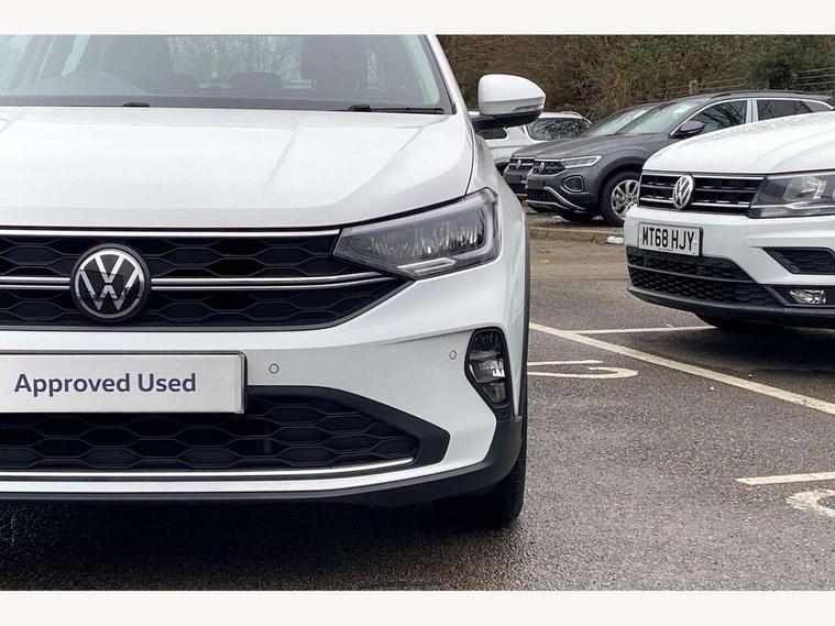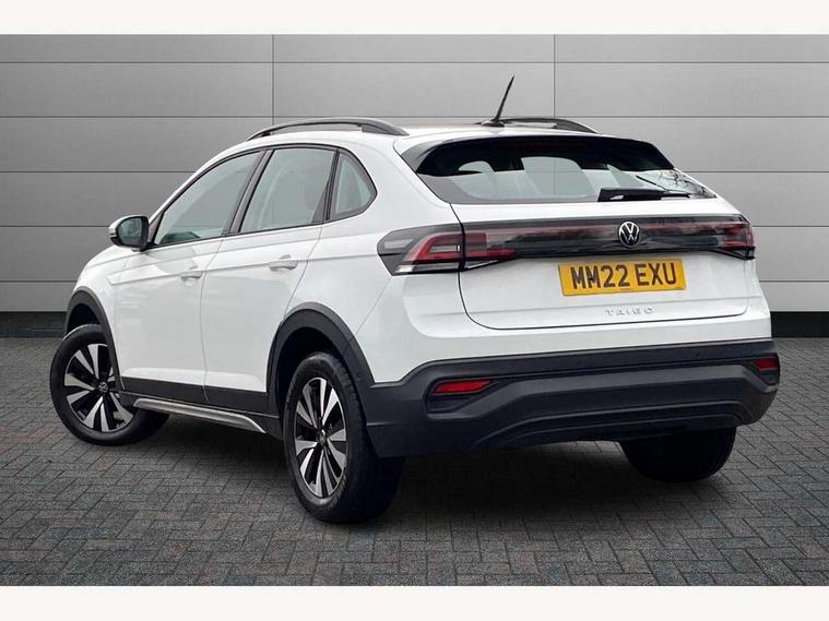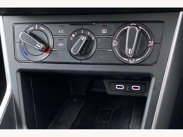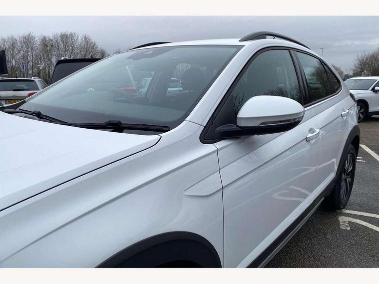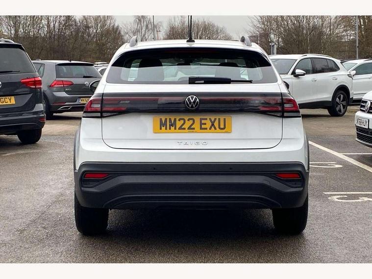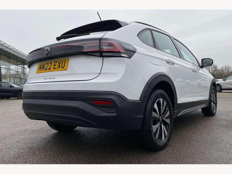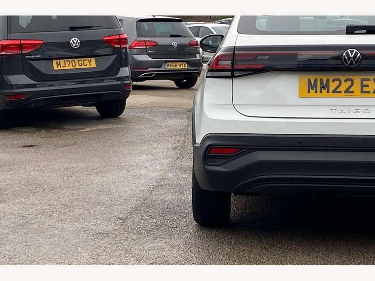 App-Connect including App-Connect Wireless, Driver alert system, e-Call (emergency call), Power Steering, Travel assist including emergency assist, Washer fluid level indicator, Wireless Charging including Bluetooth, Start-stop system with battery regeneration (recuperation - energy recovery during braking), Digital radio reception (DAB+), Diversity antenna for FM reception, WeConnect plus, Ambient lighting with logo projection, Aspherical driver's exterior mirror, Auto headlights, Body coloured bumpers, Body coloured exterior mirror housings and door handles, Electric windows, External USB type C socket and charging sockets, Front fog lamps with cornering function, Headlight range control, Heat insulating glass windscreen, LED headlamps, LED rear combination lamp, LED third brake light, Left convex exterior mirror, Power folding adjustable/heated exterior mirrors and front passenger exterior mirror lowering function, Rear fog light on one side, reversing light on both sides, Rear side wing doors, Rear wash/wipe with intermittent wipe setting, 'Slash/ Austin' Cloth upholstery, 12V socket in centre console, 2 front reading lights, 3 rear head restraints, 3 seat bench in 2nd row, Black carpets, Child seat anchor for child seat system i-Size, 2x top tether and child seat anchor in front on front passenger side, Door and side trim panels in titan black, Driver and front passenger seat height adjustment, Front centre armrest, Handbrake lever handle in leather, Height and reach adjustable steering wheel, Leather trimmed gear knob, Leather wrapped multifunction steering wheel, Luggage compartment floor, Luggage compartment light, Lumbar support for driver's and front passengers seat, Seat covers in titanium black, Single front passenger seat, Split folding backrest with centre armrest and unsplit rear seat bench, Storage compartment under front seats, Sun visors with illuminated vanity mirrors, Chrome Package - Taigo, Drivers assistance pack - Taigo, Light and Sight pack including High beam assist - Taigo, 2 x 3-point seatbelts/outer rear seats with ECE label, 3-point seat belts in front with pretensioner and height adjustment, 3-point seatbelt for centre rear seat, Driver and front passenger airbags with front passenger airbag de-activation, front side and curtain airbags, Driver and front passenger safety-optimised head restraints, Electronic stability control, Extended and predictive pedestrian/ cyclist protection, Front and rear disc brakes, Front curtain and side airbags with center airbag, Hill start assist, Manual rear child locks, Single tone horn, Tyre pressure loss indicator, Anti-theft alarm system with interior monitoring, backup horn, and towing protection, Anti-theft wheel bolts, Lava stone black gloss/matt decorative inserts in dash and front door panels, Low rolling resistance tyres,