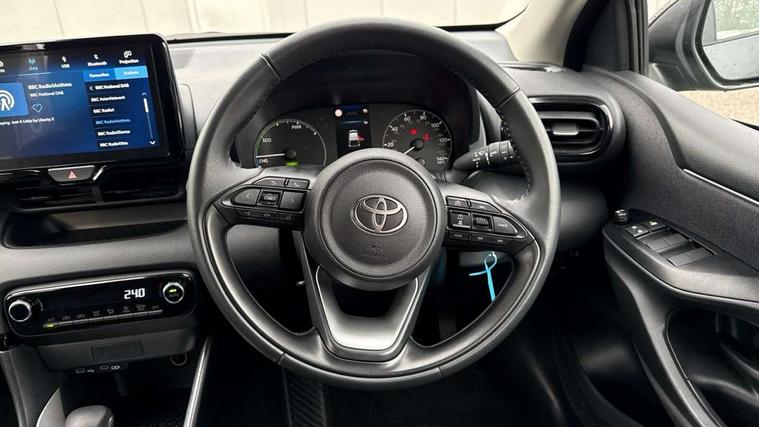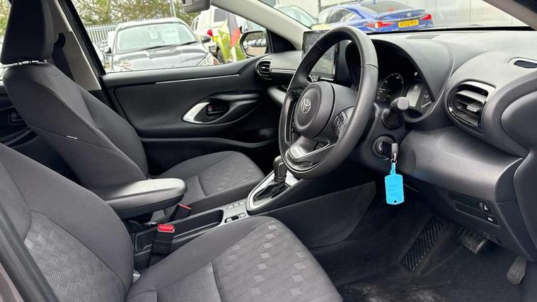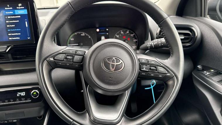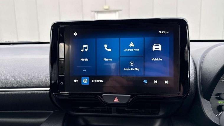 4.2" coloured TFT multi information display with analogue speedometer, Adaptive cruise control, Adjustable speed limit with speed warning, Bluetooth connectivity, E-call, Electric power steering, Hybrid energy display, Lane trace assist, Multi information display switches on steering wheel, Pre-collision system (PCS), Reversing camera, Smartphone integration with Apple CarPlay and Android auto, Tailgate, Voice recognition, Vehicle Stability Control (VSC), 4 speakers, 9" Multimedia touch display, Toyota Touch 3 system with DAB radio, USB connection, Acoustic windscreen glass, Auto high beam assist, Auto windscreen wipers, Automatic headlights, Body coloured door mirrors, Bulb indicators, Chequered front grille, Daytime running lights, Electric adjustable heated door mirrors, Follow me home headlights, Front auto power windows with anti jam protection, Front halogen fog lights, Halogen projector headlights, LED High mounted stop lamp, Manual headlight levelling, Rain sensor, Rear auto power windows with anti jam protection, Rear roof spoiler, Rear side wing doors, Rear wiper, Shark fin antenna, Turning signal integrated indicators in door mirrors, Variable front intermittent wipers, 3 adjustable rear headrests, 3 seat bench in 2nd row, 3 spoke leather steering wheel, 60/40 split folding rear seat, Active headrests, Adjustable boot height, Auto air conditioning, Coat hooks in rear grab handles, Cup holders (2 front & door), Data Communication Module (DCM) connected services, Fabric upholstery, Front armrest, Glovebox, Grey roof lining, Height adjustable driver's seat, Isofix seat fixing, Leather gearshift, Pollen filter, Shopping bag hooks, Single front passenger seat, Tilt/telescopic steering column, 3 point seatbelts on all rear seats, ABS+EBD+Brake assist, Electronic parking brake, Emergency brake light system (EBS), Front passenger airbag on/off switch, Front seatbelt reminder, Hill start assist control (HAC), Rear child proof door locks, Rear seat belt reminder, Supplemental Restraint System (SRS) 8 airbags: Driver & passenger's airbags, dual side curtain airbags, side impact airbags, front centre airbag, Toyota Safety Sense 3 with over the air updates, Tyre pressure warning system, 2x Master key, Alarm/immobiliser, Remote powered central double locking doors, Soft touch instrument panel, 16" 5 spoke silver finish alloy wheels, Space saver spare wheel,