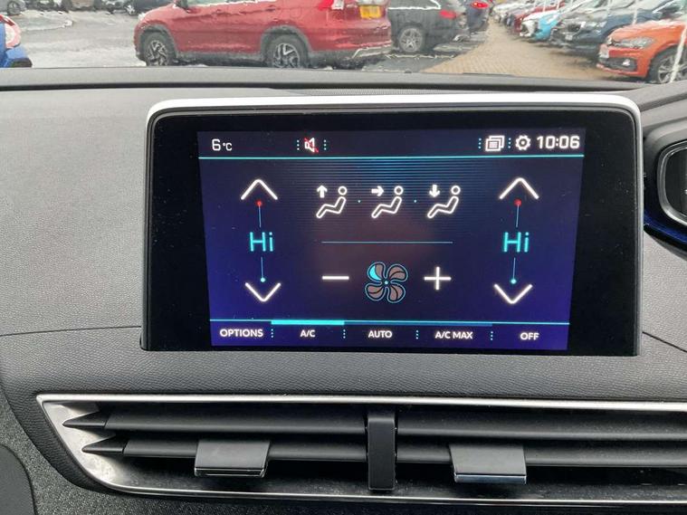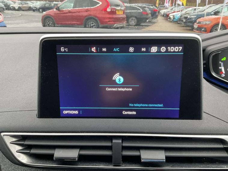 'Lights On' Reminder warning buzzer, 3D connected navigation + voice control + Peugeot connect SOS and assistance, Advanced Driver Attention Alert, Android Auto, Blind spot monitoring, Digital clock, Exterior temperature gauge, Lane departure warning system, Lane keep assist, Mirror screen with mirror link and car play, Multi function trip computer, Peugeot i-cockpit with amplify configurable interior ambiences, headup display with distance alert, touch screen, Rear parking aid, Speed sensitive power steering, Dynamic stability control, DAB Digital radio, Peugeot connect with USB and bluetooth, Radio/MP3 player, Steering column mounted multifunction controls, Automatic activation of hazard warning lights, Automatic front windscreen wipers, Black side window trim, Body colour door handles, Body colour door mirrors, Body colour rear spoiler, Body coloured bumpers, Chrome bumper inserts, Chrome front fog light surround, Chrome radiator grille and surround, Dark tinted rear windows, Electric folding door mirrors with courtesy approach lighting, Electric operated/heated door mirrors, Heated rear windscreen, LED daytime running lights, LED rear lights, Lion grey front bumper scuff plate, One touch electric front/rear windows, Peugeot smart beam assist, Rear wiper, 1/3 to 2/3 split folding rear seats, 3 x 12V power sockets, 4 Lashing eyes in boot, Blue ambient lighting, Centre console cupholder, Centre front armrest with illuminated cool compartment, Cupholders - 2 in rear centre armrest, Dual zone automatic climate control, Fold flat front passenger seat with picnic table, Front headrests, Front reading lights, Front seat back map pockets, Gear shift indicator, Grab handles, Height adjustable headrests, Height adjustable passenger seat, Height/reach adjust steering wheel, Illuminated glovebox, Illuminated vanity mirrors, Instrument panel light dimmer, ISOFIX on front passenger and rear outer seats, LED interior illumination, Mistral full grain leather steering wheel, Rear centre armrest/ski flap, Rear coat hook, Rear headrests, Rear reading lights, Reclining front seats, Roof lining - Salin light grey, Satin chrome gear lever, Satin chrome interior door handles, Visibility pack - 3008, 3 point front seat belts, 3 point seatbelts on all rear seats, ABS + EBD + EBA, Auto city emergency braking, Driver SMART airbag, Electronic parking brake, ESP with ASR, Front and rear curtain airbags, Front and rear pre-tensioning and force limiting seatbelts, Front passenger SMART airbag with deactivate switch, Height adjustable front seatbelts, Hill start assist, Seatbelt warning lamp and buzzer, Side airbags x 2, Tyre pressure sensor, Automatic door lock/re-lock after 30 seconds, Central locking button on dash, Child lock control of rear doors and windows, Deadlocks, Locking wheel bolts, Perimetric and volumetric anti theft alarm, Remote control central locking with two plip keys, Rolling code transponder immobiliser, Brumeo fabric interior trim,