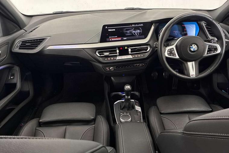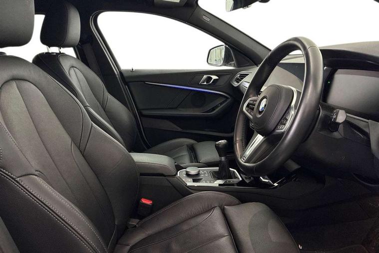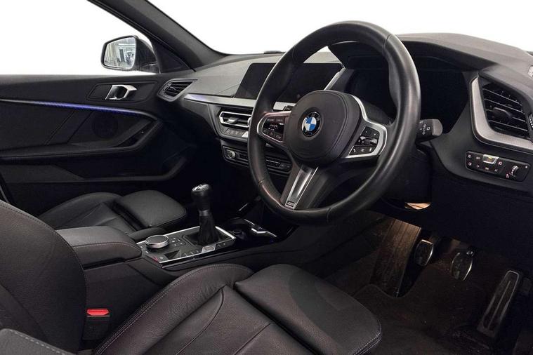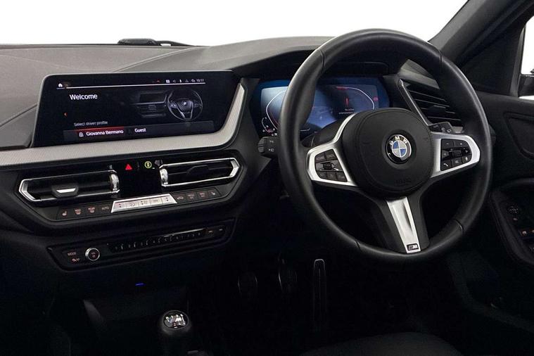 Active guard plus, Attentiveness assist, BMW ConnectedDrive online services, BMW Teleservices, Check Control warning system for monitoring of lights and door/luggage compartment open warning, Cruise control with speed limiter, Eco pro mode, Front axle single joint with specific axle kinematics to minimise drive influences on steering + provide increased rigidity agile driving behaviour, Integrated owners handbook, Lane departure warning system, Oil sensor for level and grade, On board computer, Optimum shift indicator, Personal Profile, Pull away assistant, Rigidly mounted rear subframe - Multi link construction with separate spring / damper configuration and excellent driving characteristics, Speed limit Info including no-overtaking indicator, Aluminium lightweight construction, Anti roll bar front and rear, Balancer shaft, Double VANOS twin scroll turbocharging system, Drive Performance Control, Electronic differential lock, High precision injection, M sport suspension, Petrol Particulate Filter, Twin tube gas filled shock absorbers with degressive characteristic curve, VALVETRONIC engine management, DAB Digital radio, Auto dimming rear view mirror, Automatic headlight beam throw control, Automatic windscreen wipers and automatic headlight, Body colour door handles, Body colour mirror caps, Body colour roof trims, Chrome 'M' logo side designation, Chrome exhaust twin tailpipes round 90mm in left, Chrome kidney grille frame with Satin Aluminium struts, Direction indicator side lights in exterior mirrors, Electrically adjustable exterior mirror with mirror adjustment switch on drivers armrest and aspheric on driver side, convex on passenger side, Fading support, Folding side mirrors with auto dimming/folding wing mirrors with auto dimming, Follow me home headlights, Front and rear bumper system with replaceable deformation elements, Front and rear electric windows with open and close fingertip control, anti trap facility and comfort closing, Front door sill finishers in black plastic with M designation in metallic look, Green tinted heat protection glazing, High gloss shadowline window frame, Recess cover mirror frames and B/C pillar embelisher trim, High level third brake light, Integrated front windscreen with washer jets, LED daytime running lights, LED eyebrow turn indicators, LED front fog lights, Lightweight engineering, Matt black air guide grilles, Matt black wheel arch trim, Model designation on electric bootlid, Nearside reverse light in rear light cluster, Preparation for high beam assistant, Rear fog lights, Rear side wing doors, Rear window wiper, Shark fin antenna, Trailer stabilisation logic, Visible VIN plate, Welcome lighting, 12V power socket in front centre console with blanking plug, 3 rear seat head restraints, 3 seat bench in 2nd row, 3 spoke sports leather steering wheel in black leather with black stitching and decorative finisher in pearl chrome, specific M badge + leather knob, Anthracite headlining, Black boot net with lashing eyes, Cargo function on 2nd seat row, Child seat ISOFIX attachment for two outer rear seats and front passenger seat with anchorage points, Conditioned based service, Driver and front passenger backrest net on rear, Driver and front passenger seat heating, Driver side folding compartment in instrument panel, Folding rear clothes hook, Four grab handles integrated in roof lining, Front and rear door pockets with bottle holders, Front and rear side armrest integrated into door trim, Front armrest, Front sports seats, Gearshift lever with M designation, Glove compartment, Height adjustable front head restraints, Luggage compartment for bag hooks on left and right, foldable luggage compartment liner and four lashing eyelets, Manual adjust steering wheel, Multi-function controls for steering wheel, Single front passenger seat, Storage compartment in centre console, Storage compartment in luggage compartment, Stowage of the parcel shelf in luggage compartment trim, Sun visors with vanity mirrors and insert tab, Two front centre console cupholders, Two zone automatic air conditioning, Type C two USB ports in rear centre console, Velour floor mats, Additional interior lighting pack - 1 Series, BMW live cockpit professional pack- 1 Series, Connected pack professional - 1 Series, Interior lights pack - 1 Series, M Sport exterior styling aerodynamics pack - 1 Series, 2 tone horn, 3 point seatbelts on all seats, front pyrotechnic belt tensioners, stopper and belt force limiters, rear coded belt buckles, Airbags - Front driver/passenger, front and rear curtain head protection, front side, manual deactivation of front passenger airbag, Anti lock braking system (ABS) with brake assist, BMW emergency call, Brake drying, Braking readiness, Child proof locking system in rear door, City braking function, Comfort modes, Cornering brake control, Crash sensor activating of airbags, Unlocking doors, hazard warning lights, interior light, safety battery terminal, Driver and front passenger seat belt security check, Dynamic stability control + (DSC+), Dynamic Traction Control - DTC, Electrically operated hand brake, Front and rear disc brakes, Seatbelt warning, Side impact protection, Tyre pressure monitoring system, Warning triangle and first aid kit, Central locking switch for all doors, fuel filler cap and luggage compartment, Deadlocking function system to all doors, Drive away locking system on all doors and luggage compartment with de-activated in iDrive settings, Locking wheel bolts, Remote control with integrated key with High-gloss Black inlay and M designation and 1 button for open/ close lock, window, open luggage compartment, Start/stop button illuminated in centre console with keyless engine start and auto start stop deactivation button, Thatcham Cat.1 alarm and immobiliser, Wheel slip limitation close to the actuator (ARB), Contrast stitching on instrument panel, 18" Burnished M double spoke bi-colour alloy wheels finished in orbit grey - style 819M
