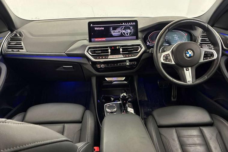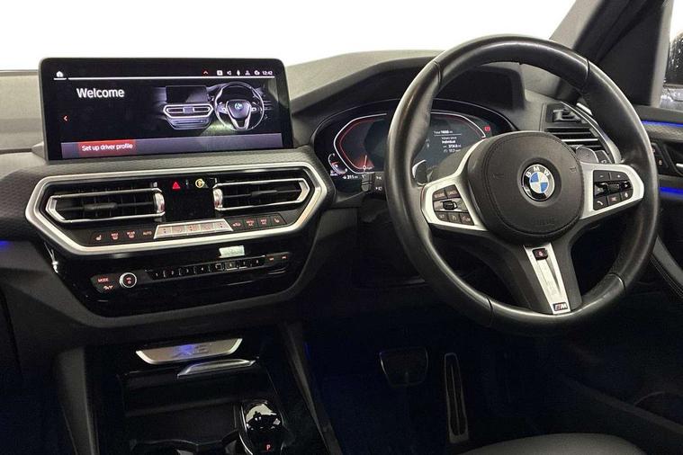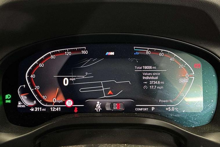 Active Guard, Attentiveness assist, BMW Live Cockpit Professional nav system including 12.3" instrument display + 12.3 high resolution control display, BMW Online services, BMW Teleservices, Brake pad wear indicator in front and rear, Check Control warning system for monitoring of lights and door/luggage compartment open warning, Condition based service - BMW service history, electronic service booklet, integrated owner's handbook, Connected drive services, Cruise control with brake function + speed limiter, Electric boot lid, Front/rear Parking distance control, iDrive Controller with 8 favourite buttons, Instrument cluster with speedometer with mph readout, tachometer, fuel gauge and oil temperature gauge, Lights on warning by audio warning signal when ignition is switched off, Oil sensor for level and grade, warning by check control system, On board computer - average speed+fuel consumption, service interval, clock/date, odometer/trip meter, outside temperature display and ice warning, Optimum shift indicator, Personal Profile - automatic lock when driving away selectable, Run flat indicator, Stop/start system, Variable sports power steering with drive performance control Sport+ mode, Automatic transmission with gearshift paddles, Diesel particulate filter, Incorrect fuelling protection, Larger capacity fuel tank, M sport suspension, Multi-link rear suspension, Performance Control, BMW professional radio/CD/MP3, DAB tuner, Acoustic glazing, Automatic windscreen wipers and automatic headlight, Black finish on B pillars, Body colour door handles, Body colour electric adjust heated aspherical door mirrors, Body colour roof mouldings, Body coloured bumpers, Direction indicator, side repeaters, integrated in exterior mirrors, Dynamic brake lights, Exhaust tailpipes - dual, round, split left and right with chrome finisher, Fingertip control / anti-trap function on electric window, Folding wing mirrors with auto dimming, Follow me home headlights, Front and rear bumper system with replaceable deformation elements, Front and rear electric windows, Gloss chrome tailpipes finishers, Green tinted heat insulating glass, Heated windscreen washer jets, High beam assistant, High gloss black shadow line roof rails, High gloss shadowline exterior trim in decorative moulding side frame/recess cover/guide rail/B, C pillars/mirror frame and triangle with mirror base, High level 3rd brake light incorporating LED Technology, Interior rear view electrochromatic mirror with automatic anti dazzle function, LED tail lights, Lightweight engineering, M aerodynamic bodystyling, M Sport entry door sill strips, Model designation, Rear side wing doors, Rear wing door, Rear wiper, Shark fin antenna, Side exterior M designation badges, Visible VIN plate, Welcome lighting, Windscreen wipers with adjustable interval, 12V power socket in front centre console, 3 rear headrests, 3 seat bench in 2nd row, 3 zone automatic air conditioning, 4 lashing points to secure luggage, 40:20:40 split folding rear seat with loading system, Ambient lighting, Anthracite headlining, Automatic interior light when door is opened/ignition switched off or via remote key, Driver seat backrest width adjustment, Floor mats in velour, Foldable storage floor with compartment, Four grab handles integrated in roof lining, Front and rear bottle holders integrated into door trim storage compartments, Front and rear side armrests integrated into door trim, Front centre armrest with storage compartment, Front footwell lights, Front head restraints, Front passenger seat, Front sports seats, Front/rear courtesy lights with soft on/off dimming, Front/rear reading lights, Heated front seats, Isofix rear child seat preparation, Leather gear knob, Luggage area underfloor compartment, Luggage compartment lighting, M sport leather steering wheel, Multifunction steering wheel, Parcel shelf removeable and storable under boot floor, Reach and rake adjustable steering column, Rear centre armrest with 2 cupholders, Removable / retractable luggage cover, Slope adjustable rear seats, Storage compartment in rear centre console and front/rear door trims, Sun visors with vanity mirrors and ticket pocket, Toolkit located in luggage compartment, Two front cupholders with removable oddments tray/lid, Vernasca leather upholstery, Connected pro pack - X3, Driving assistant pack - X3, ADB - Automatic Differential Brake, Anti-lock braking system (ABS) with brake assist, Automatic Stability Control (ASC), Battery safety cut-off, BMW emergency call, Brake drying, Brake energy regeneration, Braking pre-tensioning, Child locks on rear doors, Cornering brake control (CBC), Crash Sensor - activation of central locking release, hazard warning light and interior lighting, Deactivation of fuel pump in the event of a crash, Driver and front passenger front and side airbags with passenger deactivation and ITS front and rear head airbags, DSC+, Dynamic brake control, Dynamic Traction Control - DTC, Electromechanical parking brake, Hill descent control, Hill start assist, Seatbelt security check for front seats, Side impact protection, Three point seatbelts to all seats with front and outer rear pyrotechnic belt tensioners and seat belt force limiters, Two tone horn, Tyre pressure sensor, Ventilated front and rear disc brakes, Warning triangle and first aid kit, Central locking switch for all doors, fuel filler cap and luggage compartment, Electronic engine immobiliser, Locking wheel nuts, Remote control including two integrated key - one button for open/close all lockable content, windows and separate button for open luggage compartment, Remote control Thatcham category 1 alarm, Start/stop button with Comfort Go keyless engine start and auto Start/stop deactivation button, Low rolling resistance tyres,