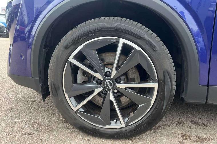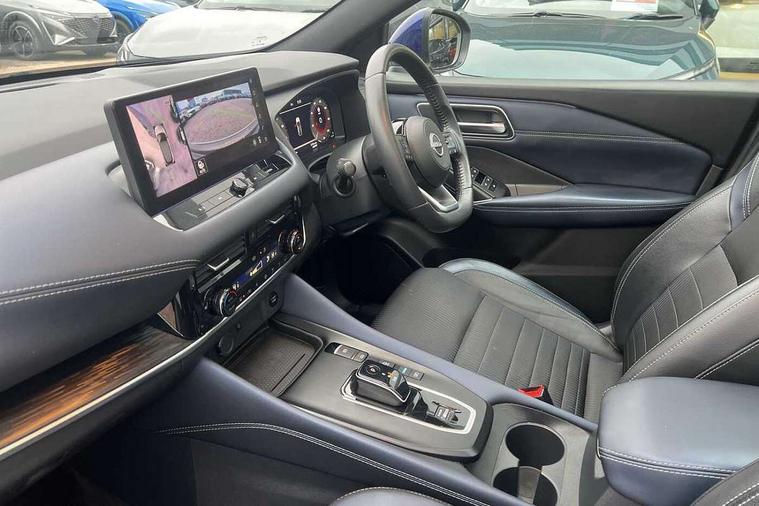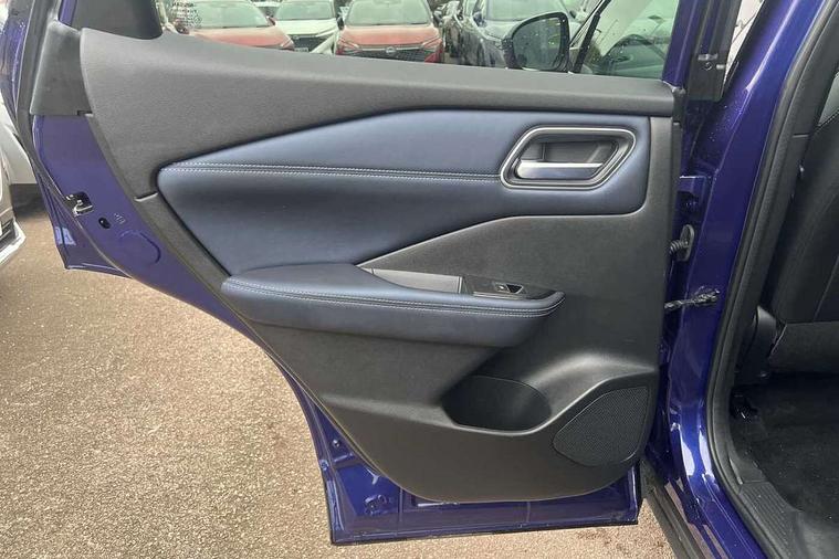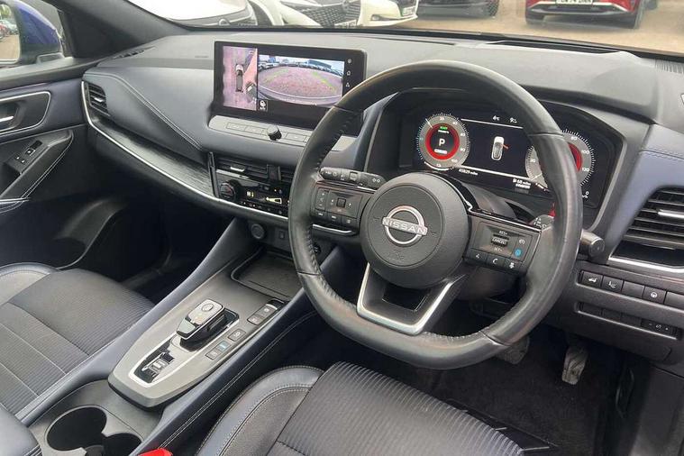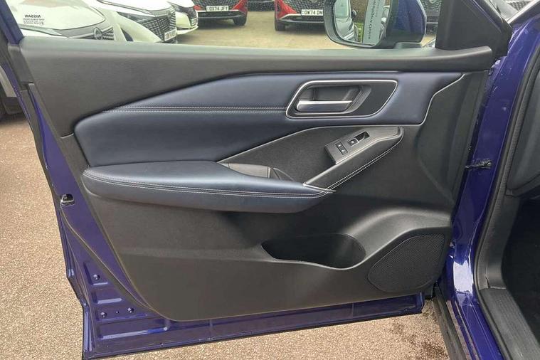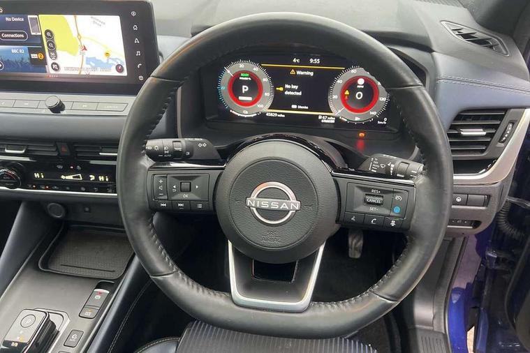 Advanced windscreen head up display, Blind spot warning, Drive modes (sport, normal, eco), e-Pedal step, Electric speed sensitive power steering, Emergency and breakdown call, Front and rear parking sensors, Full Digital 12.3" TFT Digital Combimeter, Google maps services - search, weather, 3D maps and Google street view, Hands free power tailgate, Idle stop/start system, Intelligent around view monitor, Intelligent Cruise control (ICC), Intelligent driver alert system, Intelligent forward collision warning, Intelligent lane intervention, Lane departure prevention, Lane departure warning system, Lane keep assist, Moving object detection, Nissan connect 12.3 inch touchscreen infotainment system, Nissan connect navigation, ProPILOT with Navi-Link, Push button starter, Rear cross traffic alert, Rear view camera, Remote control services - door locks, lights, horn and car locator, Telematics - notifications and connectivity services, TomTom live traffic services, Traffic sign recognition with legal speed adjustment, Trip computer, Virtual personal assistant and firmware over the air capability, Wireless Apple CarPlay and wired Android Auto, Wireless charging pad, 6 speakers, AM/FM audio system with DAB, Bluetooth audio streaming, Front USB connections (Type-A and Type-C), Rear USB charging only ports (Type-A and Type-C), Auto dimming rear view mirror, Auto rear wiper when reversing, Automatic hazard signal with emergency stop signal, Body colour mirror caps, Body coloured door handles, Bodyside mouldings, Chrome side window finisher, Door handle with button, e-POWER badging, Electric auto folding door mirrors, Electrically adjustable and heated door mirrors with LED turn indicator, Follow me home headlights, Front and rear LED turning signals, Headlights auto levelling system, Intelligent auto headlights, LED 3rd brake light, LED daytime running lights, LED headlights with adaptive driving beam, LED rear lights, One touch front and rear electric windows with remote opening and closing, Partially body coloured bumpers, Privacy glass, Rear bumper with graphite insert, Rear reversing light (bulb lighting), Rear roof spoiler, Rear side wing doors, Rear styling plate, Shark fin antenna, Splash free rain sensing wipers, Super UV and infrared cut glass, Thermaclear heated windscreen, Three blink turn signal, 12v power socket in dashboard and luggage, 2x Rear coat hooks, 3 bench rear seats in 2nd row, 3 rear headrests, 4 folding assist grip, 6 Luggage hooks - 4 on floor, 2 on side, 60/40 split folding rear seat bench, Ambient lighting around centre console, Ambient lighting in front doors, Centre console storage tray, Chrome interior door handles, Cloth/syntech leather monoform upholstery, Dark black/blueish PVC wrapping, Dark headlining, Driver and front passenger sunvisors with illuminated vanity mirrors, Driver seat back pocket, Dual zone automatic climate control with pollen filter, e-POWER shifter, Electrically adjustable driver seat, Electrically adjustable lumbar support for driver, Front and rear door storage, Front centre console and armrest, Front cupholders x 2, Front door with bottle holders, Glovebox with light, Hard trunk cover, Heated front seats, Heated steering wheel, Height adjustable driver's seat, Height adjustable front headrests, Height adjustable passenger seat, Leather steering wheel, Luggage board system, Luggage space lighting, Manual lumbar support on passenger seat, Manually adjustable passenger (slide recline + lifter), Multifunction steering wheel, Passenger seat back pocket, Rear armrest with 2 cupholders, Rear door bottle holders, Single front passenger seat, Soft PVC kneepad, Steering wheel switches, Tilt/telescopic adjustable steering wheel, Two rear isofix child seat anchorage points with top tether, Welcome light and doors with console tray ambient lighting, Glass roof pack with roof rails - Qashqai, 3x3 point rear seatbelt pretensioners + load limiters, ABS with EBD and brake assist, Active brake limited slip, Auto hold function, Child locks on rear doors, Curtain and front side, far side airbags, Driver and passenger airbags, Driver, passenger and 2nd row rear seat belt reminder, Electronic parking brake, Front seatbelt pretensioners + load limiters, Height adjustable front seatbelts, Hill start assist, Intelligent blind spot intervention, Intelligent front emergency braking with pedestrian, cyclist recognition and junction assist, Intelligent rear automatic braking, Tyre pressure monitoring system, Vehicle dynamic control, Capless fuel filler, Engine immobiliser, Intelligent Key, Remote central door locking with deadlocking, Thatcham Cat.1 alarm, Interior instrumental panel C finisher, 19" Diamond cut alloy wheels, Tyre puncture repair kit,