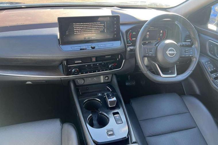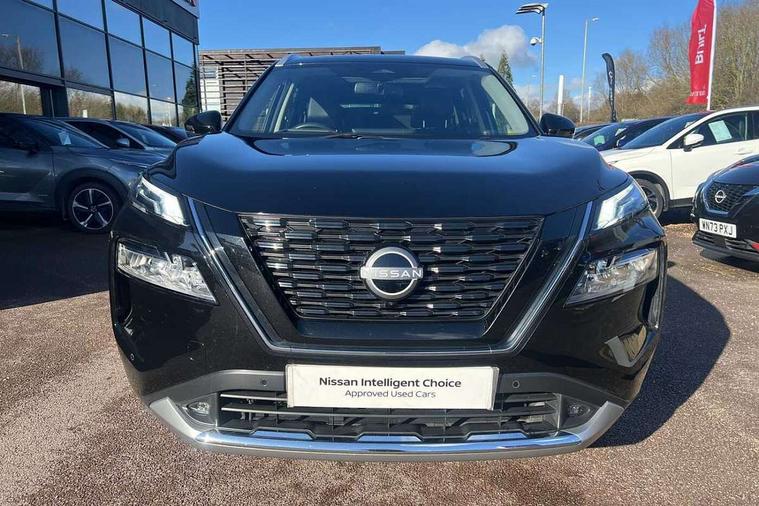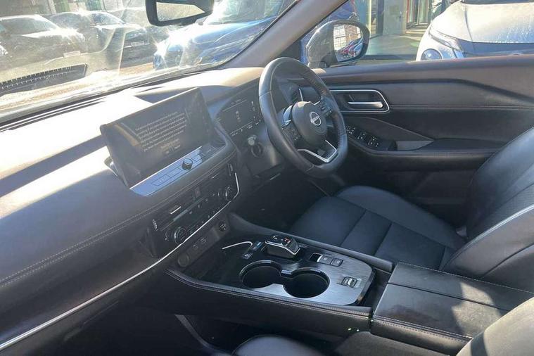 Advanced 10.8" head up display, Android auto/Apple CarPlay (Wired), Blind spot warning, Drive modes (sport, normal, eco), e-Pedal step, Electric speed sensitive power steering, Emergency and breakdown call, Front and rear parking sensors, Full Digital 12.3" TFT Digital Combimeter, Google maps services - search, weather, 3D maps and Google street view, Hands free power tailgate, Idle stop/start system, Intelligent around view monitor, Intelligent driver alert system, Intelligent forward collision warning, Intelligent lane departure warning, Intelligent lane intervention, Intelligent lane keep assist, Lane departure prevention, Maximum speed limiter, Moving object detection, Nissan connect 12.3 inch touchscreen infotainment system, Nissan connect nav with TomTom traffic, Pro pilot and head up display, ProPilot park, Push button starter, Rear cross traffic alert, Rear view camera, Remote control services - door locks, lights, horn and car locator, Telematics - notifications and connectivity services, TomTom live traffic services, Traffic jam pilot, Traffic sign recognition with legal speed adjustment, Trip computer, Virtual personal assistant and firmware over the air capability, Wireless apple carplay, Wireless charging pad, 6 speakers, AM/FM audio system with DAB, Bluetooth audio streaming, Front USB connections (Type-A and Type-C), Rear USB charging only ports (Type-A and Type-C), 3rd brake light, Auto dimming rear view mirror, Auto rear wiper when reversing, Body colour mirror caps, Body coloured door handles, Bodyside mouldings, Chrome side window finisher, e-POWER badging, Electric auto folding door mirrors, Electrically adjustable and heated door mirrors, Follow me home headlights, Headlights auto levelling system, High beam assist, Intelligent auto headlights, LED daytime running lights, LED headlights with adaptive driving beam, LED rear lights, One touch front and rear electric windows with remote opening and closing, Partially body coloured bumpers, Rain sensing wipers, Rear privacy glass, Rear reversing light (bulb lighting), Rear roof spoiler, Rear side wing doors, Rear styling plate, Shark fin antenna, Splash free wipers, Super UV and infrared cut glass, Thermaclear heated windscreen, Three blink turn signal, 12v power socket in dashboard and luggage, 3 bench rear seats in 2nd row, 3 rear headrests, Butteryfly console, Chrome interior door handles, Driver and front passenger sunvisors with illuminated vanity mirrors, Driver seat back pocket, Electric adjustable 2 way lumbar support for driver, Electric adjustable 2 way lumbar support for passenger seat, Electrically adjustable driver seat, Front and rear heated seats, Front centre console and armrest, Front cupholders, Front door with bottle holders, Heated steering wheel, Height adjustable driver's seat, Height adjustable front headrests, Height adjustable passenger seat, Leather shift knob, Leather steering wheel, Luggage board system, Luggage space lighting, Multifunction steering wheel, Passenger seat back pocket, Rear armrest with 2 cupholders, Rear door bottle holders, Single front passenger seat, Sliding second row seats, Split folding 2nd row - 40/20/40, Steering column mounted gear shift paddles, Synthetic leather monoform upholstery, Tilt/telescopic adjustable steering wheel, Tri zone automatic climate control with pollen filter, Two rear isofix child seat anchorage points with top tether, Sky pack - X-Trail, 3x3 point rear seatbelt pretensioners + load limiters, ABS with EBD and brake assist, Active brake limited slip, Auto hold function, Child locks on rear doors, Curtain and front side, far side airbags, Driver and passenger airbags, Driver, passenger and 2nd row rear seat belt reminder, Electronic parking brake, Front seatbelt pretensioners + load limiters, Height adjustable front seatbelts, Hill start assist, Intelligent blind spot intervention, Intelligent front emergency braking with pedestrian, cyclist recognition and junction assist, Intelligent rear automatic braking, Tyre pressure monitoring system, Vehicle dynamic control, Engine immobiliser, Intelligent Key, Remote central door locking with deadlocking, Thatcham Cat.1 alarm, 19" Diamond cut alloy wheels, Tyre puncture repair kit,
