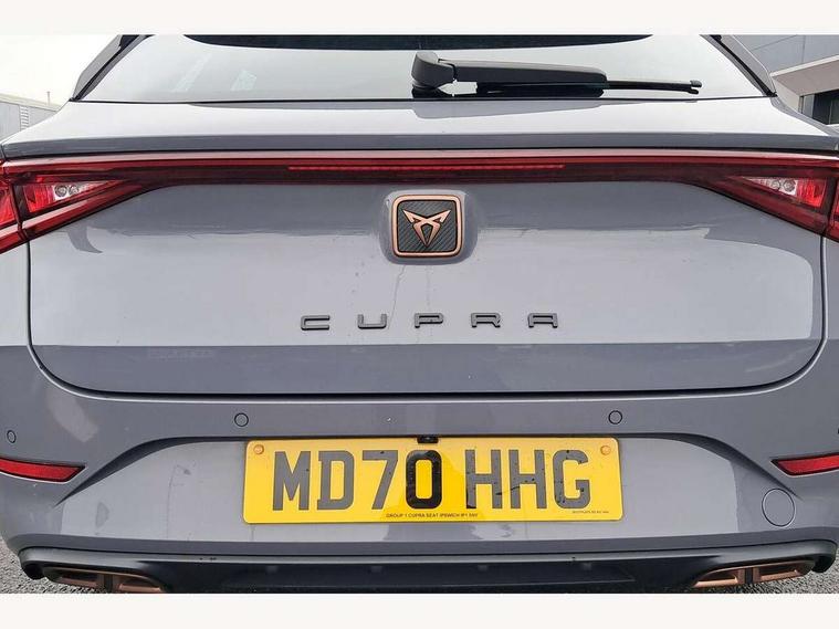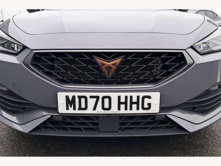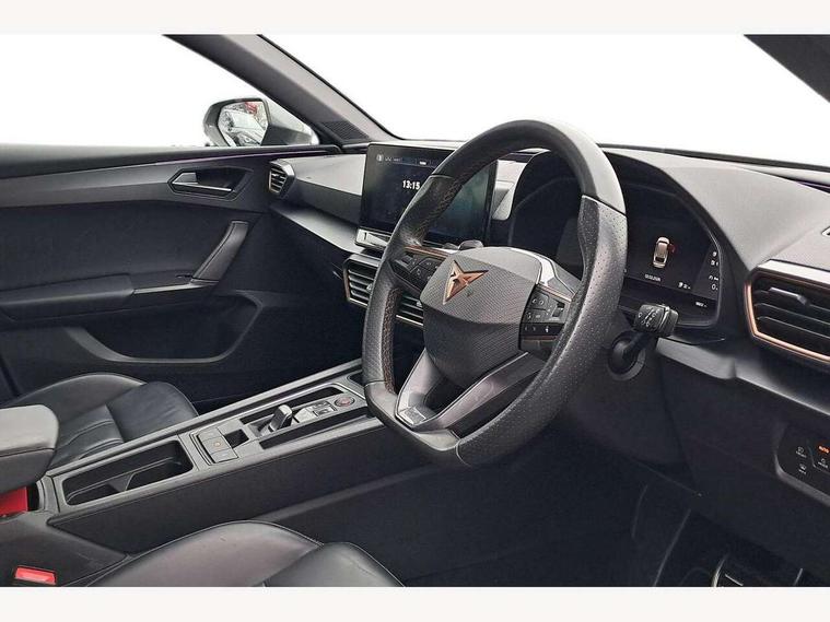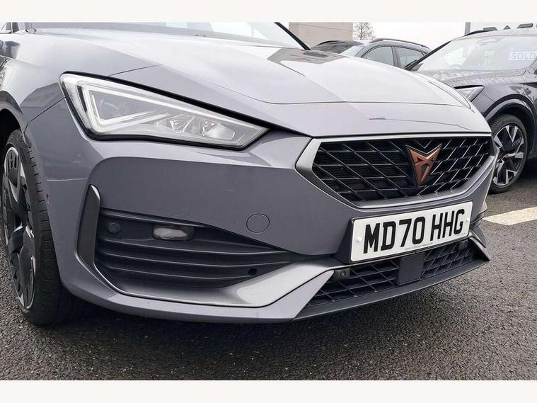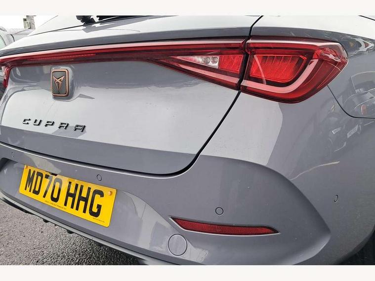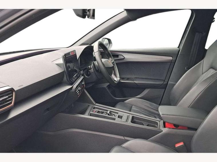 Cruise control with speed limiter, CUPRA drive profile selection with 4 modes (Comfort/Cupra/Sport/Individual), throttle response and gearshift mode, Digital cockpit, Front assist with forward collision warning braking reaction to vehicles, pedestrians and cyclists, Full link smartphone integration with Mirror Link, wireless Apple CarPlay and wired Google Android Auto, Lane keeping system, Lockable tailgate, Park assist (inc front/rear parking sensors), Rear view camera, RPM, trip computer, outside temp gauge, instrument light brightness, low fuel warning light, lights on reminder, gearshift indicator, Service interval indicator, Start/stop system with regenerative braking, Virtual pedal with electric tailgate, Wireless phone charger, 10 amp mode 2 charging cable, 3.6 kw On-board charger, Standard suspension, XDS electronic differential lock and dynamic traction support, 7 speakers, Auxiliary input socket, Auto dimming rear view mirror, Body colour door handles, Body coloured bumpers, Cupra sports bumpers, Dark tinted rear windows, Electric front/rear windows, Electrically adjustable, heated and folding door mirrors, Gloss black roof rails, LED front fog lamps with cornering function, LED headlights and tail lights with dynamic turn signals, welcome light silhouette from exterior mirrors and dynamic headlight range control, LED rear fog lamp, Rain sensing wipers, Rear coast to coast lighting, Rear diffuser with twin exhaust pipe on each side with simulated exhausts, Rear wash/wipe, Separate daytime running light with automatic headlight control and coming home feature, 12v power supply in centre console, 12v socket in loadspace, 5 headrests, 60/40 split rear bench seat with armrest, Ambient lighting in door trim, Black headlining, CUPRA Leather flat bottomed, heated, perforated steering and gearshift paddles, Cupra sports pedals, Dust/pollen filter, Four x USB Type C ports, Front and rear reading lights X 4, Front centre armrest, Genuine nappa leather upholstery with copper stitching + Cupra embossed logo on headrest, Heated front seats, Height/reach adjust steering wheel, Illuminated interior front door sills, ISOFIX points in outer rear seats with top tether anchorage points, Luggage tie-down hooks, Powered driver seat with memory and manual height adjustment for passenger, Powered lumbar adjustment on driver side, manual on passenger side, Sliding boot cover, Sports bucket seats, Storage pockets on rear of front seats, Sunvisors with illuminated mirror, Three zone climate control, Dynamic and comfort pack - Leon Cupra, Media system plus with navigation pack - Leon Cupra, 3 point seatbelts on all rear seats, ABS, Brake control system - ESC and brake booster, Child proof door locks, Cupra black brake calipers, Driver and front passenger airbags with front passenger airbag de-activation, front side and curtain airbags, Electronic parking brake, Extended safety system - seat belt tensioner, window closure and hazard lights, Hill hold control, Rear disc brakes, Seat belt reminder for front and rear seats, Tiredness recognition system, Tyre pressure monitoring system, Anti theft alarm system with interior monitoring in cab, backup horn and towing protection, KESSY Advanced - Keyless start, keyless entry, Locking wheel bolts, Chrome and copper interior detailing, 19" Aerodynamic machined sport black and silver alloy wheels with 91Y tyres, Emergency tyre repair kit, Tool kit,