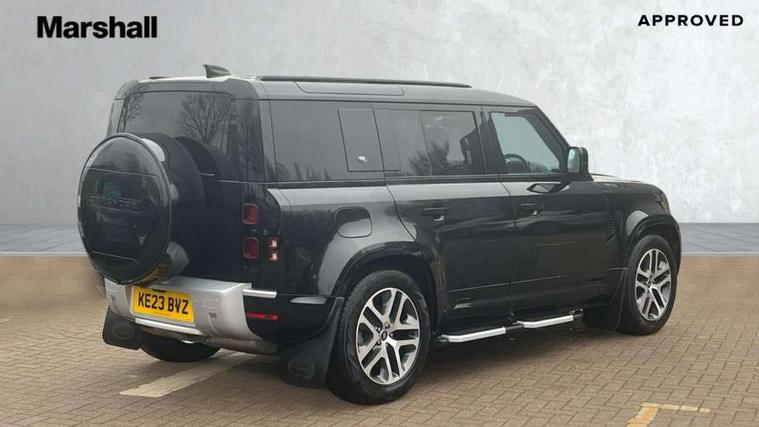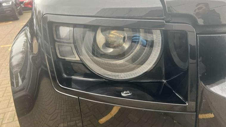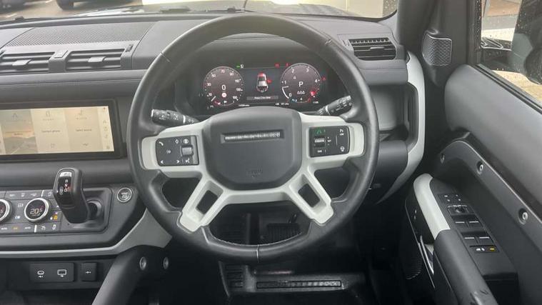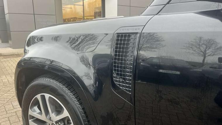 360 degree parking aid, 3D Surround Camera with 360 View, 180 Rear View, Front Traffic Detection, Forward Vehicle Guidance, Tow Hitch Assist and clear sight Ground View, Android Auto, Apple CarPlay, Assisted tailgate with soft close, Blind spot assist, Bluetooth system, Brake pad wear indicator, Clear exit monitor, Connected navigation pro, Cruise control + speed limiter, Driver condition monitor, Electric power assisted steering (EPAS), Interactive driver display, Lane keep assist, Push button start, Rear traffic monitor, Traffic sign recognition with adaptive speed limiter, Trip computer, Wade Sensing, 8 speed automatic transmission, Adaptive dynamics, All wheel drive system, Electronic air suspension, Twin speed transfer box, DAB Radio (Digital Audio Broadcasting), Pivi pro connected, Automatic headlight levelling, Automatic headlights, Body coloured roof, Centre high mounted stop light, ClearSight interior rear view mirror, Electric heated/power fold door mirrors with approach lights and auto dimming driver side, Electric windows with one touch open/close and anti-trap, Follow me home lighting, Front fog lights, Heated rear window with timer, Heated windscreen, Illuminated metal treadplates with brand name script, LED tail lights, Matrix LED headlights with signature DRL, Privacy glass, Puddle lights, Rain sensing windscreen wipers, Rear fog lights, Rear side wing doors, Rear wiper, Side hinged tailgate, Signature graphic (with interior storage), Sliding panoramic roof, Trailer stability assist, 12 way heated and cooled electric memory front seats with 2 way manual headrests, 12V power socket in loadspace, 3 seat bench in 2nd row, 40:20:40 folding rear seats with centre armrest, Alpine lights, Configurable cabin lighting, Durable rubber cabin flooring, Durable rubber loadspace flooring, Electric cabin pre conditioning, Electric reach + rake adjustable steering column, Footwell lights, Front centre console refrigerator compartment, Front passenger isofix child seat attachment, Grained Leather upholstery, Heated steering wheel, Leather gearshift, Light oyster morzine headlining, Loadspace cover, Loadspace Hook, Multifunction steering wheel, Overhead stowage for sunglasses, Premium cabin lighting, Rear headrests, Rear ISOFIX, Rear reading lights, Single front passenger seat, Standard interior, Standard leather steering wheel, Standard seat configuration, Storage glovebox, Sunvisors with illuminated vanity mirrors, Online pack with data plan - Defender, XS Edition exterior pack - Defender, 5 x 3 point seatbelts, ABS, Brake hold function, Cornering brake control (CBC), Cross car beam in light grey powder coat brushed finish, Customer configurable autolock, DSC - Dynamic Stability Control, EBD - Electronic brakeforce distribution, Electric parking brake (EPB), Emergency brake assist, Emergency braking, ESP + traction control, Front airbags with passenger seat occupant detector, HDC - Hill descent control, Hill launch assist, Low traction launch, Power operated child locks, Remote for (e-Call, Optimised assistance call, InControl app, Climate, beep and flash and door), RSC - Roll stability control, Seat belt reminder, TPMS (Tyre pressure monitoring system), Alarm, Immobiliser, Intrusion sensor, Keyless entry, Locking wheel nuts,