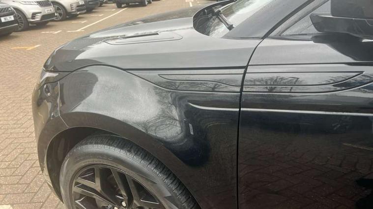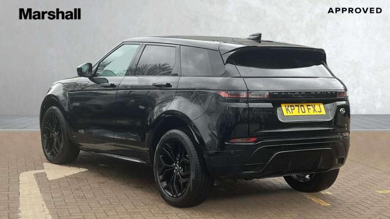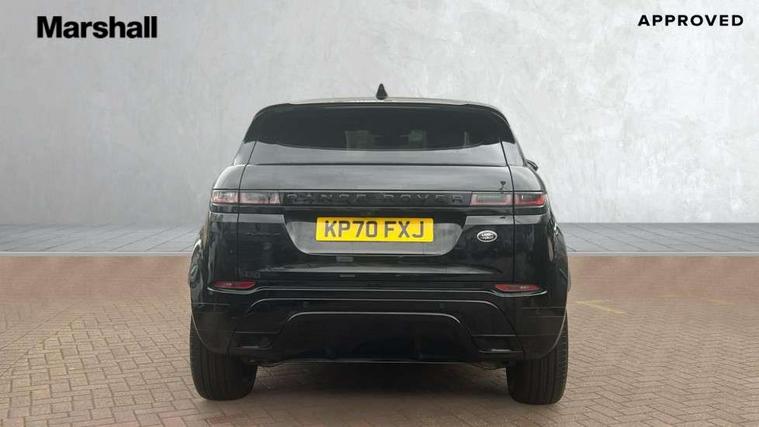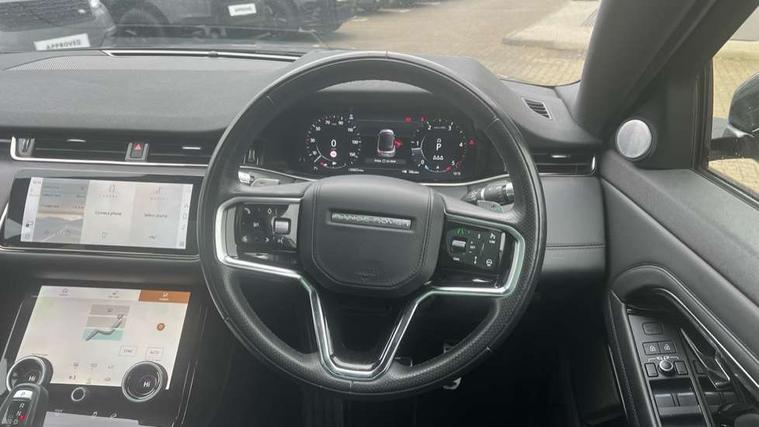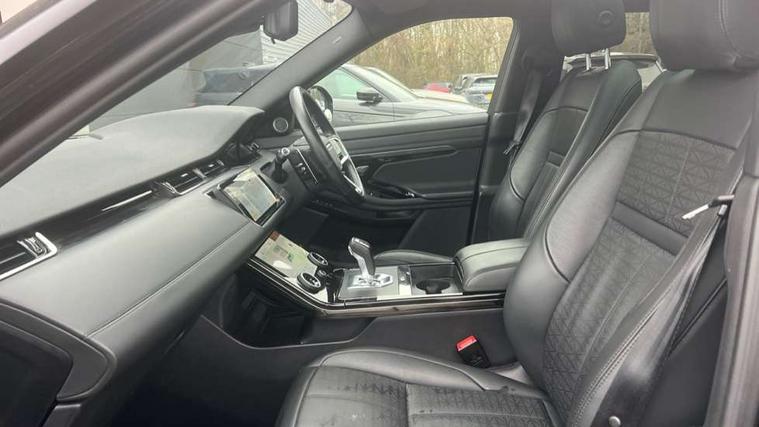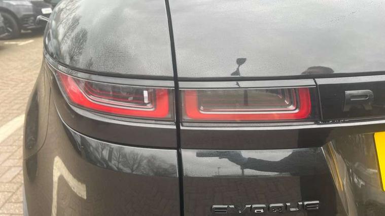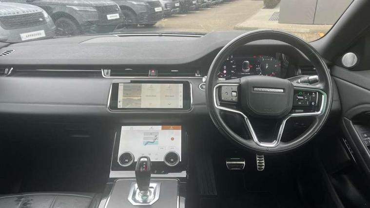 3D 360 degree surround camera, Adaptive cruise control, Android Auto, Apple car play, Blind spot assist, Bluetooth connectivity, Brake pad wear indicator warning light, Clear exit monitor, Driver condition monitor, Duo touch pro, Electronic power assisted steering (EPAS), InControl remote, Interactive Driver display instrument cluster, Land Rover InControl apps, Lane keep assist, Pivi pro connected includes upgraded infotainment, connected navigation pro, Nuance speech licence, Powered gesture tailgate/boot lid, Push button starter, Rear collision monitor, Rear traffic monitor, Traffic sign recognition with adaptive speed limiter, Voice control system, Wade Sensing, All terrain progress control, Efficient Driveline, Passive suspension, Terrain Response 2 Auto, Digital Audio Broadcast radio-DAB, Steering wheel mounted controls, Automatic headlight levelling, ClearSight interior rear view mirror, Electric windows with one touch open/close and anti trap, Evoque and R-Dynamic badge, Flush deployable exterior door handles, Heated rear window with timer, Heated washer jets, Heated windscreen, Power fold, auto-dimming, heated door mirrors with approach lights and auto dimming driver side, Rain sensing windscreen wipers, Rear fog lights, Shadow atlas bonnet and tailgate script, Tailgate spoiler, 40:20:40 split folding rear seats with centre headrest and armrest, Ambient interior lighting, Bright metal pedals, Isofix system on outer rear seats, Overhead lighting console, Overhead stowage for sunglasses, Passive front head restraints, R-Dynamic branding illuminated metal tread plates in loadspace and row 1 with brand name script and non illuminated metal in row 2, Rear air vents, Rear centre headrest, Satin chrome gearshift paddles, Sunvisors with illuminated vanity mirrors, Twin sliding front centre armrest, 3 rear 3 point seatbelts, Anti-lock braking system (ABS), Customer configurable autolock, DSC - Dynamic Stability Control, Electronic brake force distribution, Electronic parking brake, Electronic traction control, Emergency braking, Front and rear seatbelt reminder, Hill descent control, Hill launch assist, Low traction launch, Power operated child locks, Roll stability control, Six airbags - Driver and passenger airbags/driver knee airbag/front side airbag and curtain airbags, Torque vectoring brake, Tyre pressure monitoring system, Alarm, Immobiliser, Intrusion sensor, Keyless entry, Locking wheel nuts,