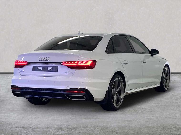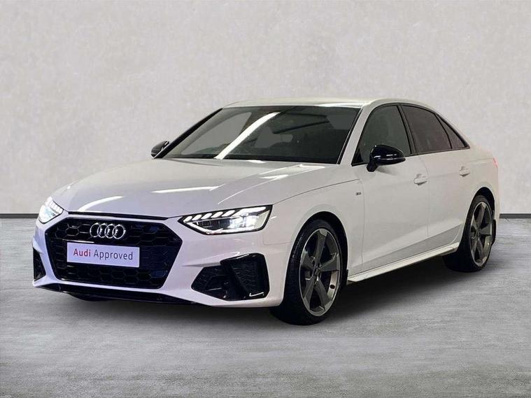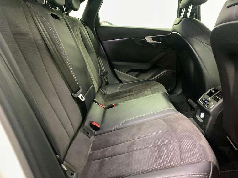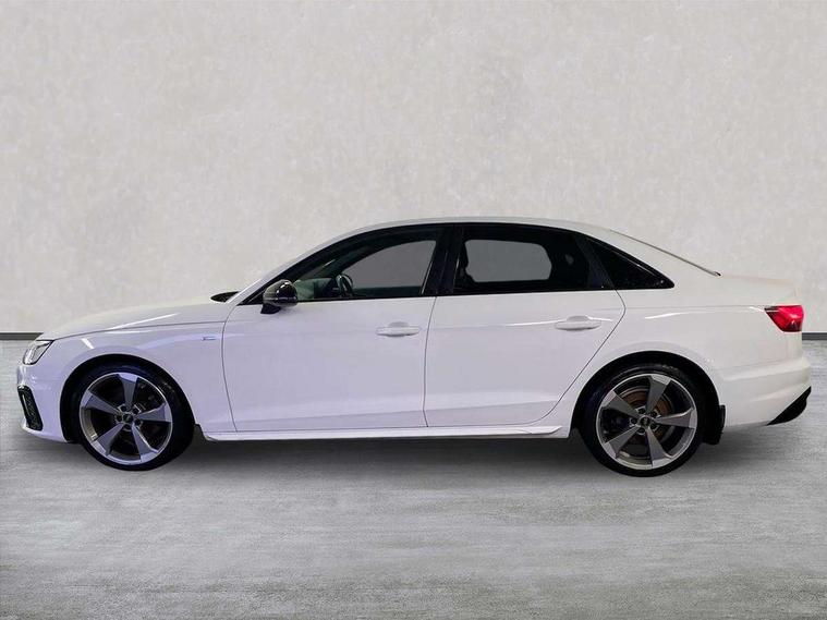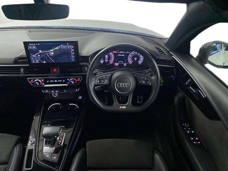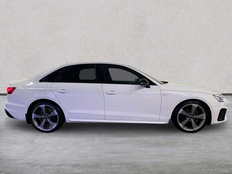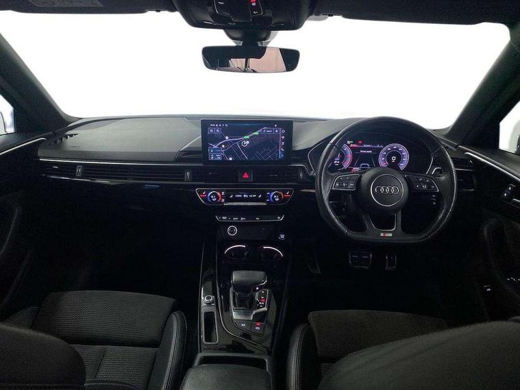 Audi connect safety and service (e-call), Audi drive select, Audi parking system plus with front and rear sensors, Audi smartphone interface, Audi virtual cockpit, Automatic start-stop system with coasting functionality and efficiency programme, Bluetooth interface, Electric boot lid release, Electromechanical power steering, MMI Navigation plus with MMI touch includes 10.1" high resolution colour MMI display, 3D map, Rear view camera, Voice control system, Sports suspension lowered by 23mm, 2 USB charging ports, 8 passive loudspeakers, DAB digital radio reception, Auto dimming rear view mirror, Body colour door handles, Body colour front spoiler lip, Body colour side sill trim, Electrically folding auto dimming/adjustable/heated door mirrors with LED side indicators and kerb view function for passenger side, Grained matt black side air inlets with matt aluminium silver inlay, High beam assistant, LED headlights with LED rear lights + dynamic rear indicators + headlight adjustment and high beam, turning light + LED daytime running lights, Matt aluminium silver tailpipe trim, Privacy glass, Rain and light sensors, S Line badges on the front wings, S line front and rear bumpers with side skirts, S Line rear diffuser in matt titanium black with trim strip in matt aluminium silver, Windscreen with acoustic glazing, 3 spoke flat bottomed high multi-function leather sport steering wheel with gearshift paddles, 4 way electric lumbar support for driver and front passenger, 40/20/40 split folding 3 rear seat bench in 3 parts with rear centre armrest, Black cloth headlining, Black perforated leather gearknob, Contrast stitching on seats, steering wheel and gear lever gaiter, Deluxe 3 zone electronic climate control, Door sill trims with aluminium inlay, Front and rear head restraints, Front centre armrest, Heated front seats, Illuminated door sill trims with S logo, ISOFIX child seat mounting and top tether, Manual seat adjustment, Stainless steel pedals and foot rest, LED Interior light pack - A4/S4, Titanium black styling pack - A4 Saloon, 3 rear seatbelts, 6 airbags - Driver, front passenger, curtain and side windows, Electronic Stabilisation Control (ESC) including ABS, ASR and EDL, Hill hold assist, Multi collision brake assist, Pop-up bonnet for pedestrian protection, Pre sense city, Seatbelt monitoring, Warning triangle and first aid kit, Anti theft alarm, Anti theft wheel bolts, Keyless Go, Piano black finish inlay, 19" 5 arm rotor design alloy wheels titanium matt look, Tool kit, Tyre repair kit,