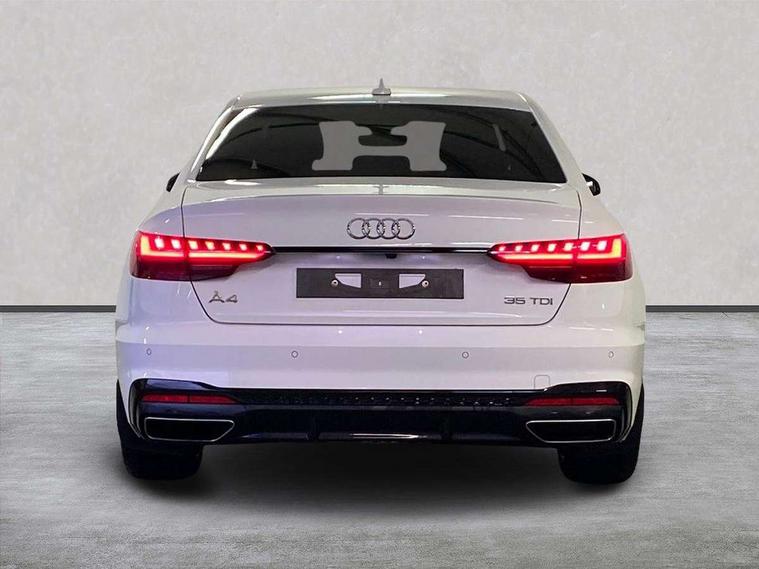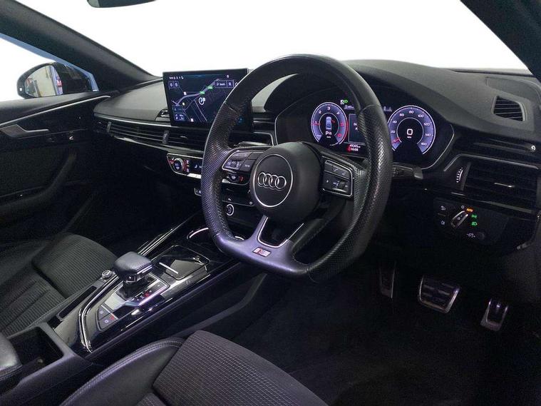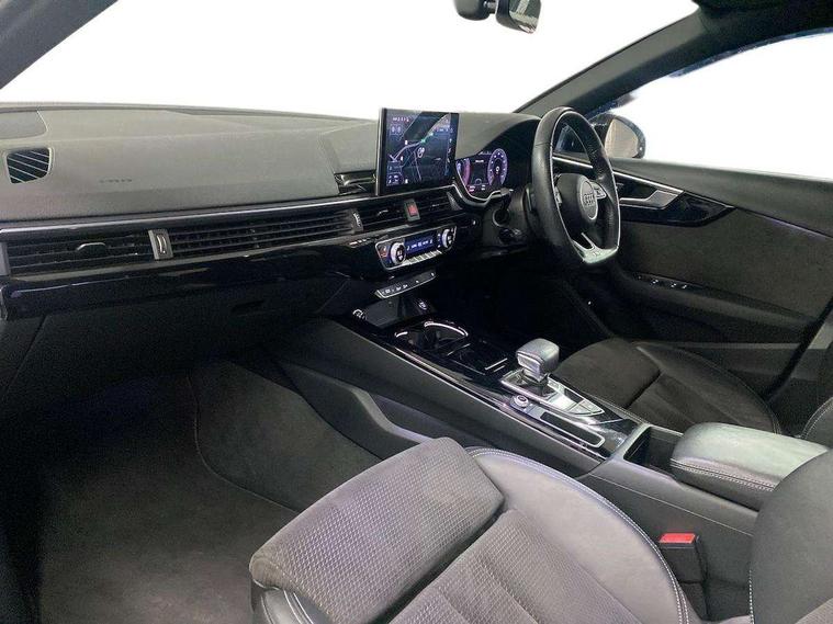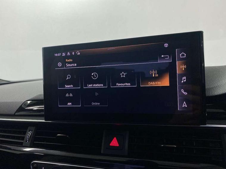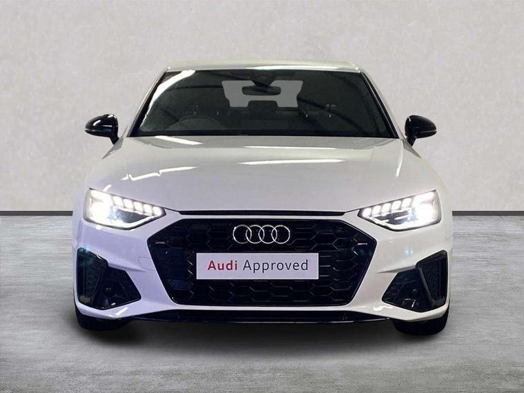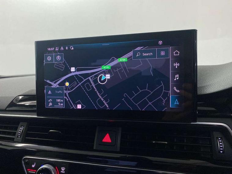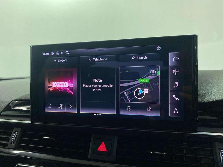 Audi connect safety and service (e-call), Audi drive select, Audi parking system plus with front and rear sensors, Audi smartphone interface, Audi virtual cockpit, Automatic start-stop system with coasting functionality and efficiency programme, Bluetooth interface, Electric boot lid release, Electromechanical power steering, MMI Navigation plus with MMI touch includes 10.1" high resolution colour MMI display, 3D map, Rear view camera, Voice control system, Sports suspension lowered by 23mm, 2 USB charging ports, 8 passive loudspeakers, DAB digital radio reception, Auto dimming rear view mirror, Body colour door handles, Body colour front spoiler lip, Body colour side sill trim, Electrically folding auto dimming/adjustable/heated door mirrors with LED side indicators and kerb view function for passenger side, Grained matt black side air inlets with matt aluminium silver inlay, High beam assistant, LED headlights with LED rear lights + dynamic rear indicators + headlight adjustment and high beam, turning light + LED daytime running lights, Matt aluminium silver tailpipe trim, Privacy glass, Rain and light sensors, S Line badges on the front wings, S line front and rear bumpers with side skirts, S Line rear diffuser in matt titanium black with trim strip in matt aluminium silver, Windscreen with acoustic glazing, 3 spoke flat bottomed high multi-function leather sport steering wheel with gearshift paddles, 4 way electric lumbar support for driver and front passenger, 40/20/40 split folding 3 rear seat bench in 3 parts with rear centre armrest, Black cloth headlining, Black perforated leather gearknob, Contrast stitching on seats, steering wheel and gear lever gaiter, Deluxe 3 zone electronic climate control, Door sill trims with aluminium inlay, Front and rear head restraints, Front centre armrest, Heated front seats, Illuminated door sill trims with S logo, ISOFIX child seat mounting and top tether, Manual seat adjustment, Stainless steel pedals and foot rest, LED Interior light pack - A4/S4, Titanium black styling pack - A4 Saloon, 3 rear seatbelts, 6 airbags - Driver, front passenger, curtain and side windows, Electronic Stabilisation Control (ESC) including ABS, ASR and EDL, Hill hold assist, Multi collision brake assist, Pop-up bonnet for pedestrian protection, Pre sense city, Seatbelt monitoring, Warning triangle and first aid kit, Anti theft alarm, Anti theft wheel bolts, Keyless Go, Piano black finish inlay, 19" 5 arm rotor design alloy wheels titanium matt look, Tool kit, Tyre repair kit,