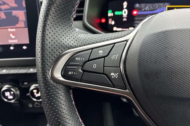 10" customisable digital driver display, Active cruise control with stop and go + speed limiter, Apple car play/Android Auto, Blind spot warning, Driver attention warning, Easy link 9.3" touchscreen with built in navigation + Wifi smartphone integration plus, Eco mode driving function, Emergency call system, Front park assist, Front parking sensors, Lane departure prevention, Lane departure warning system, Lane keep assist, Multisense 3 driving modes including ambient lighting, Over speed prevention, PAS, Rear cross traffic alert, Rear park assist, Rear parking sensors, Rear view camera, Saftey shield [button for personalisation configuration of key ADAS features], Start/stop system, Traffic sign recognition, Wireless phone charger, 2 USB ports, Arkamys speakers - x6 inc. 2 boomer, 2 tweeter and 2 bicone, Bluetooth, 1x jack, 1x aux socket, DAB/FM Radio, Automatic headlights, Automatic high / low beam, Automatic windscreen wipers, Black auto folding wing mirrors with defrosting and temperature gauge and LED indicator, Body colour bumpers, Body colour door handles, Electric rear windows, Electrically adjustable door mirrors, Electrochromatic frameless rear view mirror with light and rain sensor, Exhaust pipe, Exterior rear hidden door handles, Front and rear LED roof light x 2, Front fog lights, Full LED front and rear headlamps integrating daytime running lights at the front and rear, Heated rear windscreen, LED rear signature lighting, LED third brake light, Matte shadow grey F1 blade, One touch electric front windows, Rear brake light, Rear side wing doors, Rear wiper, Shadow grey insert on lower side doors, Shadow grey side window surrounds, Shadow grey upper grille, Shark fin antenna, Tinted rear windows, 3 rear height adjustable headrests, 3 seat bench in 2nd row, 60/40 split and fixed base rear seat bench, Aluminium pedals, Automatic air conditioning, Black armrests in door panel, Centre console armrest, Fabric seat with synthetic leather detailing upholstery, Floating console with storage, Heated front seats, Heated steering wheel, Height adjustable front headrests, Isofix system on outer rear seats, Mechanical height adjustable front seats, Power supply jack, Single front passenger seat, Sun visor without light, Top grain synthetic leather steering wheel with blue stitching, 3 point seatbelts on all rear seats, ABS, Automatic emergency braking system with emergency brake assist, Child locks on rear doors, Curtain airbags, Distance warning alert, Driver and passenger airbags, Electronic brake force distribution, Electronic parking brake with auto hold, ESC (Electronic Stability Control), Front passenger airbag deactivation, Front side airbags, Height adjustable passenger seatbelt, Hill start assist, Seatbelt reminder, Tyre pressure monitor, 2x Black keys, Hands free key card with push button, start and stop function, RAID (Renault Anti-Intruder Device) automatic door locking, Superlocking, Dark interior roof trim, 17" Esprit alpine diamond cut alloy wheels,