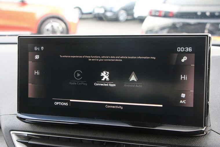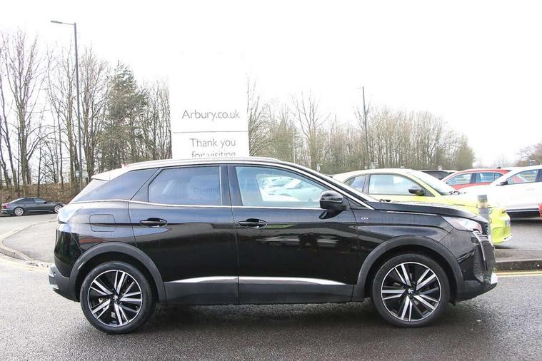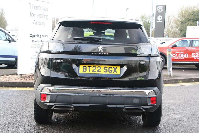 3D connected navigation with 10" HD touchscreen, Bluetooth telephone facility, Drive modes select (Eco, normal and sport), Driving Time Warning (DAA1), Emergency services call system, Extended traffic sign recognition, Exterior temperature indicator with ice warning, Front and rear parking sensors, Mirror screen with mirror link, apple carplay and android auto, Multi function trip computer, Passive blind spot monitoring without Steering correction, PEUGEOT i-Cockpit with 10" high definition capacitive touchscreen, Peugeot i-cockpit with compact multi-function sports steering wheel, PEUGEOT i-Cockpit with configurable 12.3" Head-up digital instrument panel, PEUGEOT SOS and assistance, Rear passenger USB charging sockets (x2) (type A), Speed limit recognition and recommendation, Visio park assist 360 with colour camera system + automatic parking assist, Voice recognition, Dynamic stability control and electronic anti-skid system, Stop/start function, DAB Digital radio, Focal premium HiFi sound system, USB socket, Auto self levelling headlights, Automatic hazard light activation upon heavy brake application, Automatic triggered rear windscreen wiper in reverse gear, Black with chrome detailed front wing trim, Body colour door handles, Body colour rear roof spoiler with stainless steel edging trim, Body protectors (bottom of front and rear bumpers + wheel arches + protection at bottom of doors) in black, Dark tinted rear side windows + tailgate window, Diamond Black door mirror shells, Door mirror mounted LED courtesy floor lighting, Electric folding door mirrors with exterior courtesy LED lighting, Electric operated/heated door mirrors, Fog Mode, Front windscreen wiper with magic wash cleaning system, Full LED headlights with LED fog lights with static cornering function, Gloss black B and C pillar and aerodynamic deflector trim, Gloss black front bumper air scoops, Gloss black rear cluster connecting strip, Gloss black windscreen trim, GT emblem in satin copper (front wings and tailgate), Headlights left on audible warning, Heated rear windscreen with integrated antenna, LED daytime running lights, LED front indicator, LED rear number plate lighting, LED side indicator lights integrated into door mirrors, LED third brake light, One touch electric front/rear windows with pinch protection, Rear LED Peugeot signature 'Claw Effect' lights, Rear side wing doors, Stainless steel roof arches, Twin exhaust tailpipe, 1/3 to 2/3 split folding rear seats, 12V Sockets in dashboard, rear cabin and load area, 2 cupholders in front centre console, 2 cupholders in rear armrest, 2 x Rear reading spotlights, 2x Rear coat hooks, 3x Isofix child seat fittings in the front passenger and outer rear seats, 4 Grab handles retractable and damped, Aikinite stitching in armrest, gear lever and dashboard facia, Aluminium pedals, Blue ambient lighting for connecting zone, Blue ambient lighting to front door panels, central storage and cupholders, Blue ambient lighting to headup instrument panel, Centre front armrest with butterfly wing opening and illuminated storage compartment, Dual zone automatic climate control, Electric power steering with reach and rake adjustable steering column, Flocked front door pocket interior with blue ambient lighting, Flocked glovebox interior, Focal tweeter speaker grilles in Belem bronze metal effect finish, Foldable front passenger seat with picnic table, Footwell illumination, Front interior light with 2 reading spotlights and rear interior light with timer, Front passenger seat manual adjustment (longitudinal and back rest angle), Front seat back map pockets, Gear shift indicator, Illuminated glovebox, Individual left and right controls in boot for seat folding, LED interior lighting in storage spaces and load area, LED roof interior lighting, Mistral floor mats with Aikinite contrast stitching, Mistral full grain perforated leather steering wheel with aikinite stitch detail and satin chrome 'GT' emblem, Rear bench seat with central armrest and ski hatch, Rear centre console ventilation system, Roof lining - Mistral black, Satin chrome dashboard trim, Satin chrome digital instrument panel and touchscreen trim, Satin chrome front door panel recess trim, Satin chrome interior door handles, Satin chrome scorpion's tail and toggle switch trim, Seatbelt not fastened audible and visual alert for front seats, Seatbelt unfastened on the move audible and visual alert for front and rear seats, Sunvisors with illuminated vanity mirrors, Two position boot floor, Drive assist plus pack - 3008, Driver sport pack - 3008 Auto, Safety plus pack with high beam assist - 3008, Visibility pack - 3008, 3x Rear three-point retractable seatbelts with force limiters in the outer rear seats, ABS (Anti-lock Braking System) with EBD (Electronic Brakeforce Distribution) and EBA (Emergency Braking Assistance), Adaptive driver and front passenger airbags with passenger airbag deactivation function, Driver and front passenger side airbags, Electric child locking functionality on rear windows and doors, Electric parking brake, Front and rear curtain airbags, Front optimised safety headrests and 3 x rear retractable headrests with height adjustable, Front three point retractable seatbelts with pre tensioners and force limiters, Front ventilated disc brakes and rear disc brakes, Hill start assist, Two tone horn, Automatic door locking when moving off, Electronic immobiliser, key operated exterior door lock from the left hand door, Perimetric and volumetric alarm with lift and tilt sensor, Peugeot Open and Go System, Remote control central locking with two plip keys, Puncture repair kit including compressor, sealant cartridge and towing eye,