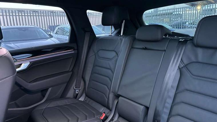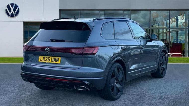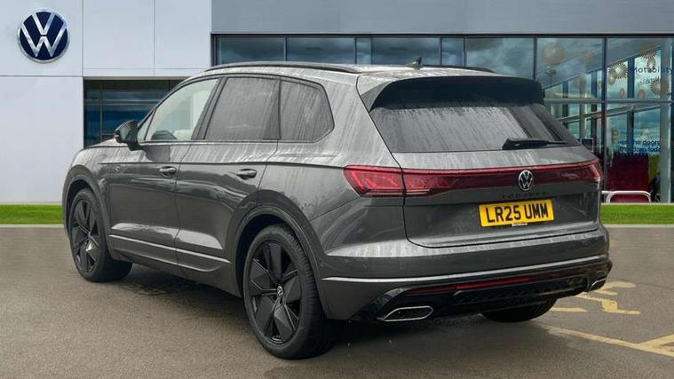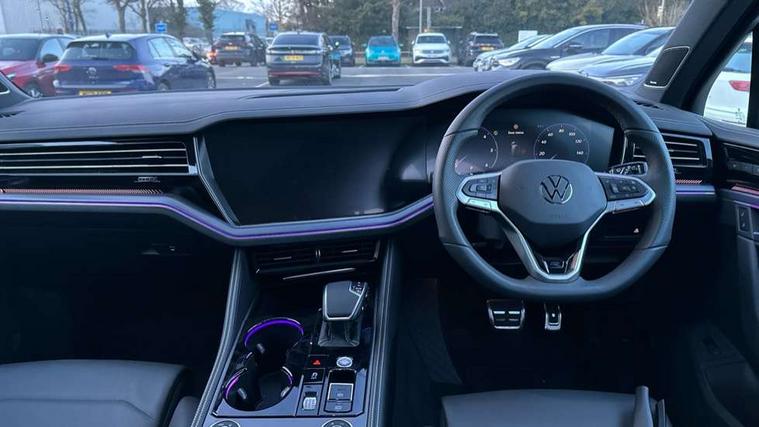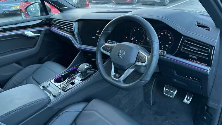 15" Screen Top infotainment system Premium (MIB3), Adaptive cruise control, Advanced driver attention and drowsiness monitor, Driver profile selection, Dynamic road sign display, E-Sim card for online connectivity, eCall emergency system, Innovision cockpit, Intelligent park assist, Mobile phone interface with inductive charging, Multi-colour Active Info display, Park Assist - Sensor controlled steering aid to assist parallel or bay parking, PAS, Warning signal and warning light for front and rear seatbelts not fastened, Wireless app connect, Adaptive chassis control, DAB Digital radio, Diversity antenna for AM/ FM reception, We Connect and We Connect Plus functionality, Automatic coming/leaving home lighting function, Automatic headlights, Black door mirrors, Black style comfort bumpers, Dynamic headlight range control with dynamic cornering light, Electric front tilt/slide panoramic sunroof and fixed rear sunroof, Electrically power adjustable, heated, folding, auto dimming, front passenger exterior door mirror lowering function, External USB type C socket and charging sockets, Gloss black roof rails, HD LED Matrix beam plus digital headlight projection with variable light distribution, Headlight washers, Highway light, LED 3rd brake light, LED daytime running lights, LED rear combination lamp with variable lighting functions and special styling, Poor weather light, Rain sensor, Rear exhaust tailpipe, Rear fog light with back up light on both sides, Rear light bar and illuminated logo, Rear side wing doors, Rear wiper, Stainless steel door sill protection, 12V socket in centre console, 3 rear headrests, 3 seat bench in 2nd row, 4 zone climate control, Airbag label on sun visor and B-pillar, Brushed stainless steel pedals, Double sun visors with illuminated vanity mirrors, Front + rear carpet mats, Front centre armrest, Leather wrapped multifunction sports steering wheel, heated, with touch control and shift paddles, Mechanical rear seat release, Power adjustable lumbar support in front, Power seats in front, right side with memory features and seat cushion depth adjustment, Rear seat backrest and split folding with center armrest, Single front passenger seat, Memory pack plus - Touareg, 3 point seatbelts, outer rear with ECE lable, ABS, Child locks on rear doors, Curtain airbags, Driver and front passenger safety-optimised head restraints, Driver/Front Passenger airbags, Extended pedestrian protection measures, Front assist, Front seat side impact airbags, Generative braking with start and stop system, Height adjustable 3 point front seatbelts with pre tensioners, Passenger airbag deactivate switch, Three 3 point rear seatbelts, Two tone horn, Tyre pressure loss indicator, Warning triangle and first aid kit, Alarm system with interior protection, Easy open and close sensor controlled luggage compartment opening and closing with remote unlocking, Keyless Access Keyless locking and starting system with SAFELOCK, Aluminium decorative inserts, Black decorative trims, Gloss black decorative inserts in centre console, Tool kit,