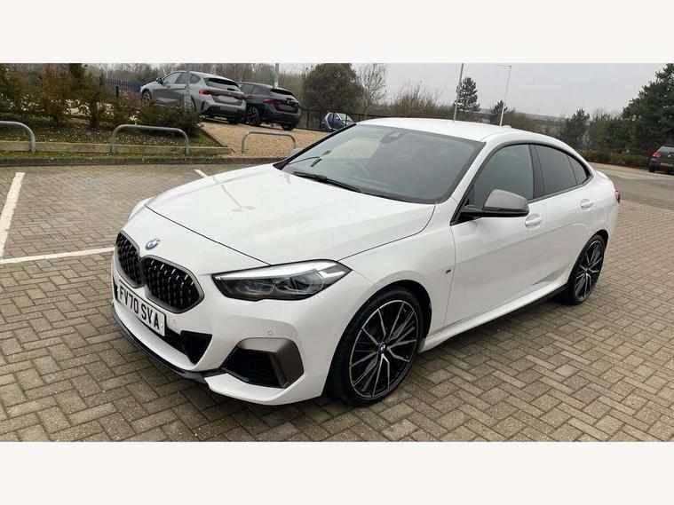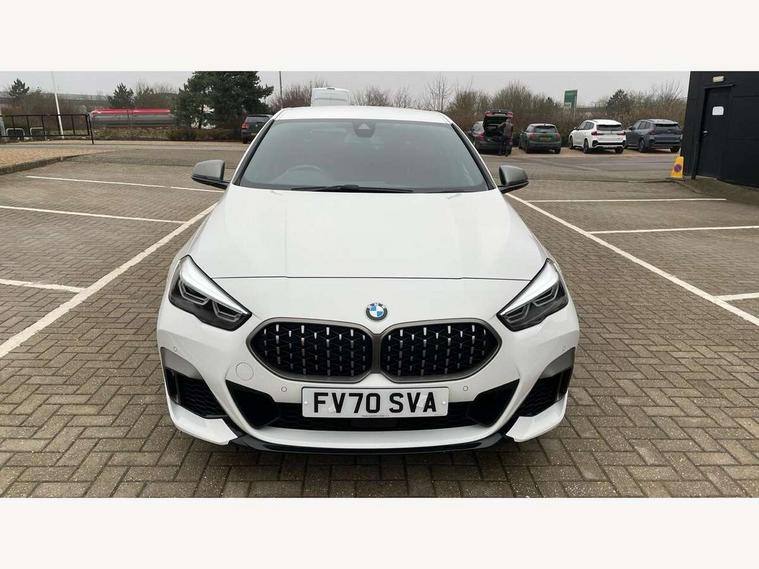 Active guard plus, Attentiveness assist, Auto start-stop, BMW Intelligent Personal Assistant, BMW Live Cockpit Professional with 10.25" high resolution instrument and control display, BMW Online services, BMW operating system with 7.0 mid interface, BMW Teleservices, Check Control warning system for monitoring of lights and door/luggage compartment open warning, Electro hydraulically controlled multi plate clutch in rear axle, Energy efficient operating strategy, iDrive controller with touch function and 7 short cut favourite buttons on centre console, Integrated navigation data with map data via USB +features such as 3D landmarks and micro city models, Integrated owners handbook, Intelligent voice assistant, M Sport steering with M235i xDrive M performance specific settings, On board computer - average speed+fuel consumption, service interval, clock/date, odometer/trip meter, outside temperature display and ice warning, Optimum shift indicator, Personal Profile, Pull away assistant, Speed limiting function, 2 balance shafts, 8 speed sport automatic transmission with electronic selector lever, auto P function, coasting idle, race track, sport, gearchange display manual mode, Aluminium lightweight construction, Double VANOS, Drive performance control with ECO PRO comfort + sport mode, Electronic differential lock, Engine cover with M performance designation, High precision injection, Larger fuel tank capacity (50 litres), Launch control, M235i specific heavily de-throttled engine intake air guide, M235i specific high-performance cooling package, M235i specific larger turbocharger with integrated divert-air valve, Petrol Particulate Filter, Power transmission of front wheel drive on the rear axle via angle transmission on the front axle differential and two part cardan shaft, VALVETRONIC engine management, Variable, stepless and infinitely adjustable distribution of drive torque between the front and rear axles, xDrive intelligent all wheel drive with M235i specific reinforced components, 2x USB Type C ports (for charging and data transfer), 4G LTE Connectivity with hard wied 4G network sim card, DAB digital radio, MP3 players and RDS double tuner, Automatically dimming rear view mirror, Body colour door handles, Direction indicator side lights integrated exterior mirrors, Electric windows - front and rear, with open/close fingertip control and trap release, Exterior mirrors - electrically folding with anti-dazzle, Fading support, Follow me home headlights, Front and rear bumper system with replaceable deformation elements, Front door sill finishers in black plastic with M235i designation, Heated, electrically adjustable exterior mirror aspheric on driver side, convex on passenger side, High gloss black B pillar finish, High gloss shadow line exterior trim, High level third brake light, LED daytime running lights, LED front fog lights, Lightweight engineering, M Performance exhaust system with valve control and minimised exhaust back pressure, M rear spoiler, Model designation on right side of tailgate includes xDrive designation onleft handside for M235i xDrive, Preparation for high beam assistant, Rain sensor with automatic headlight activation, Rear fog lights, Reinforced crank drive, new pistons and adapted con rods, Reversing light in rear light cluster, Welcome lighting, 12V power socket in centre console, 2 cupholders in front centre console, 3 rear seat head restraints, 3 spoke M sports design leather steering wheel finished in nappa leather with specific M badge, Additional under floor storage in luggage compartment, Anthracite finished floor mats with contrasting surround, Anthracite headlining, Automatic two zone climate control air conditioning, Child seat ISOFIX attachment for two outer rear seats and front passenger seat with anchorage points, Conditioned based service, Driver and front passenger seat heating, Front and rear door pockets including bottle trays, Front and rear side armrests integrated into door trim, Front armrest foldable with integrated storage compartment, Front centre interior light over interior mirror and rear centre automatic interior light when door is opened/ignition switched off or via remote key, Front head restraints, Front M Sport seats, Glove compartment, Glovebox with light, Luggage compartment lighting, Manually adjustment steering wheel column, Multi-function controls for steering wheel, Shift-by-wire selector shift, Steering wheel paddles, Sun visors with vanity mirrors and insert tab, Through loading system with 40/20/40 split folding rear seat, Two lashing eyes, Connected pack professional - 2 Series Gran Coupe, Extended Lighting pack - 2 Series Gran Coupe, Extended storage pack - 2 Series Gran Coupe, M Sport exterior styling aerodynamics pack - 2 Series Gran Coupe 235i, 2 tone horn, Airbag - Front driver and passenger, front and rear head, front side, curtain head protection, manual deactivation of front passenger airbag possible, Anti lock braking system (ABS) with cornering brake control, BMW emergency call, Brake drying, Braking readiness, Crash sensor activating of airbags, Unlocking doors, hazard warning lights, interior light, safety battery terminal, Dynamic stability control + (DSC+), Dynamic Traction Control - DTC, Electrically operated hand brake, Integrated torsen mechanical limited slip differential on front axle, M Sport braking system in blue high gloss + blue painted brake calipers with M designation, M sport seatbelt, Rear brake discs, Rear child proof door locks, Seat belt security check for driver and front passenger, Seatbelt warning, Side impact protection, Three point seat belts on all seats including front belt stopper, pyrotechnic belt tensioners and belt force limiters, Trailer stability control, Tyre pressure monitoring system, Ventilated front disc brakes, Warning triangle and first aid kit, Central locking switch for all doors, fuel filler cap and luggage compartment, Deadlocking function system to all doors, Dri