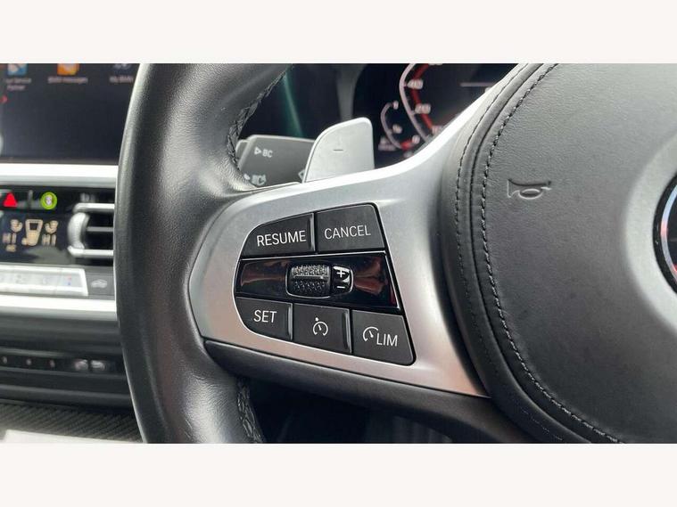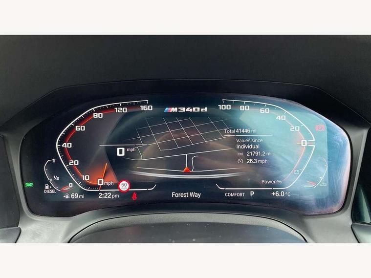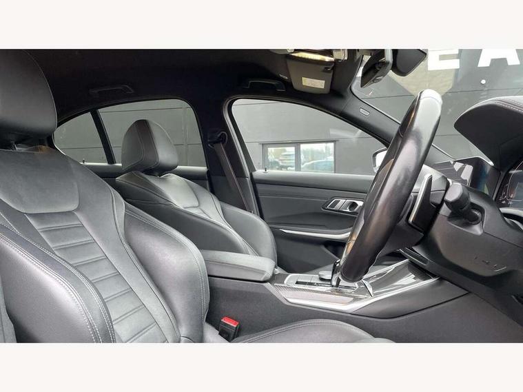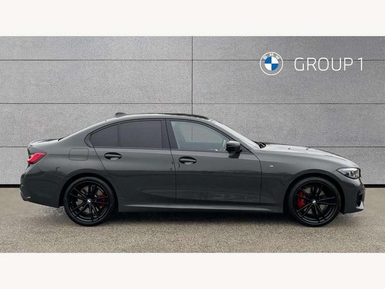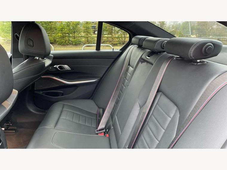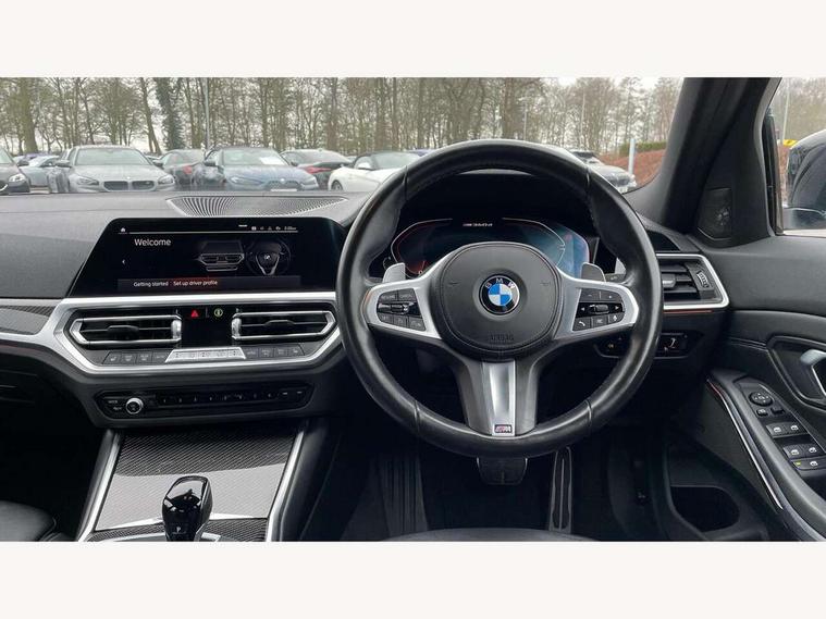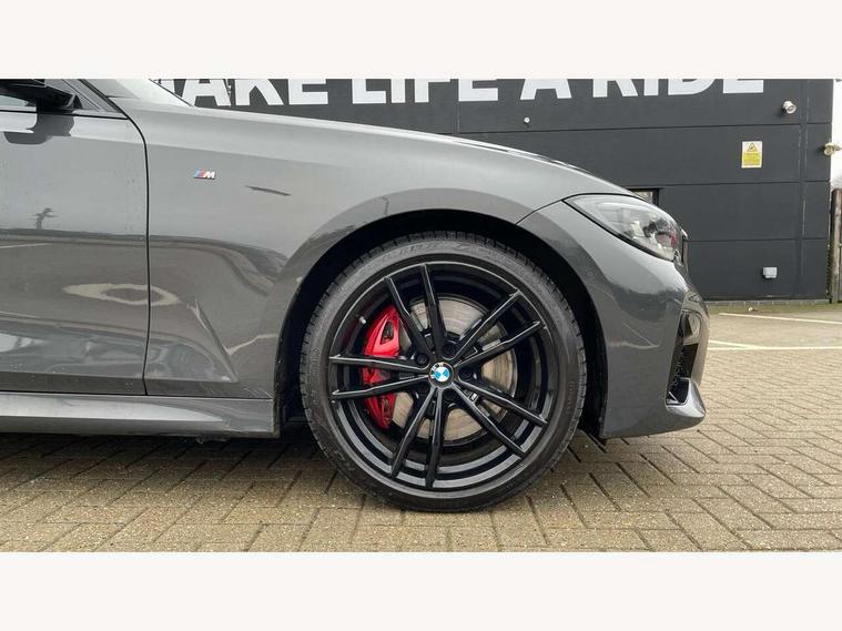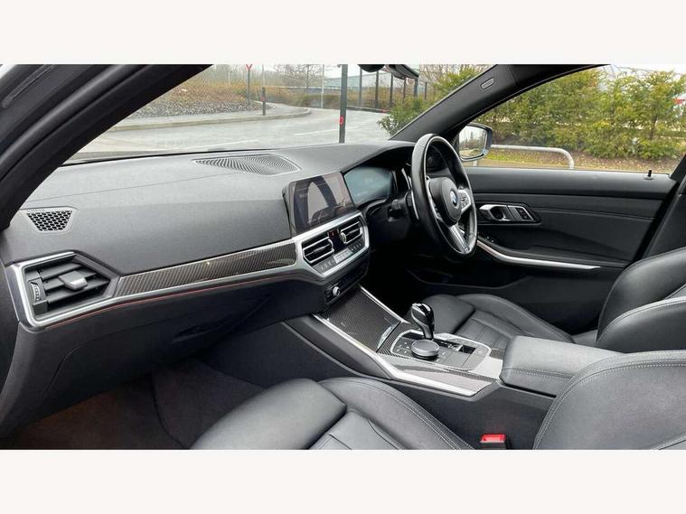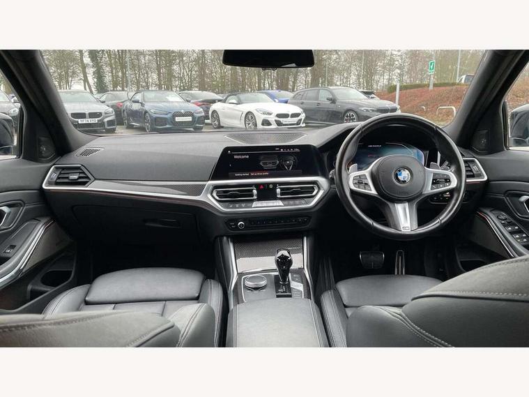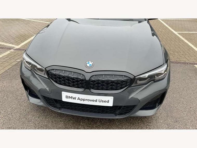Active guard plus, Attentiveness assist, Bluetooth hands free facility with USB audio interface with audio streaming, BMW iDrive controller on centre console, BMW Live Cockpit Professional Nav with 12.3" instrument display + 10.25" display, Intelligent Voice Assist, BMW OS 7, HDD, 2USB, 4G LTE connect, BMW service history, BMW Teleservices, Brake pad wear indicator in front and rear, Check Control warning system for monitoring of lights and door/luggage compartment open warning, Condition based service, Cruise control with brake function + speed limiter, Electric power steering with Servotronic steering optimised at all speed ranges, Instrument cluster with speedometer with mph readout, tachometer, fuel gauge and oil temperature gauge, Integrated owners handbook, Oil sensor for level and grade, warning by check control system, On board computer - average speed+fuel consumption, service interval, clock/date, odometer/trip meter, outside temperature display and ice warning, Optimum shift indicator, Personal Profile - automatic lock when driving away selectable, Variable sport steering, 48V Mild hybrid technology, Adaptive M suspension, Balanced 50/50 weight distribution, Battery cut-out switch, Diesel particulate filter, Drive performance control - ECO PRO, comfort and sport modes, Incorrect fuelling protection, Larger capacity fuel tank, M Sport differential, Stroke dependent dampers, DAB tuner, Electronic service booklet, 2 x square exhaust tailpipes, Acoustic glazing, Active airstream chrome frame kidney grille with 8 high gloss black vertical slats, Automatic headlight beam throw control with load dependent regulating reaction, dynamic compensation of braking dive and acceleration squat, Black roof mouldings, Body colour door handles, Body colour front and rear bumpers, Body colour fuel filler flap, Dynamic brake lights, Electric windows - front and rear, with open/close fingertip control, anti-trap facility and comfort closing, Exterior mirrors - electrically folding with anti-dazzle, Fading support, Front and rear bumper system with replaceable deformation elements, Front black door sill finishers with BMW designation, Green tinted heat protection glazing, High gloss shadow line exterior trim, Interior rear view electrochromatic mirror with automatic anti dazzle function, LED daytime running lights, LED front fog lights, Lightweight engineering, M designation on front side panels, left and right, M Sport spoiler, Matt black exterior B pillar, Model designation on right side of tailgate, Rain sensor with automatic headlight activation, Shark fin antenna, Sun protection glass, Two part LED tailights in L-shape with components in smoked glass, brake light, LED turn indicator and rear fog light, Visible VIN plate, Welcome lights in interior and door handle area, Windscreen wipers with integrated washing jets, xDrive designation on left tailgate, 12V power socket in front storage compartment, 2 front cupholder in centre console with clamping elements and matt black inlay, 3 rear seats with non folding headrests with 3 point seat belts, 3 zone automatic air conditioning, 4 pieces lashing eyelets in luggage compartment, 40:20:40 split folding rear seat with loading system, Ambient lighting with welcome carpet light, Anthracite headlining, Armrest integrated in front and rear door trim + front centre console armrest, Backrest width adjustment, Centred top Luggage compartment lights, Four grab handles integrated in roof lining, Front and rear door exit lighting (left / right), Front and rear door pockets, Front and rear reading lights, Front and rear velour floor mats, Front head restraints, Heated front seats, Height adjustable mechanically and infinitely variable steering column, Illuminated armrest storage compartment, Illuminated glove compartment with separate small compartment, Interior lighting - front centre over interior mirror with soft light, rear centre and front and rear footwell lighting, M sport leather steering wheel, Make-up mirror lights, Rear centre armrest with 2 cupholders, Rear centre console with storage compartment and ventilation grille, Sunvisors with vanity mirrors and ticket pocket, Toolkit located in luggage compartment, Connected pack professional - 3 Series Saloon/Touring, M sport exterior styling pack - 3 Series Saloon/Touring, 2 tone horn, BMW emergency call, Brake energy regeneration, Braking pre-tensioning, Child proof locking system in rear door, Child seat ISOFIX attachment rear outer seats, Coasting in idle in ECO PRO mode, Crash sensor activating of airbags, Unlocking doors, hazard warning lights, interior light, safety battery terminal, Driver and front passenger side airbags, integrated in the door side seat backrest bolsters for all seat variants, Driver/Front Passenger airbags, Dry braking, Dynamic brake control, Dynamic stability control + (DSC+) - Anti-lock Braking System (ABS) with brake assist and cornering brake control + Automatic Stability Control (ASC), Dynamic Traction Control - DTC, Electric parking brake including automatic hold function and automatic release of the parking brake when driving off, Front passenger manual airbag deactivation, Head airbags for all 4 outer seats, Hill start assist, M sport seatbelt, Seat belt security check for driver and front passenger, Side impact protection, Three 3 point seat belts on all seats including front belt stopper, pyrotechnic belt tensioners and belt force limiters, Tyre pressure monitoring with three level warning strategy, Ventilated front and rear disc brakes, Warning triangle and first aid kit, Alarm system (Thatcham 1) with remote control and electronic engine immobiliser, Central locking switch for all doors, fuel filler cap and luggage compartment, Remote control with integrated key one button open/close vehicle and windows, sole opening of the luggage compartment lid and panic mode, Start/stop button with Comfort Go keyless engine start and auto Start/stop deactivation button, Vehicle ke