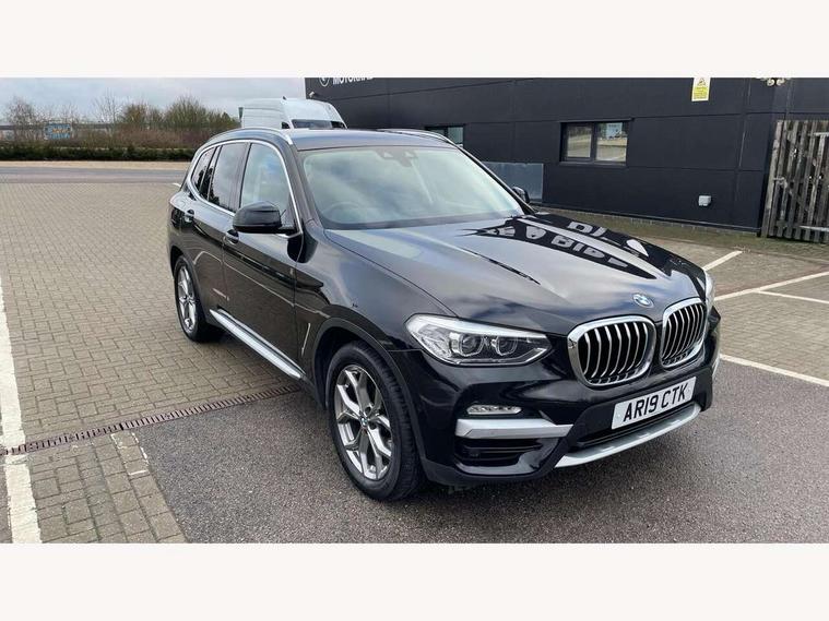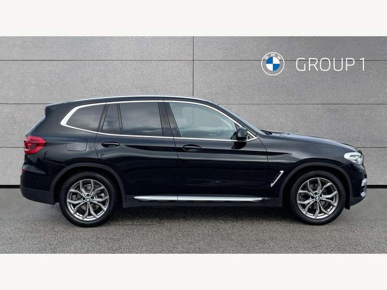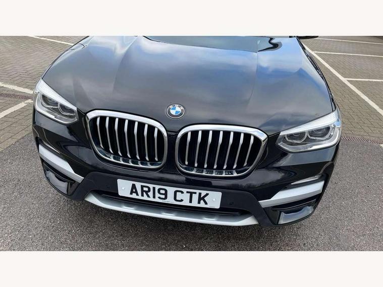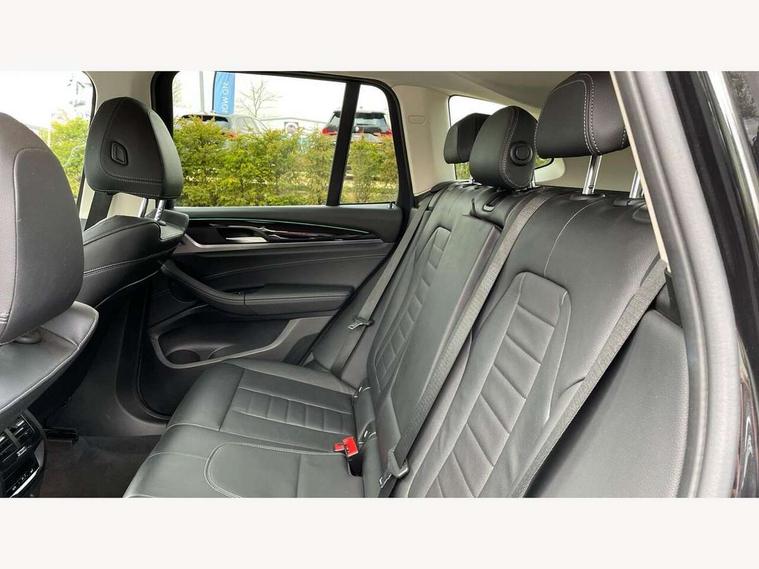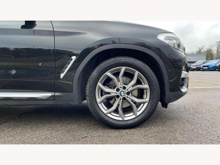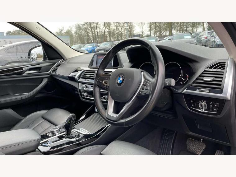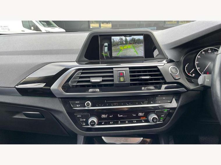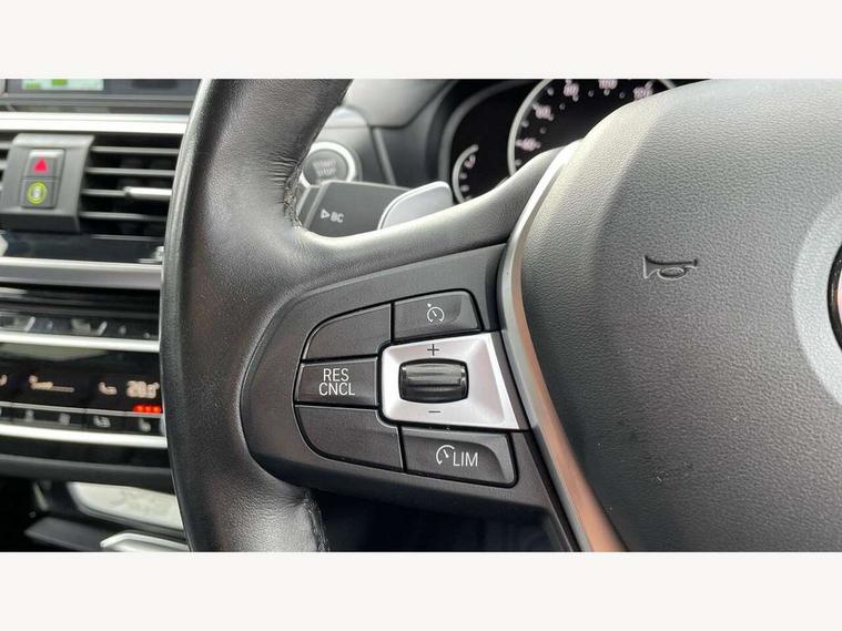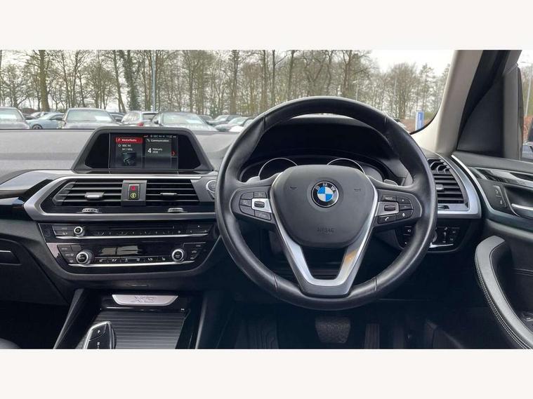 Active Guard incl speed limiting and lane departure functions with auto steering, and front collision warning with brake intervention, Attentiveness assist, Automatic tailgate operation, BMW Live Cockpit Plus with 8.8" central information display + nav function, BMW Online services, BMW Teleservices, Brake pad wear indicator in front and rear, Check Control warning system for monitoring of lights and door/luggage compartment open warning, Control display - 6.5" colour display screen, Electric Power Steering (EPS) with Servotronic, Front/rear Parking distance control, iDrive Controller with 8 favourite buttons, Instrument cluster with speedometer with mph readout, tachometer, fuel gauge and oil temperature gauge, Lights on warning by audio warning signal when ignition is switched off, Oil sensor for level and grade, warning by check control system, On board computer - average speed+fuel consumption, service interval, clock/date, odometer/trip meter, outside temperature display and ice warning, Optimum shift indicator, Personal Profile - automatic lock when driving away selectable, Stop/start system, Automatic transmission with gearshift paddles, Drive performance control with ECO PRO comfort + sport mode, Incorrect fuelling protection, Multi-link rear suspension, Auxiliary socket for external MP3 player, BMW professional radio/CD/MP3, DAB Digital radio, Acoustic glazing, Black finish on B pillars, Body colour door handles, Body colour electric adjust heated aspherical door mirrors, Body colour roof mouldings, Body coloured bumpers, Chrome kidney grille with matt aluminium vertical slats, Direction indicator, side repeaters, integrated in exterior mirrors, Dual chrome exhaust, Dynamic brake lights, Exterior mirrors - electrically folding with anti-dazzle, Fingertip control / anti-trap function on electric window, Follow me home headlights, Front and rear bumper system with replaceable deformation elements, Front and rear electric windows, Glacier silver metallic matt in side sills, Green tinted heat insulating glass, Heated windscreen washer jets, Height adjustable headlamps, High level 3rd brake light incorporating LED Technology, Interior rear view electrochromatic mirror with automatic anti dazzle function, LED front fog lights, LED tail lights, Lightweight engineering, Matt aluminium roof rails, Model designation, Rain sensor including auto headlights activation, Rear wiper, Shark fin antenna, Visible VIN plate, Welcome lighting, Windscreen wipers with adjustable interval, xLine exterior styling with underbody protection, 12V socket in centre console and luggage area, 3 rear headrests, 3 spoke sports leather multi-function steering wheel, 3 zone automatic air conditioning, 4 lashing points to secure luggage, Ambient lighting, Anthracite Velour floor mats, Driver/passenger sunvisors with ticket holders + illuminated vanity mirrors, Foldable boot floor with storage compartment, Four grab handles integrated in roof lining, Front and rear bottle holders integrated into door trim storage compartments, Front and rear side armrests integrated into door trim, Front centre armrest with storage compartment, Front door sill finishers with BMW X-line designation, Front footwell lights, Front sports seats, Front/rear courtesy lights with soft on/off dimming, Front/rear reading lights, Height adjustable front/rear head restraints, Isofix rear child seat preparation, Leather gear knob, Luggage area underfloor compartment, Luggage compartment lighting, Parcel shelf removeable and storable under boot floor, Reach and rake adjustable steering column, Rear centre armrest with 2 cupholders, Rear seat centre armrest with two cupholders, Removable / retractable luggage cover, Slope adjustable rear seats, Stainless steel load sill protection, Storage compartment in rear centre console and front/rear door trims, Through loading system with 40/20/40 split folding rear seat, Toolkit located in luggage compartment, Two front cupholders with removable oddments tray/lid, Vernasca leather upholstery, Connected pack plus - X3, Media pack - Business - X3, ABS/EBD, ADB - Automatic Differential Brake, Automatic Stability Control (ASC), Battery safety cut-off, BMW emergency call, Brake assist, Brake assist function, Brake drying, Brake energy regeneration, Braking pre-tensioning, Child locks on rear doors, Cornering brake control (CBC), Crash Sensor - activation of central locking release, hazard warning light and interior lighting, Deactivation of fuel pump in the event of a crash, Driver and front passenger front and side airbags with passenger deactivation and ITS front and rear head airbags, DSC+, Dynamic brake control, Dynamic Traction Control - DTC, Electromechanical parking brake, Front seat belts warning, Hill descent control, Hill start assist, Seatbelt security check for front seats, Side impact protection, Three point seatbelts to all seats with front and outer rear pyrotechnic belt tensioners and seat belt force limiters, Two tone horn, Tyre pressure monitoring system, Ventilated front and rear disc brakes, Warning triangle and first aid kit, Central locking switch for all doors, fuel filler cap and luggage compartment, Electronic engine immobiliser, Locking wheel nuts, Remote control including two integrated key - one button for open/close all lockable content, windows and separate button for open luggage compartment, Remote control Thatcham category 1 alarm, Start/stop button with Comfort Go keyless engine start and auto Start/stop deactivation button, Low rolling resistance tyres,