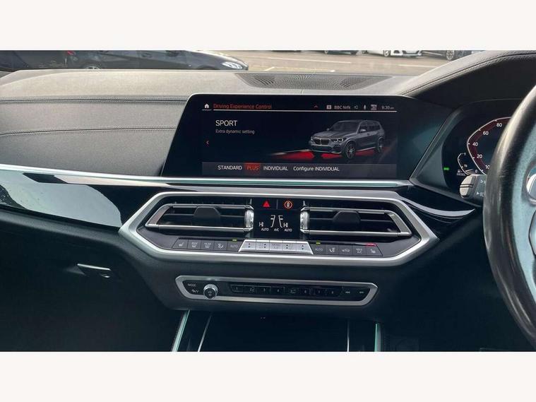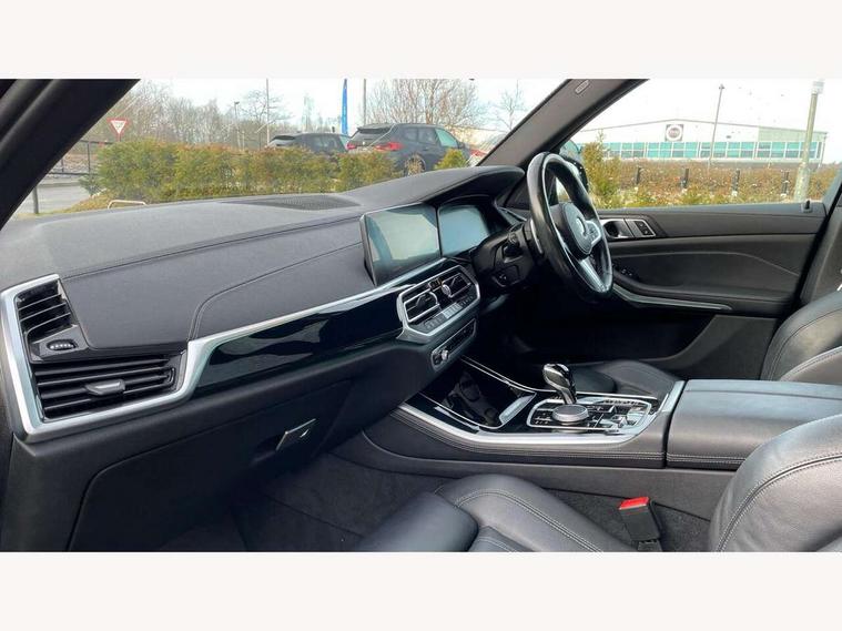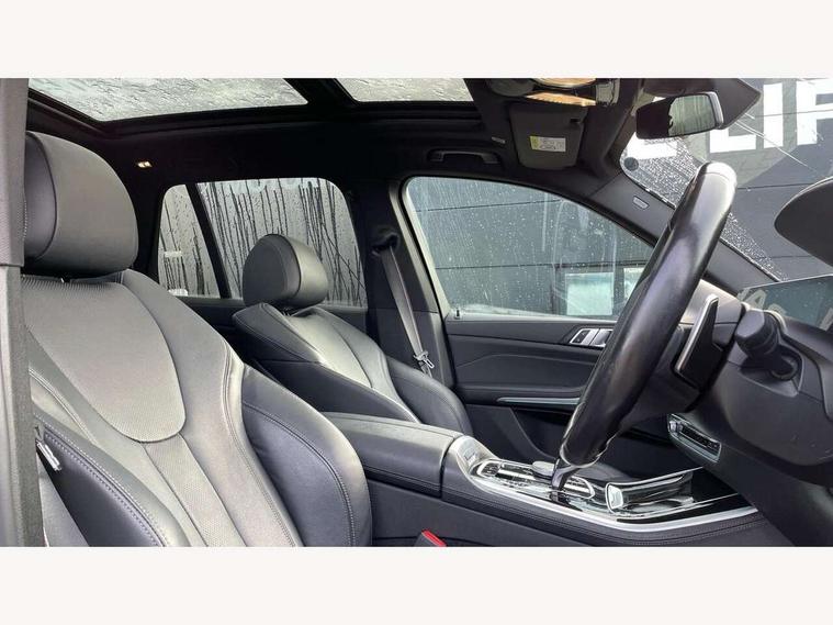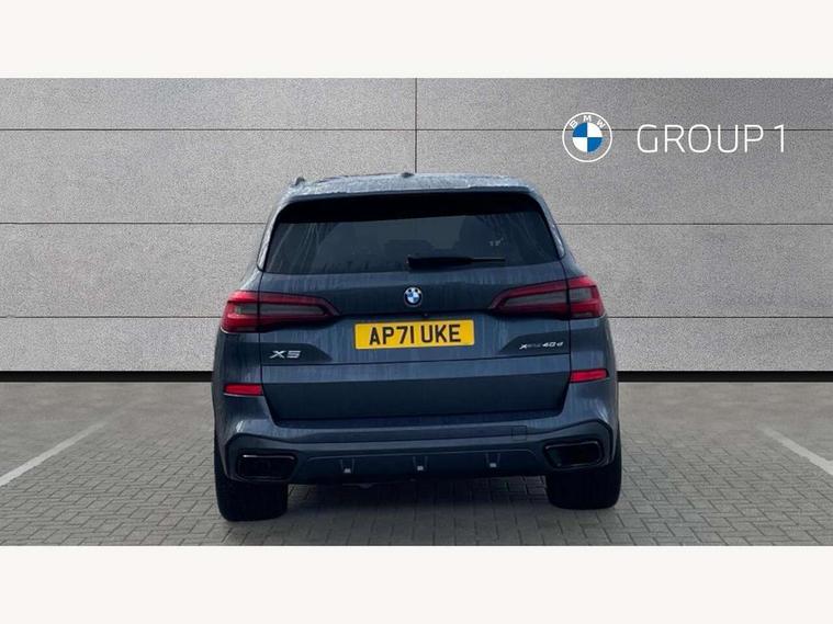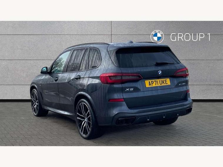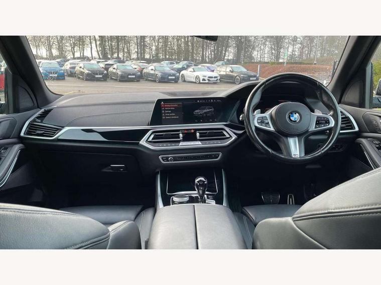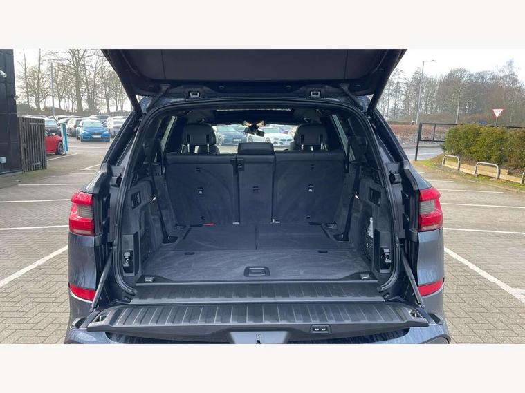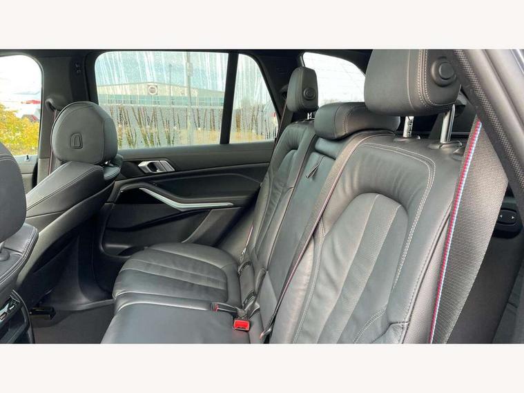 20GB hard disc drive (HDD) memory, Active guard plus, Attentiveness assist, Automatic tailgate with top hinged section open and manual bottom hinged section, BMW ConnectedDrive online services, BMW digital live cockpit professional - 12.3" digital instrument panel and 12.3" CID, with touch/voice command, BMW legal emergency call, BMW Teleservices, Brake force display, Brake pad wear indicator warning light, Cruise control with brake assist, Enhanced bluetooth with wireless charging, Front/rear park distance control, iDrive touch controller with shortcut buttons, Lights on warning, Oil sensor for level and grade, On board computer inc. average speed, fuel consumption, liquid crystal Info display, journey computer, outside temperature display, personal profile, Service interval indicator, Speed limit info display, Speed limiting function, Wi-Fi hotspot, 48V Mild hybrid technology, Adaptive 2-axle air suspension, Common rail technology, Diesel particulate filter, Double wishbone front axle, Drive performance control with ECO PRO comfort + sport mode, Eight speed steptronic sport automatic transmission and gearshift paddles on the steering wheel, Safety battery terminal clamp, Variable vane geometry, DAB Tuner enables digital radio reception, Favourite buttons, Hi-Fi loudspeaker system, USB connection, USB type A 1.5A in cupholder, USB Type C 3A in centre armrest, Active Air Stream kidney grille with high-gloss chrome, Adaptive air flap control bar in high-gloss black, Automatically dimming rear view mirror, BMW Individual high gloss black shadow line roof rails, Body colour bumpers, Body colour door handles, Dynamic brake lights with LED technology, Exhaust tailpipes - single, left and right with Chrome finisher, Follow me home headlight function, Front and rear electric windows with open and close fingertip control, anti trap facility and comfort closing, Heated windscreen washer jets, High beam assistant, High gloss black outer and central air intakes on front bumper with pearlescent chrome finish, High gloss black Side elements, LED daytime running lights, LED rear lights, M aerodynamic body styling, M designation on left and right front side panels, Pearlescent chrome front grille bars, Rain sensor with automatic headlight activation and windscreen wiper control, Rear side wing doors, Satin aluminium side window graphic, Third brake light in rear spoiler, Variable intermittent rear wash/wipe, Welcome light carpet, X5 on left tailgate, xDrive designation on right tailgate, 12V - Power sockets with 2x centre console and 1x luggage compartment, 3 seat bench in 2nd row, 40:20:40 split folding rear seats, Ambient interior lighting with 6 pre-designed selectable lights including dynamic function, Centre and rear interior light, Child seat ISOFIX attachment with rear outer seats includes top tether, Compartment in front of cupholder, Electric front seat adjustment with driver and front passenger memory function, Electrical steering column with adjustable height and length with activation and control on the steering column, Foldable rear centre armrest with 2 cupholders and storage compartment, Front and rear cupholders x 2, Front and rear door pockets, Front and rear door sill inlays with illuminated BMW M designation, Front and rear side armrest integrated into door trim, Front footwell lights, Front reading lights, Light inside glove compartment, Lockable glove compartment, Luggage compartment floor panel with integral storage tray, Luggage compartment lighting, M leather steering wheel, M specific key, M specific steering wheel, M specific velour floor mats, Make-up mirror lights, Multifunction controls for leather steering wheel, Multifunctional hooks, Rear head restraints, Seat back with flap pocket, Securing rings in luggage compartment, Single front passenger seat, Storage bins on all doors, Storage tray and compartment with cover in centre console, Sunvisors with illuminated vanity mirrors, Toolkit located in luggage compartment, Connected Package Professional - X5, Expanded exterior mirror pack - X5/X5 M, Non-smokers pack - X5, Airbags - driver/front passenger, rear and side, first and second row seats head airbags, front passenger seat airbag deactivation + knee airbag, Anti-lock braking system (ABS), Automatic Stability Control (ASC), Brake drying, Brake energy regeneration, Brake fade compensation, Braking pre-tensioning, Cornering brake control (CBC), Crash sensor activating central locking release, hazard warning lights, fuel cut off, interior lighting + activation of safety battery terminal clamp, Deformation zones - front and rear with door reinforcements and bumpers up to 2.5 mph, DSC - Dynamic Stability Control, Dynamic brake control, Dynamic Traction Control - DTC, Electromechanical parking brake with automatic drive away release and auto hold function, Electronic brake force distribution, Front and rear seatbelts with seatbelt stopper, seatbelt tensioner for front and outer rear seats and belt force limiter, Front head restraints with anti-whiplash, Height adjustable front seatbelts, Hill start assistant, Integrated brake system, M Sport braking system in blue high gloss + blue painted brake calipers with M designation, Mechanical child proof lock on rear doors, Passive protection for pedestrians, Seat occupancy detection for driver and passenger side, Side impact protection, Three 3 point inertia reel seatbelts, Two tone horn, Tyre pressure monitoring system, Ventilated front and rear disc brakes, Warning triangle and first aid kit, Closing system with central locking, Driver and front passenger door centre lock switch, Locking wheel bolts, Thatcham 1 alarm system with remote control and engine immobiliser, Start/stop toggle diamond shaped trim finisher in pearl chrome,